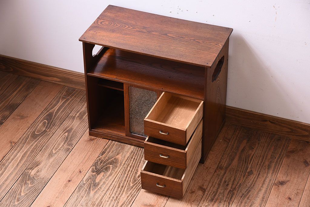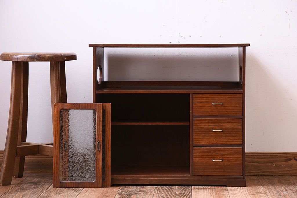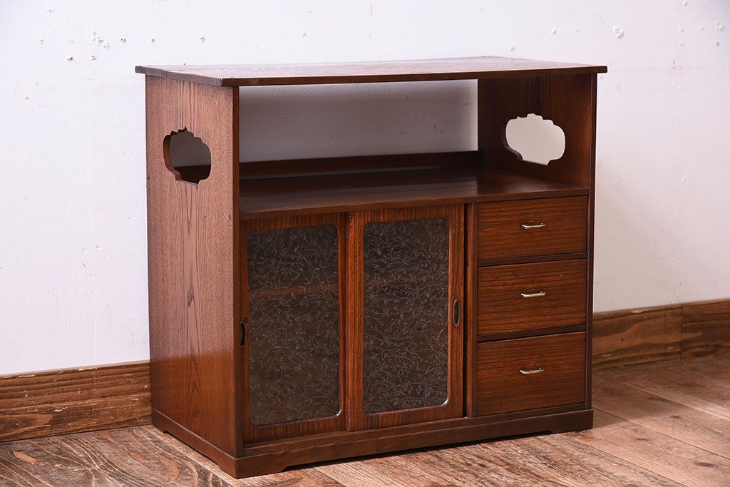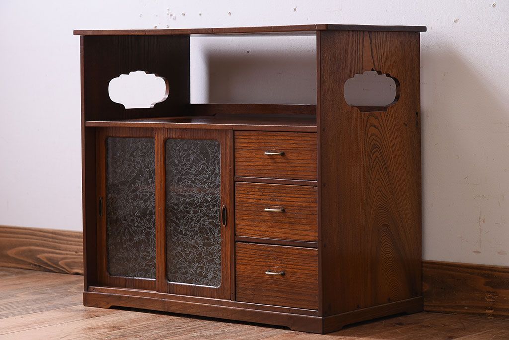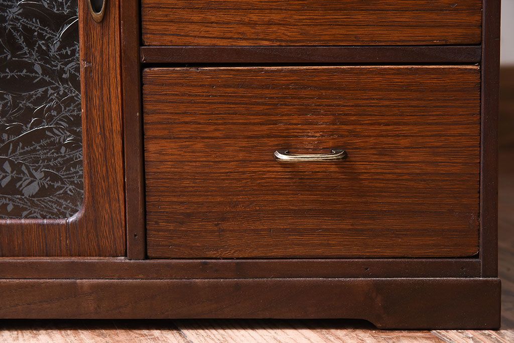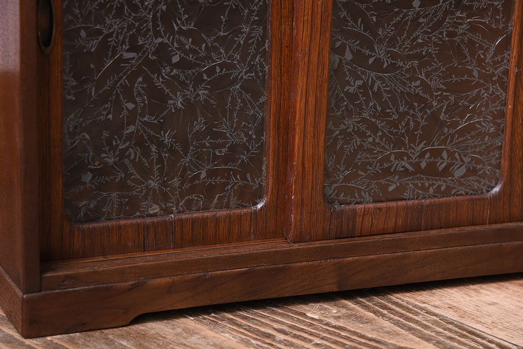 【K様ご成約済み・ご決済用】和製アンティーク 結霜ガラス入り!古い木製の小ぶりな茶箪笥