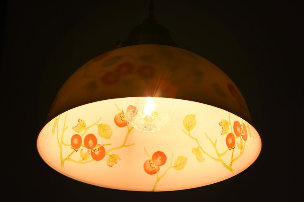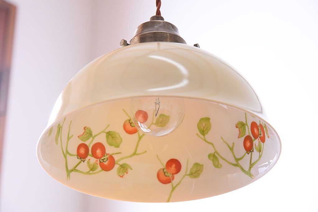 オールドノリタケ(日陶) 柿の絵柄入り 吊り下げ照明(ランプ・シェード)