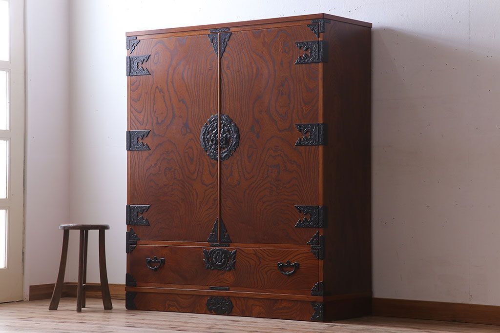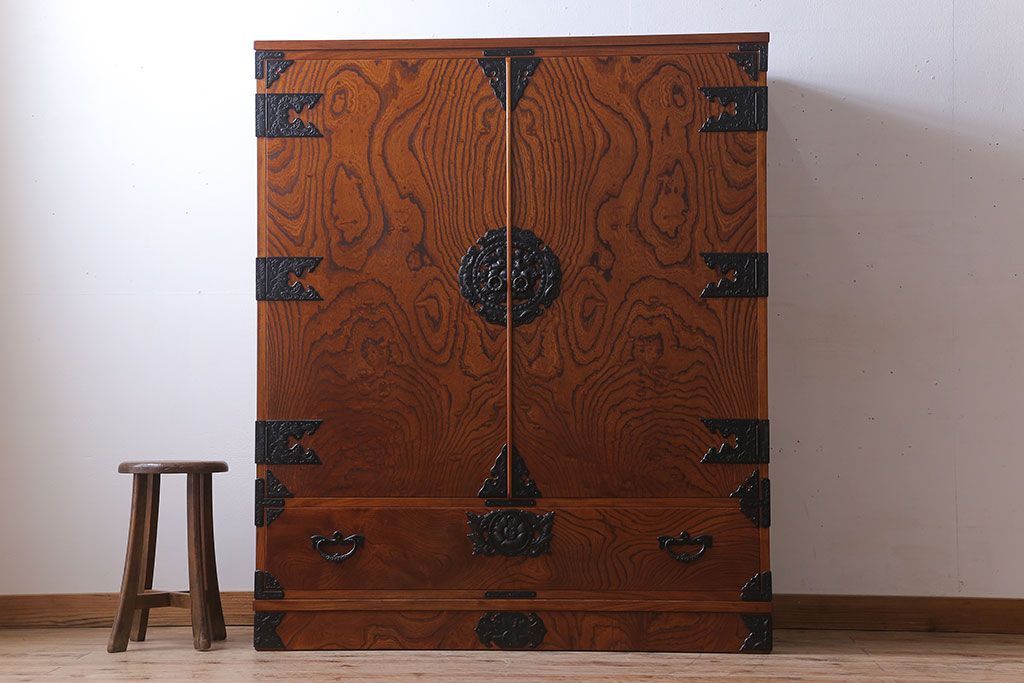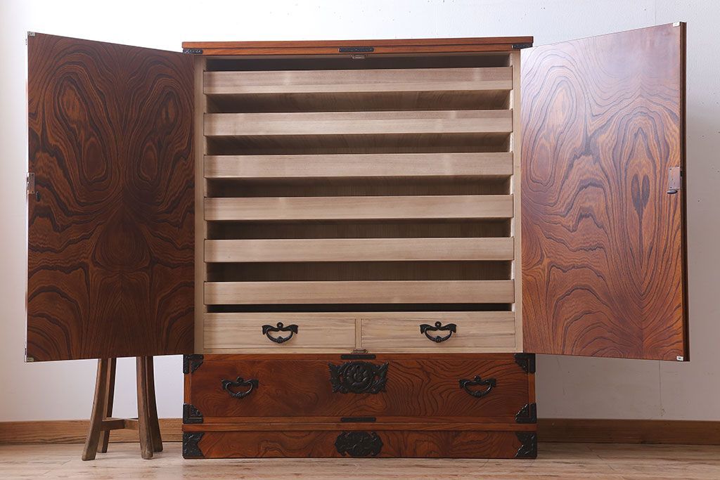 中古 伝統民芸家具 岩谷堂箪笥 特注品 衣装盆付き!洋服タンス(観音箪笥・ワードローブ)