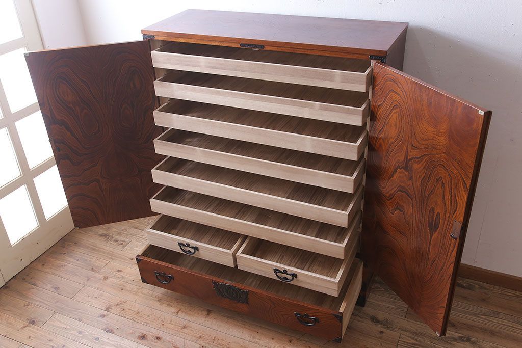 中古 伝統民芸家具 岩谷堂箪笥 特注品 衣装盆付き!洋服タンス(観音箪笥・ワードローブ)です。