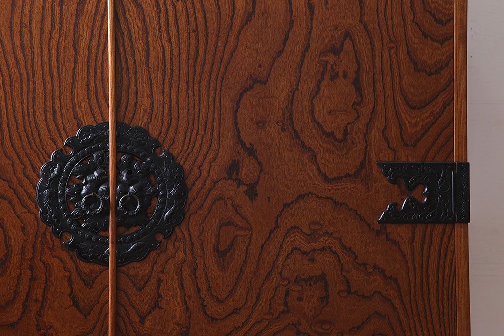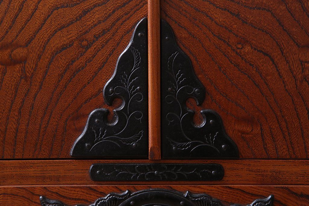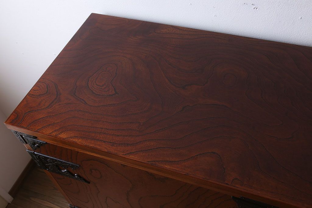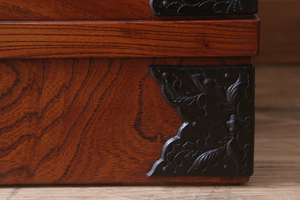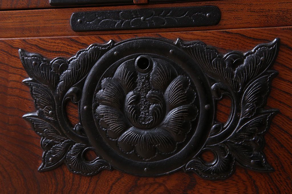 美しい木目や迫力のある金具が魅力的な逸品です。