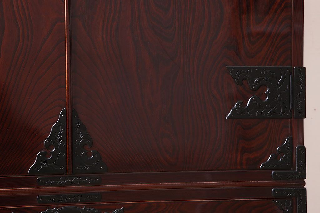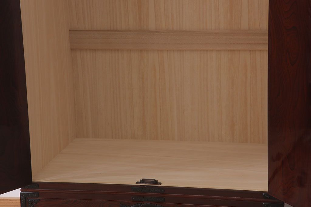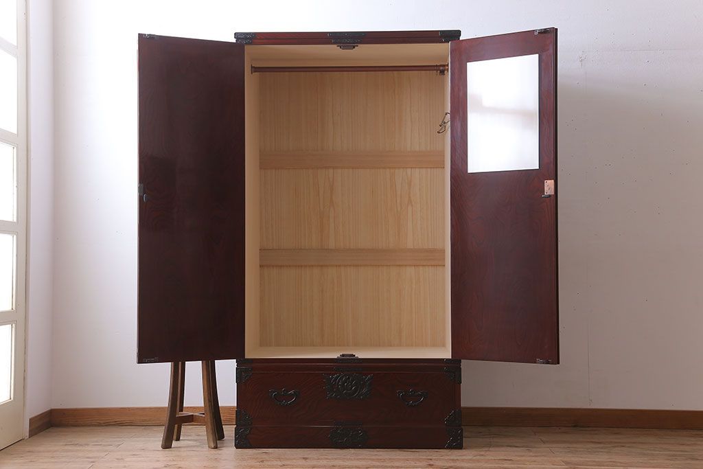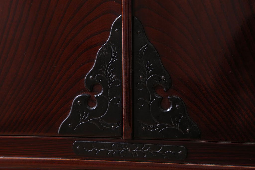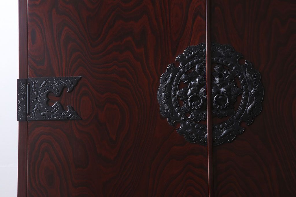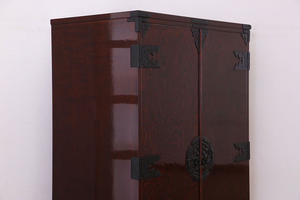ラフジュ工房> ワードローブ・ロッカー> ワードローブ > 中古 岩谷堂箪笥 南部鉄器金具 木地呂塗り 上質な洋服箪笥(観音箪笥)(定価約98万円)