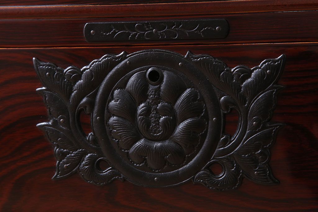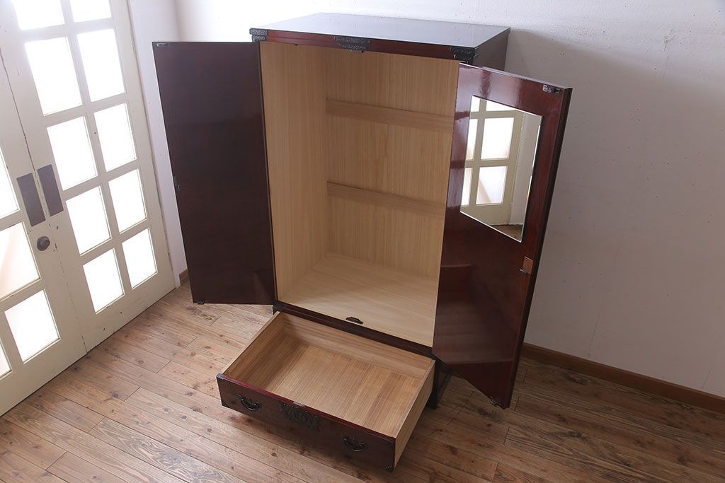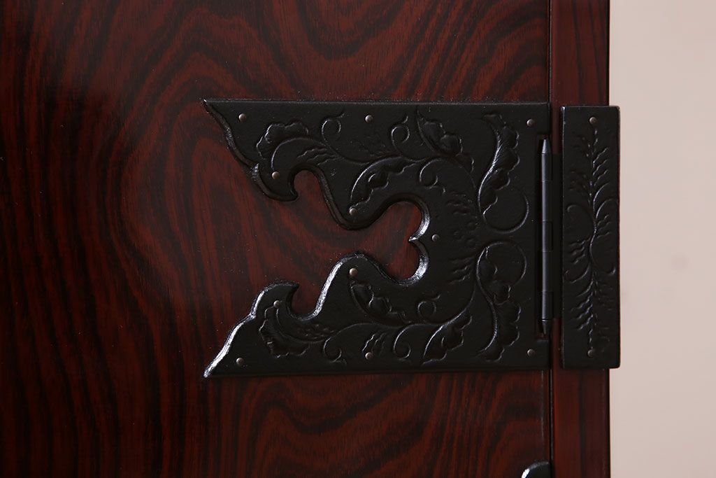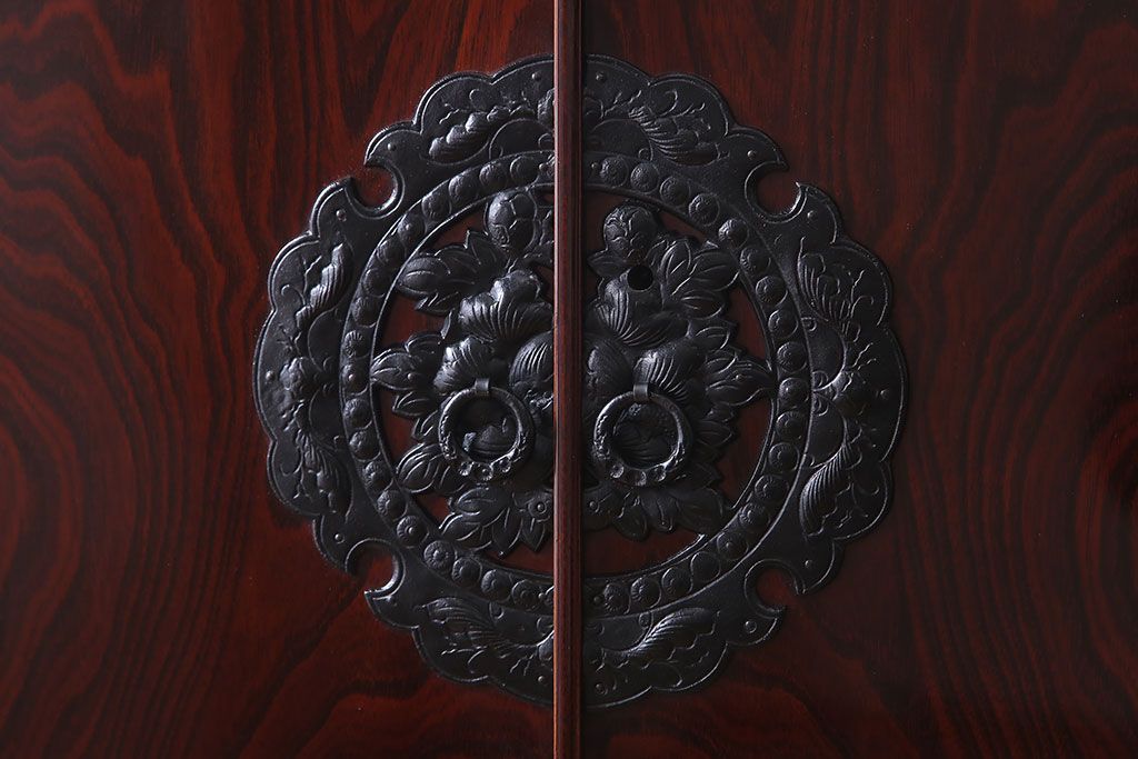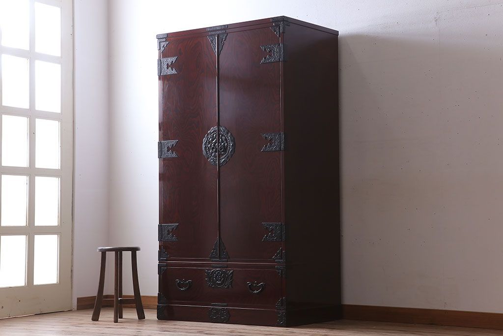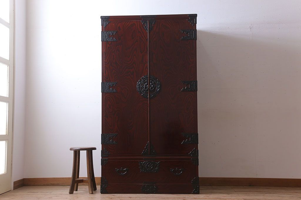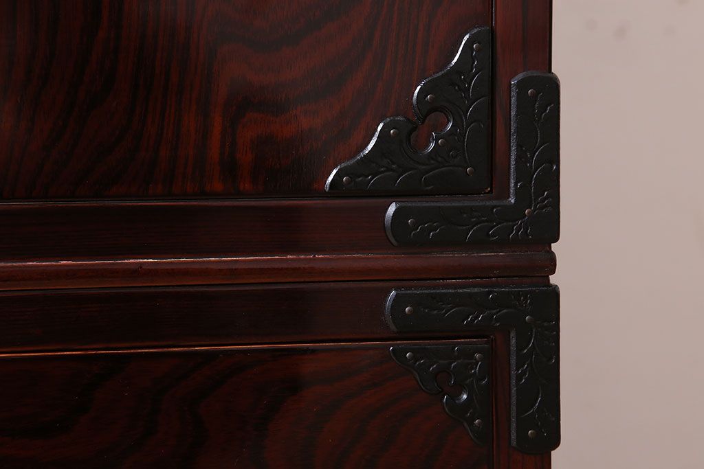 ラフジュ工房> ワードローブ・ロッカー> ワードローブ > 中古 岩谷堂箪笥 南部鉄器金具 木地呂塗り 上質な洋服箪笥(観音箪笥)(定価約98万円)