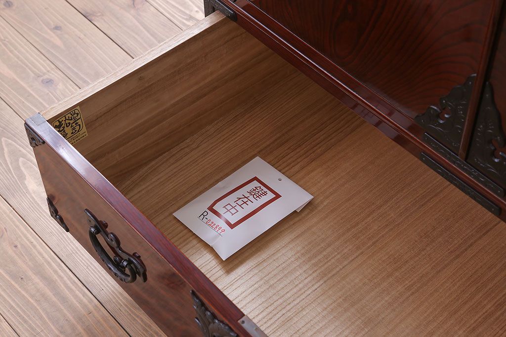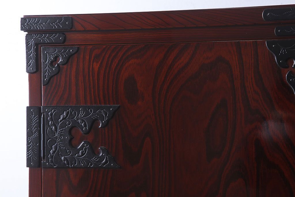 ラフジュ工房> 和箪笥> 観音箪笥 > 中古 岩谷堂箪笥 南部鉄器金具 木地呂塗り 上質な洋服箪笥(観音箪笥)(定価約98万円)