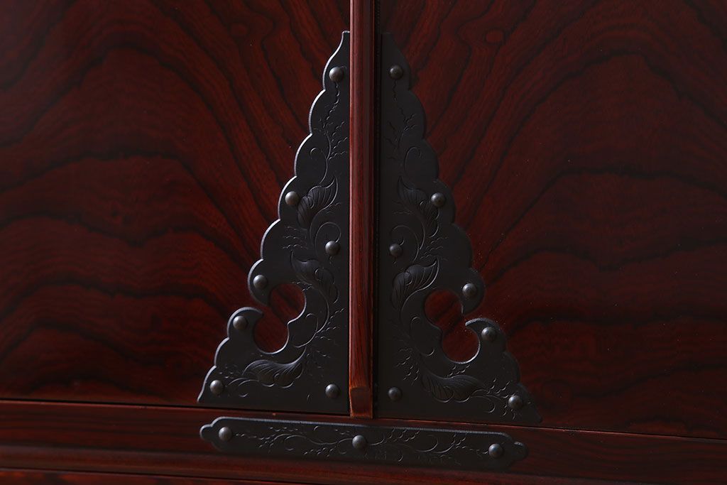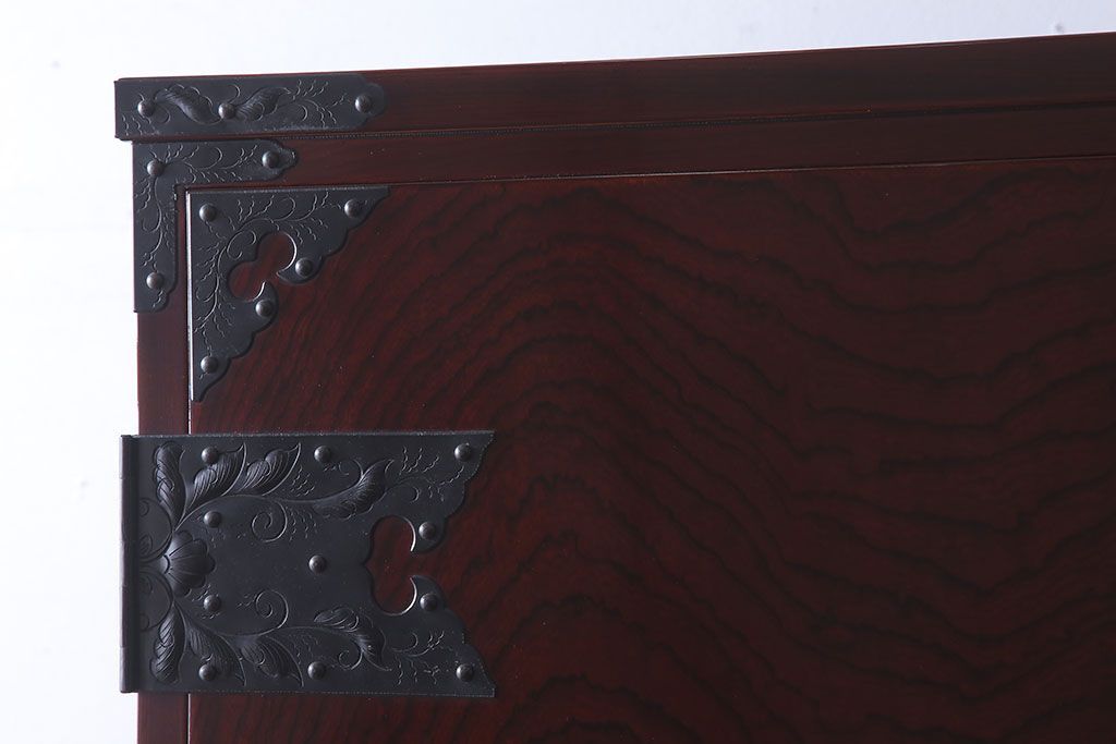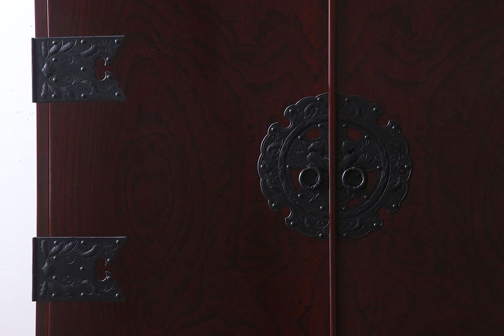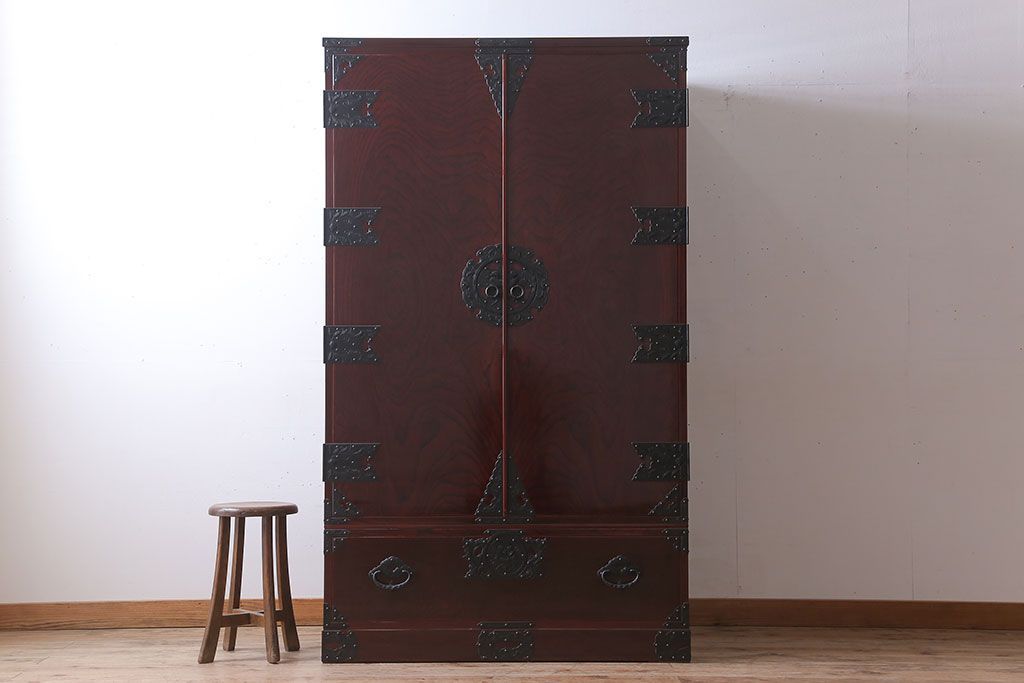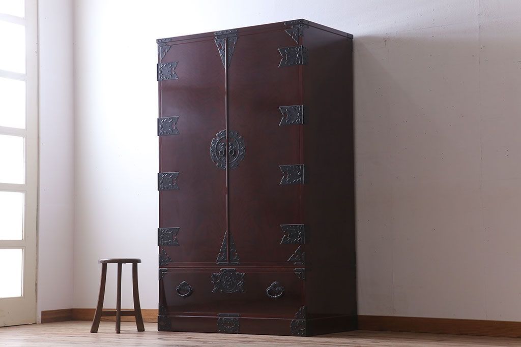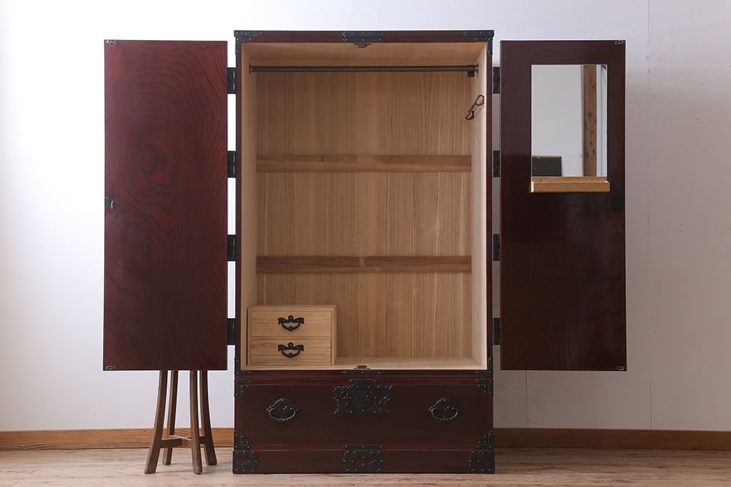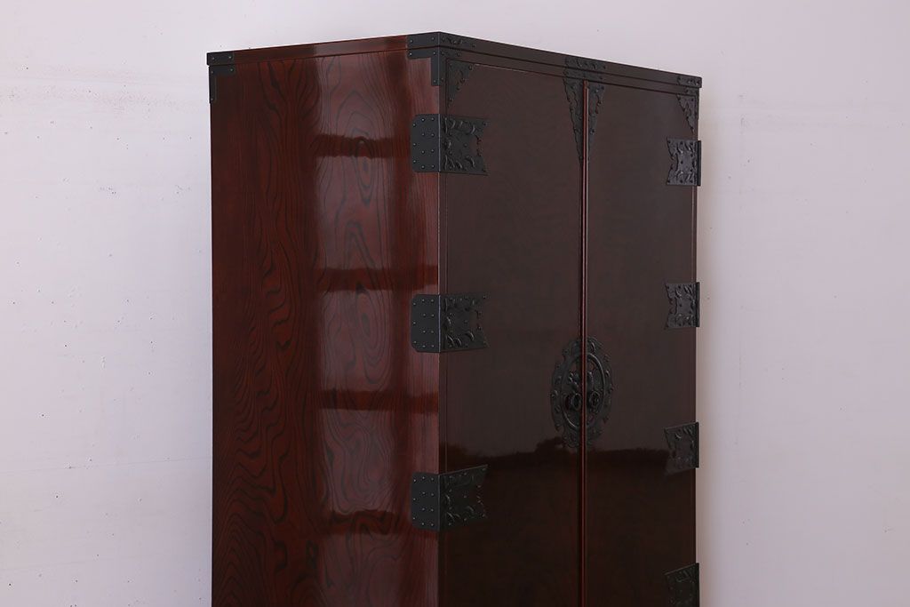 中古 岩谷堂箪笥 手打ち金具 木地呂塗り 上質な洋服箪笥(観音箪笥)(定価128万円)