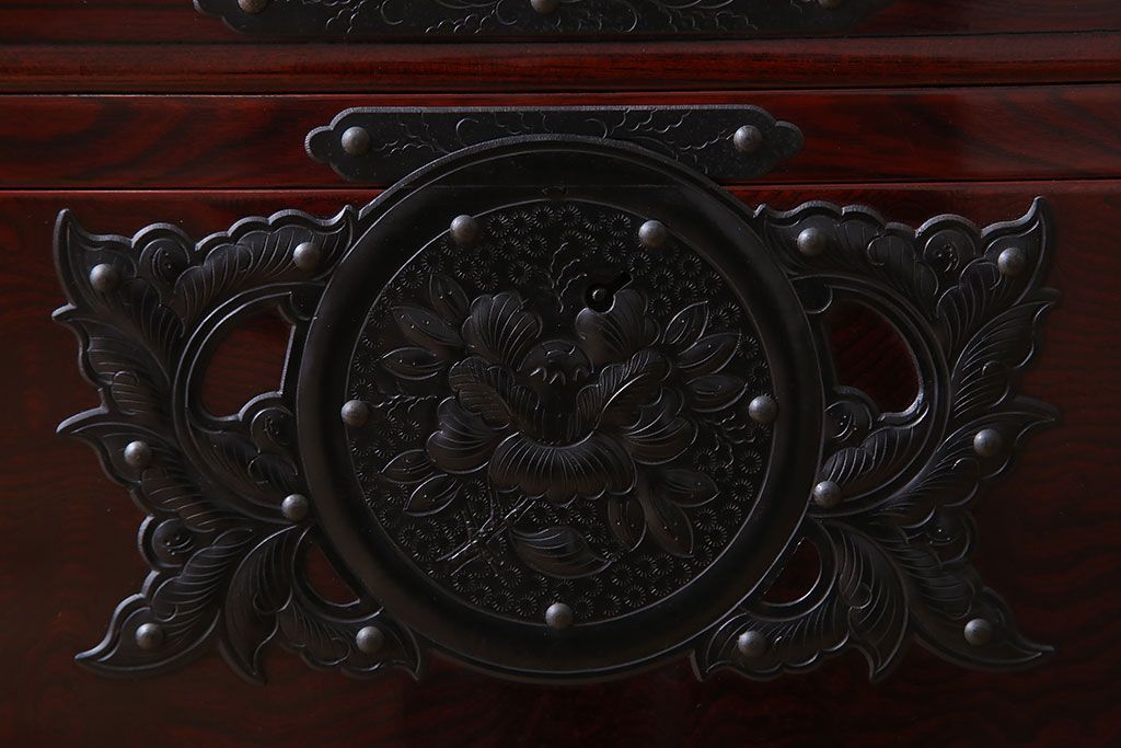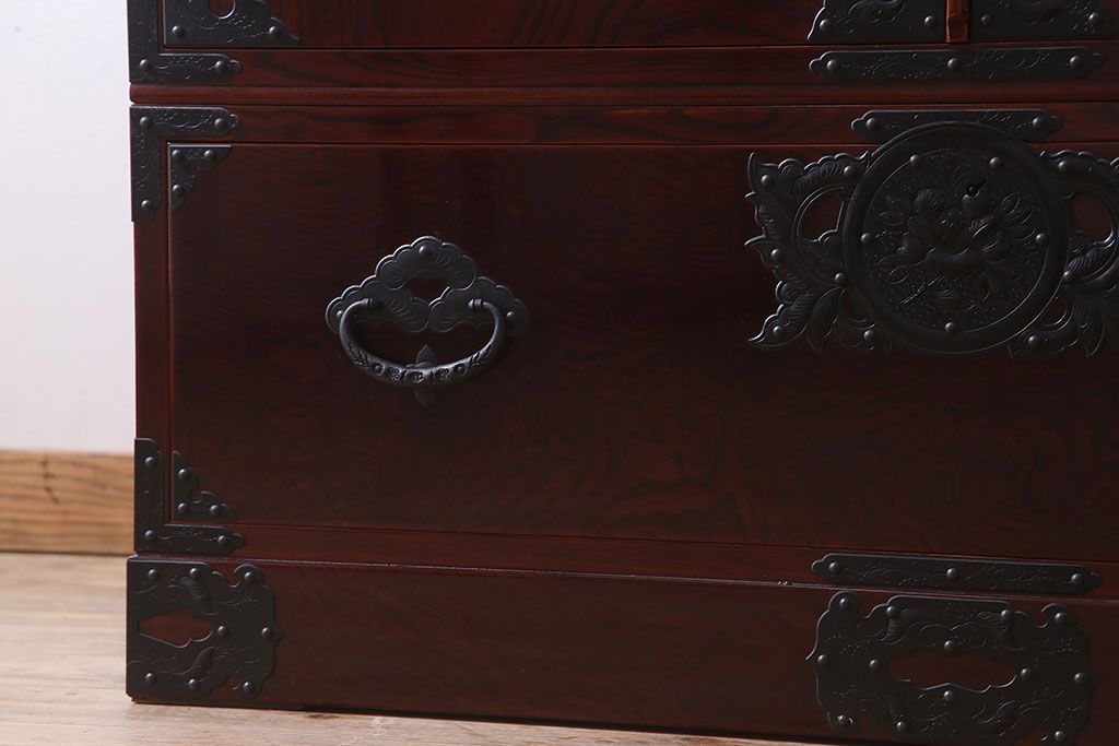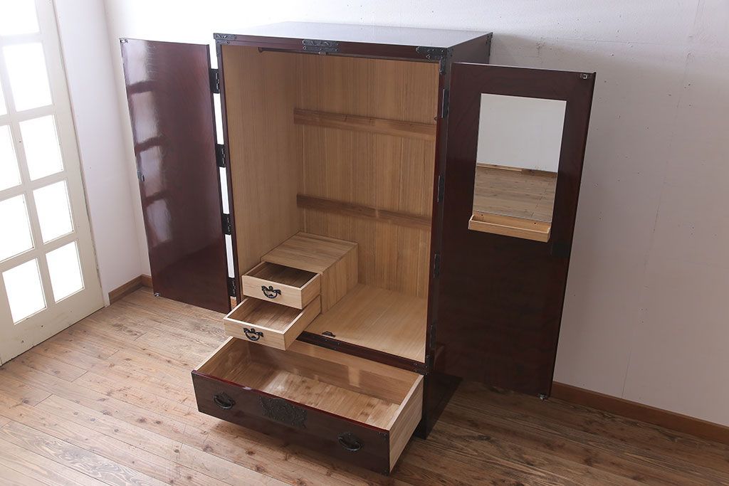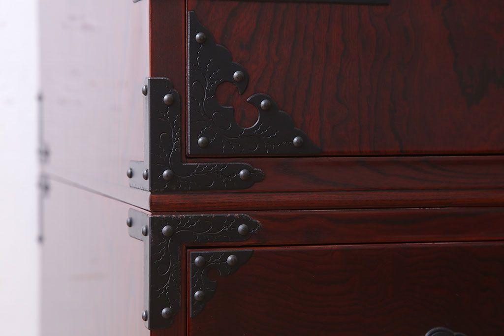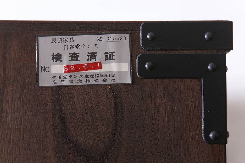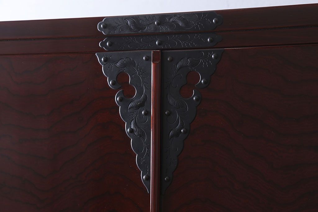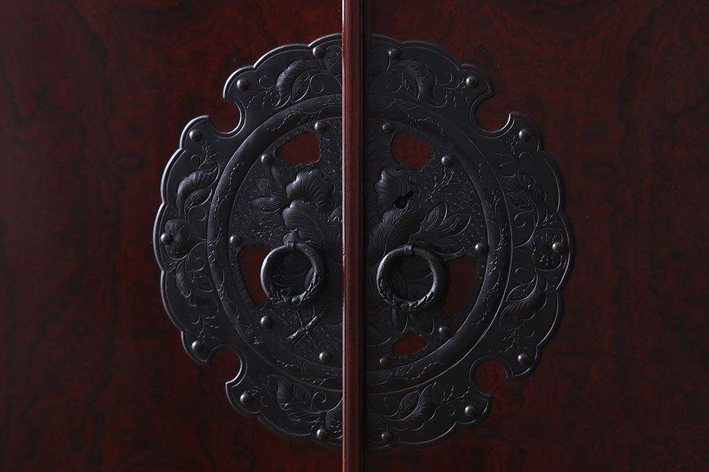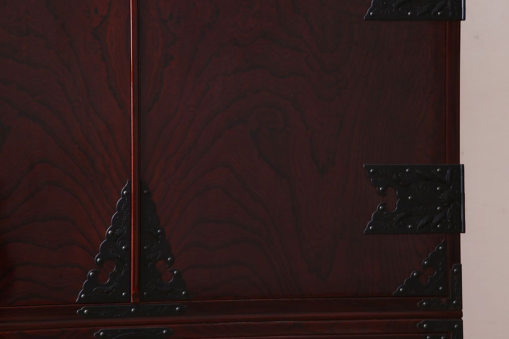 中古 岩谷堂箪笥 手打ち金具 木地呂塗り 上質な洋服箪笥(観音箪笥)(定価128万円)