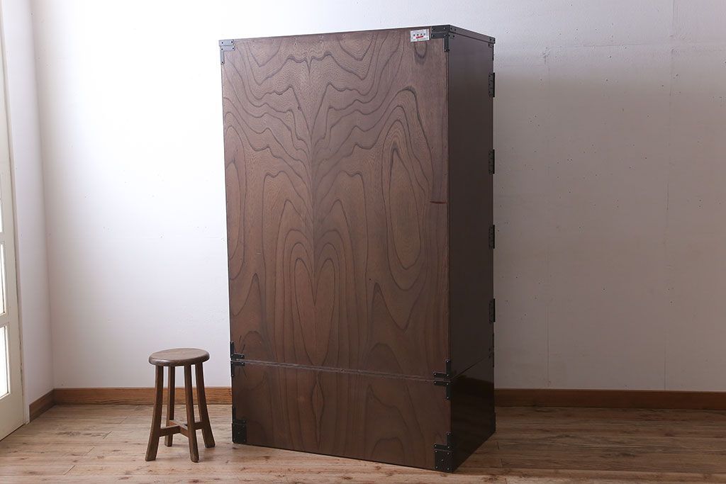 ラフジュ工房> ワードローブ・ロッカー> ワードローブ > 中古 岩谷堂箪笥 手打ち金具 木地呂塗り 上質な洋服箪笥(観音箪笥)(定価128万円)