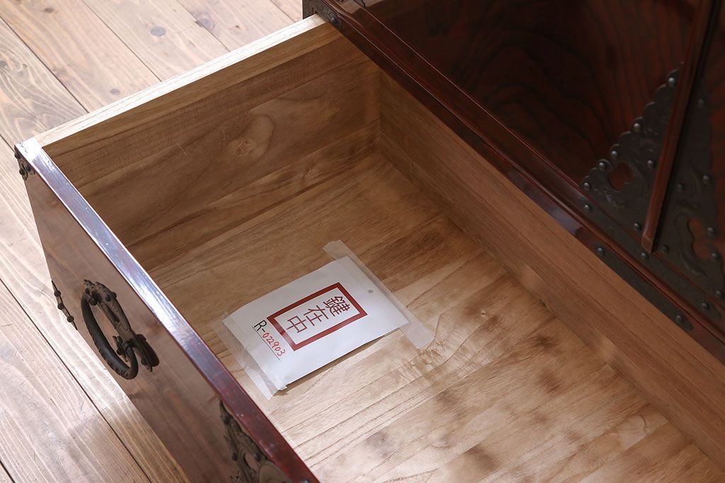 ラフジュ工房> 和箪笥 > 中古 岩谷堂箪笥 手打ち金具 木地呂塗り 上質な洋服箪笥(観音箪笥)(定価128万円)