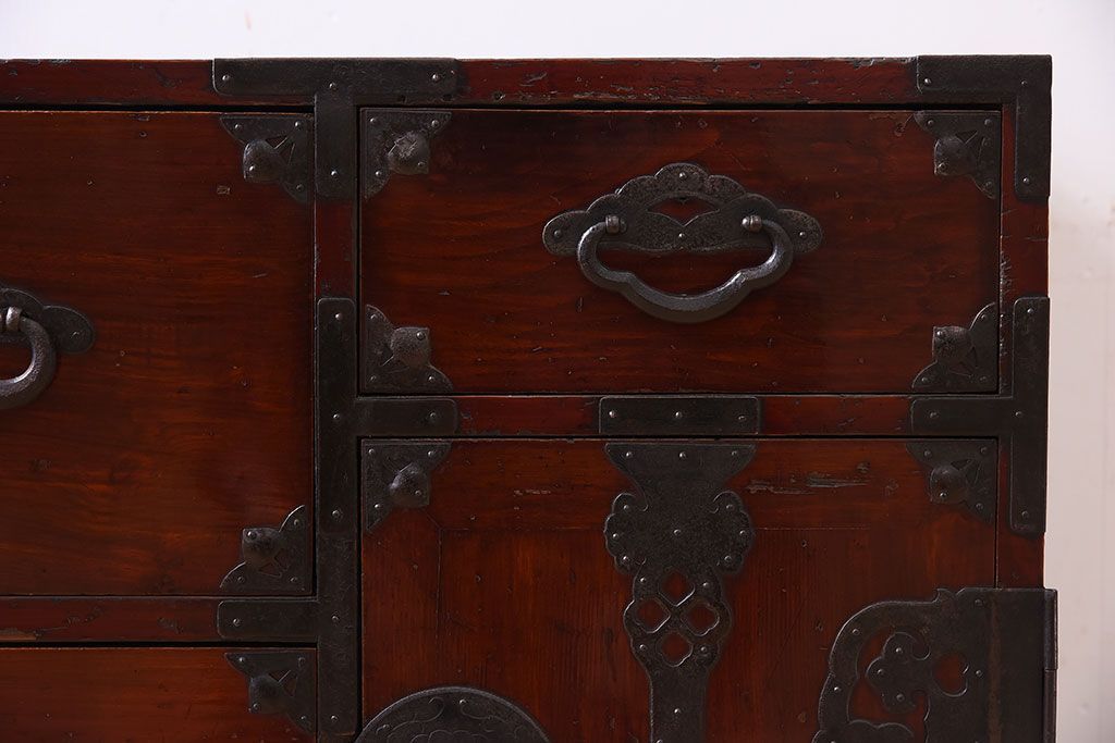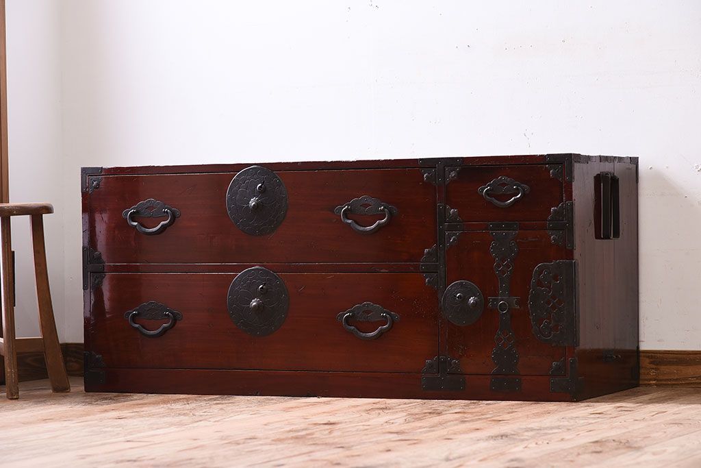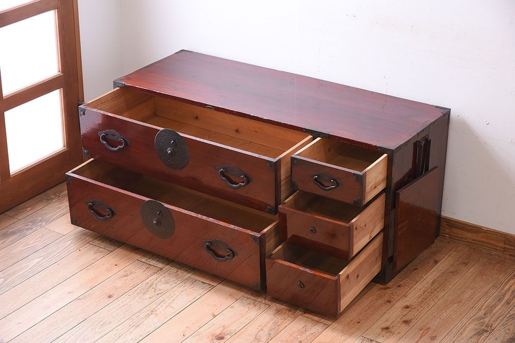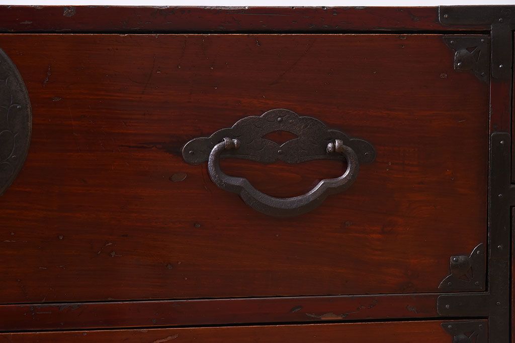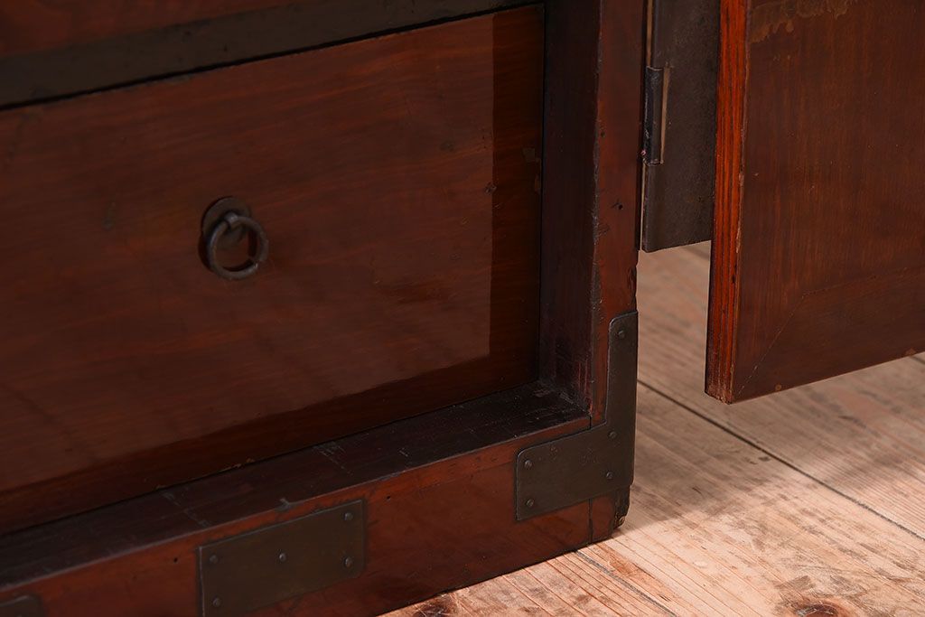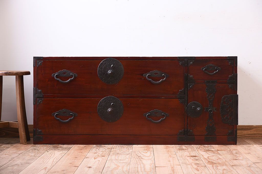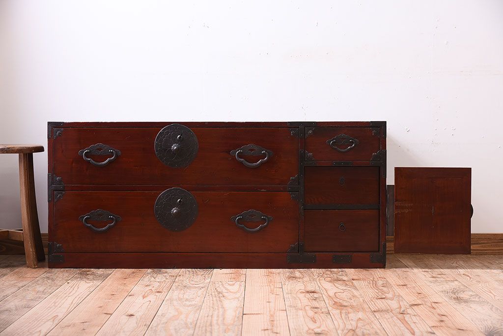 和箪笥 > アンティーク家具 前面栗材!桜丸金具の時代箪笥ローボード(米沢箪笥・衣装箪笥)(1)