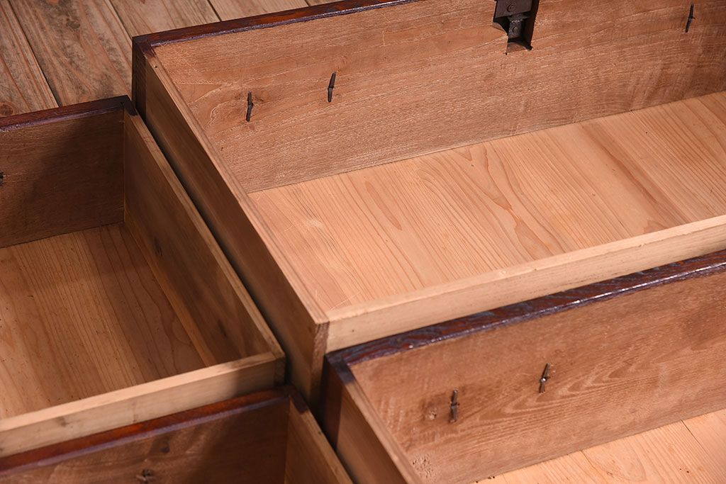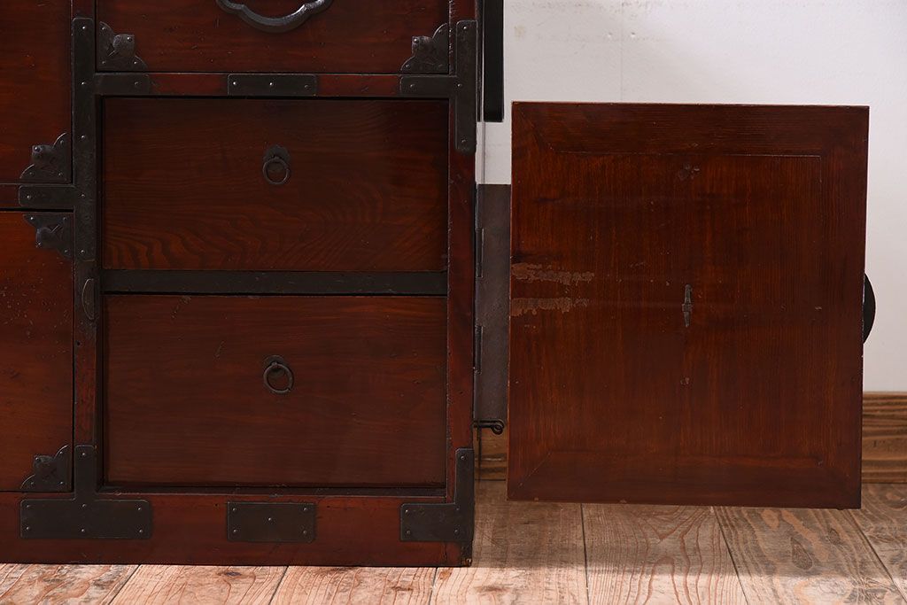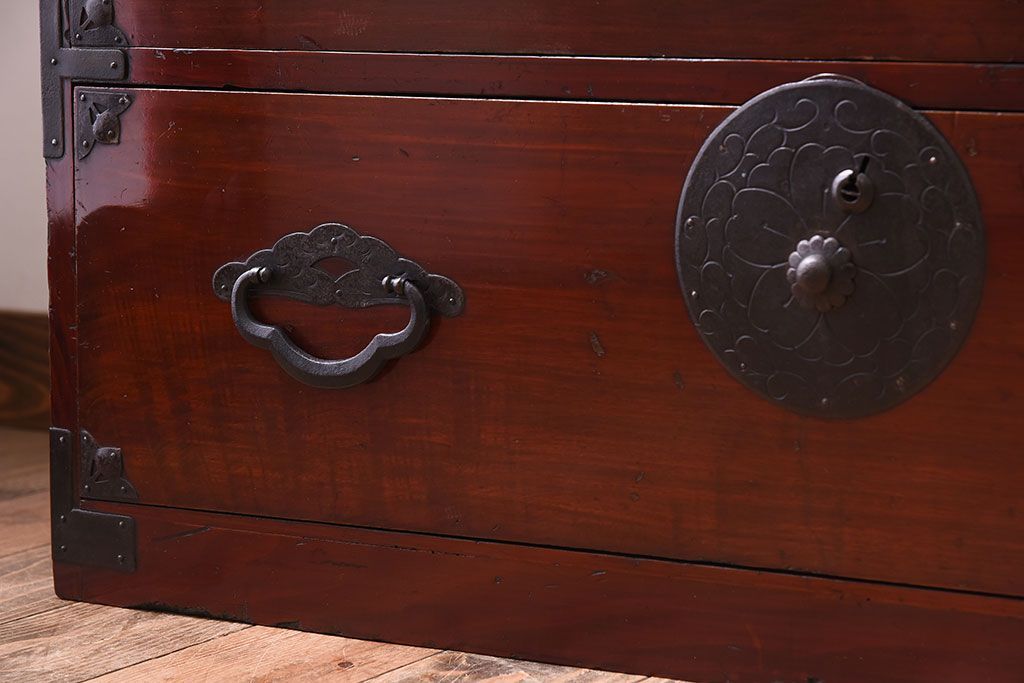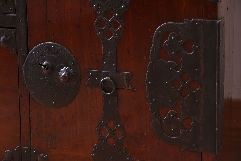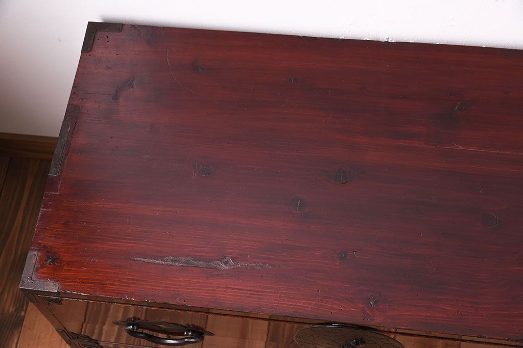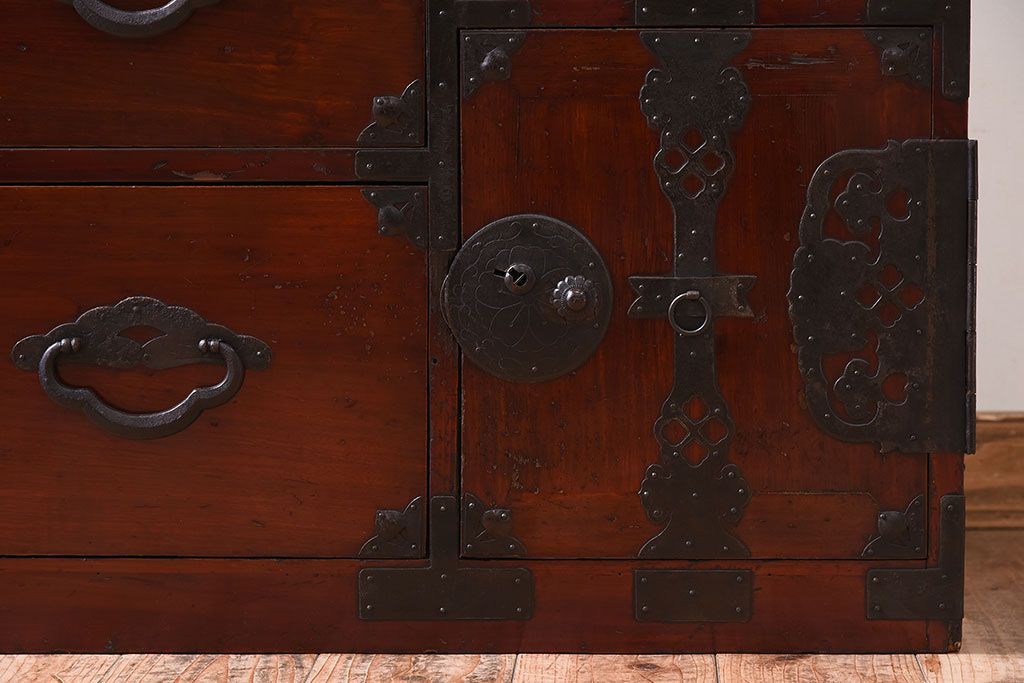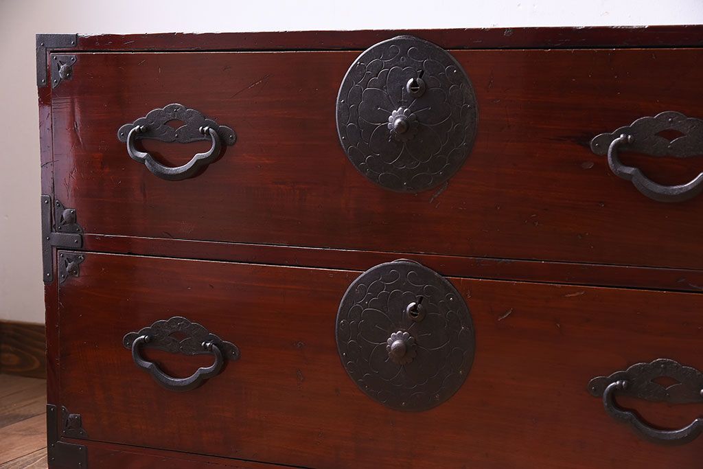 和箪笥 > アンティーク家具 前面栗材!桜丸金具の時代箪笥ローボード(米沢箪笥・衣装箪笥)(1)
