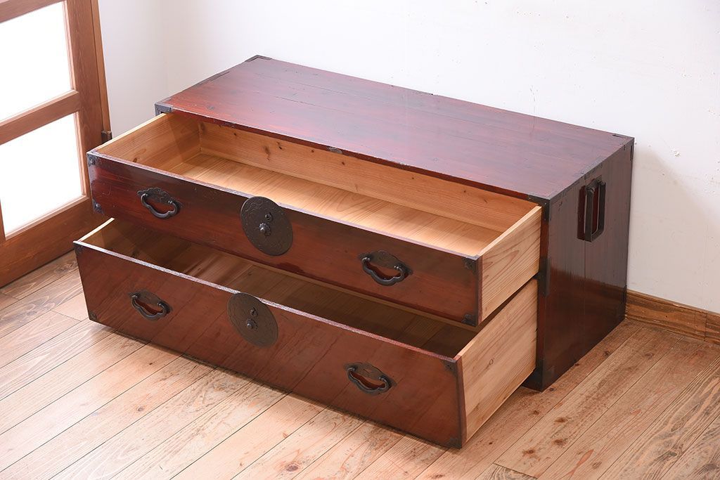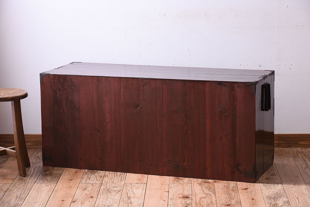 和箪笥> 衣装箪笥 > アンティーク家具 前面栗材!桜丸金具の時代箪笥ローボード(米沢箪笥・衣装箪笥)(2)