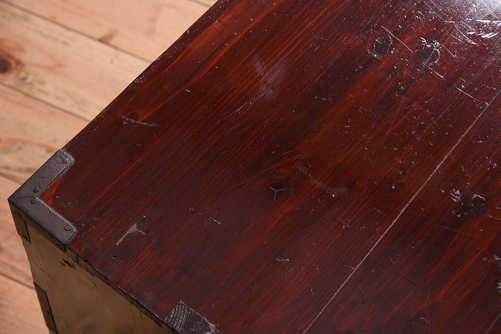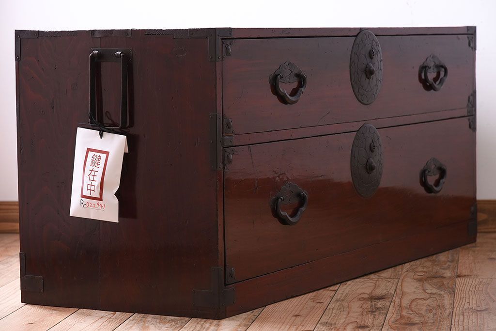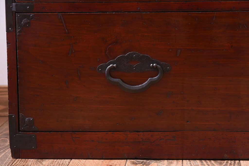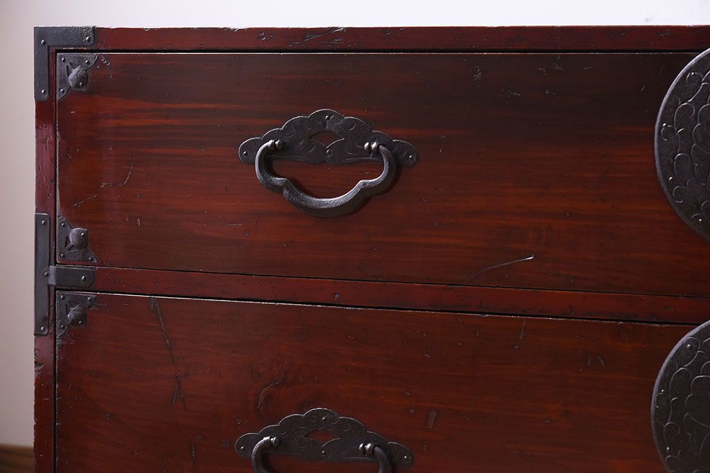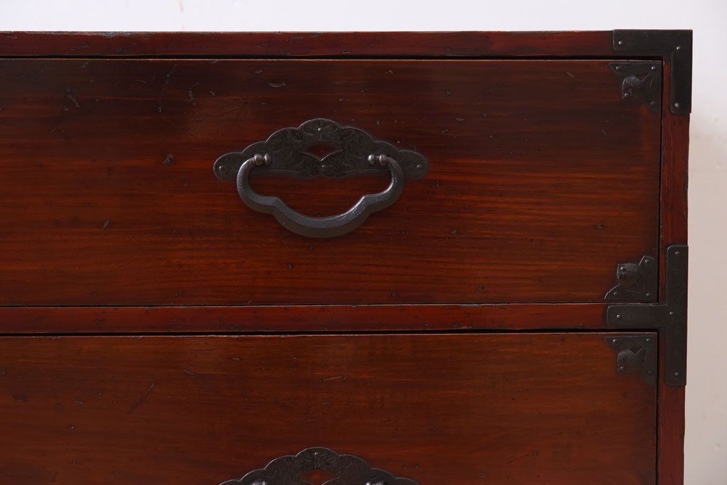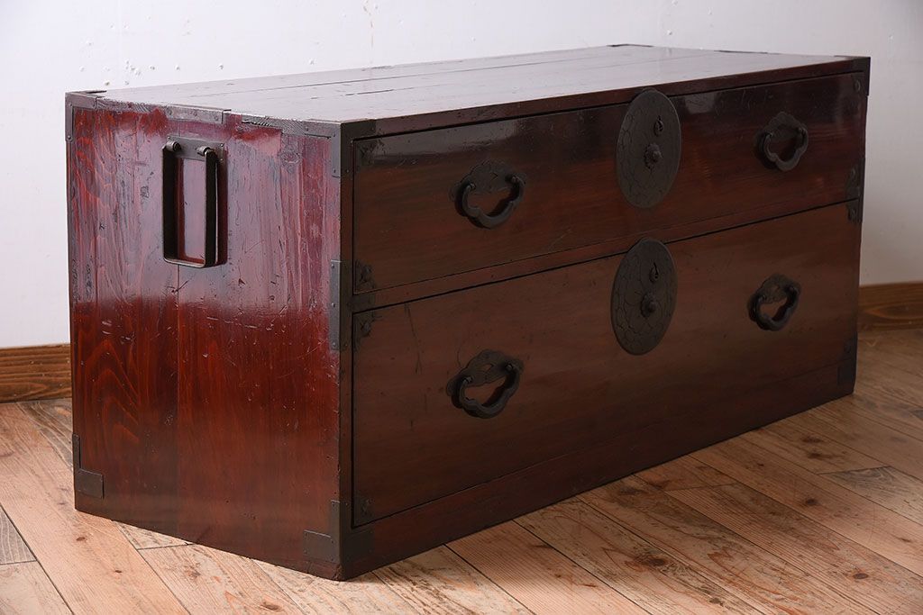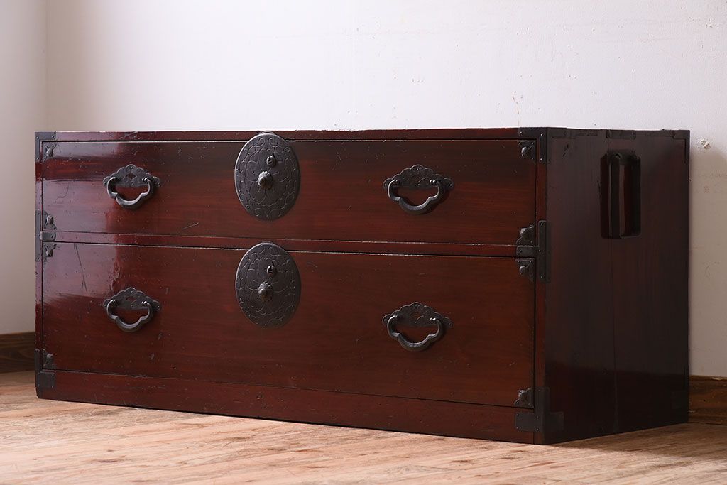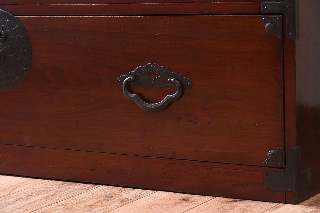 アンティーク家具 前面栗材!桜丸金具の時代箪笥ローボード(米沢箪笥・衣装箪笥)(2)