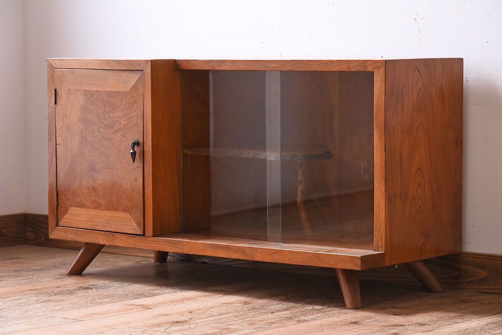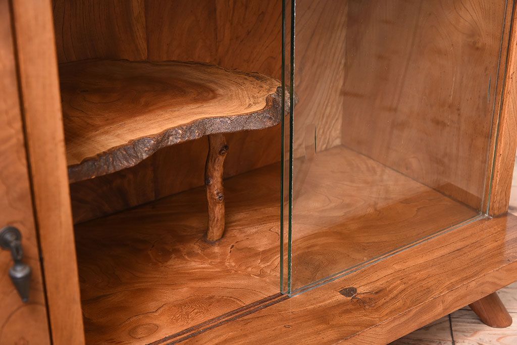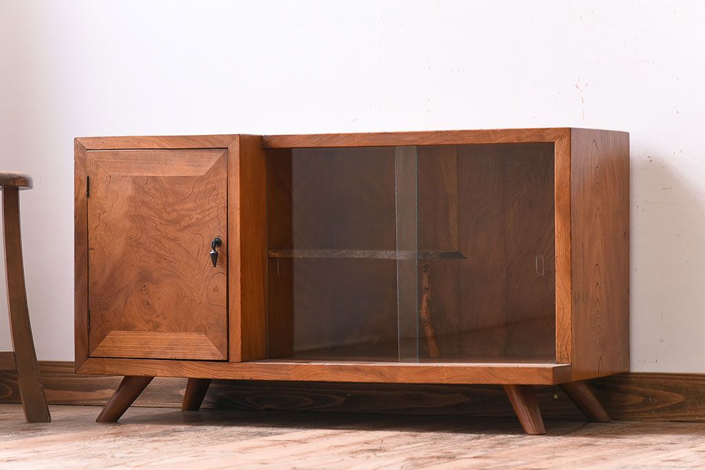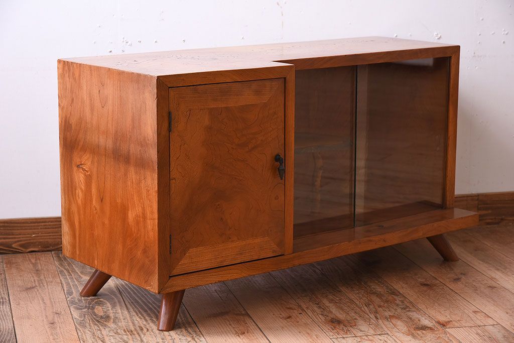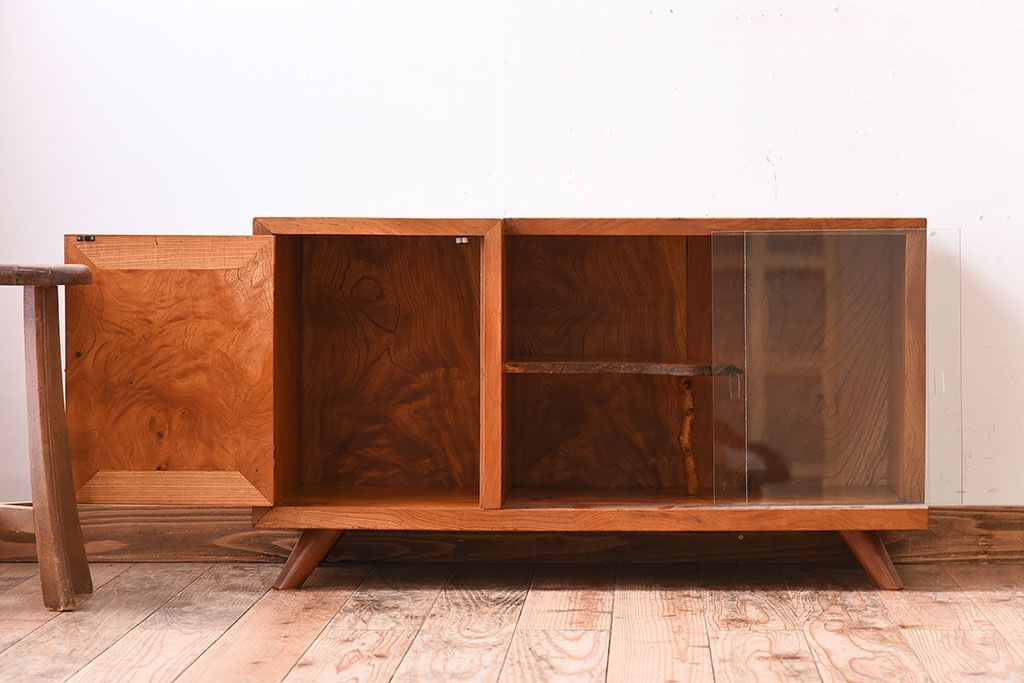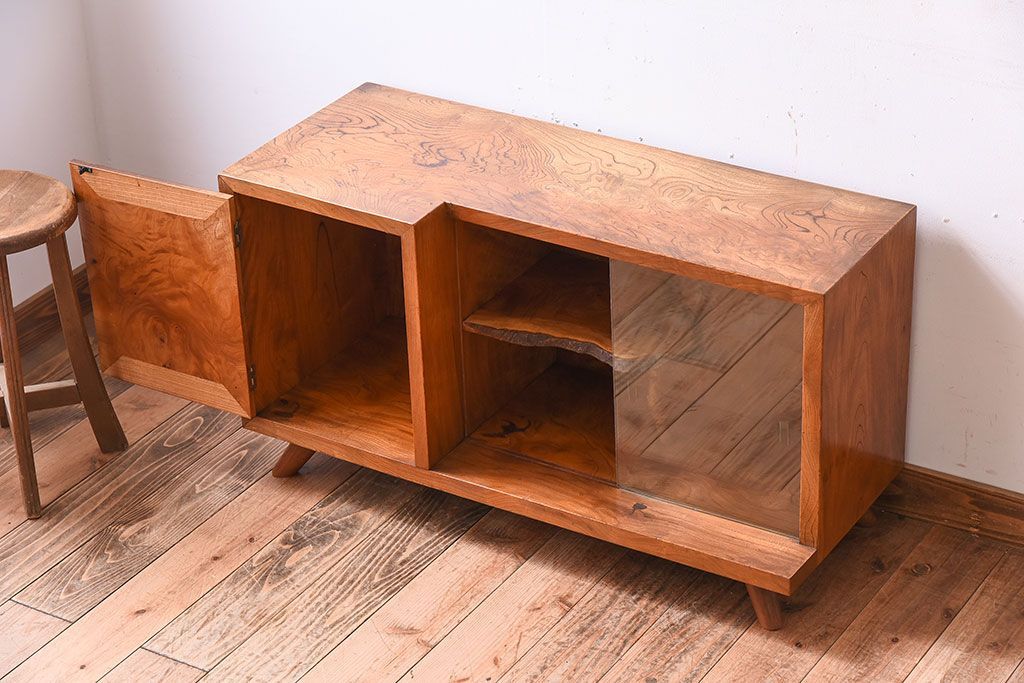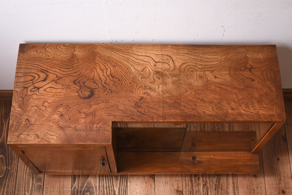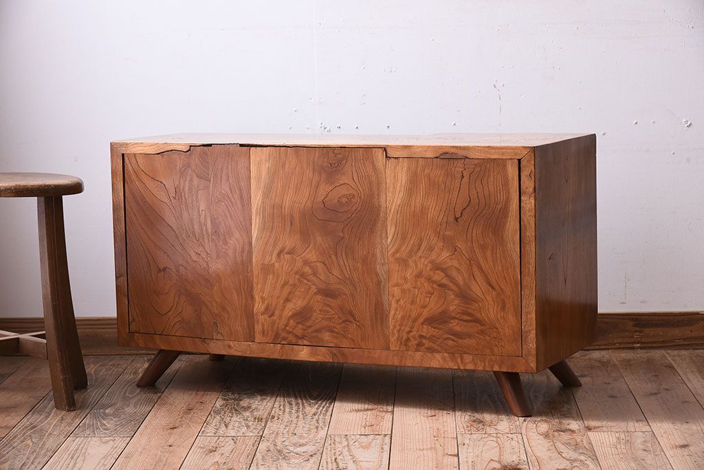 アンティーク家具 総欅材!木目が美しい和モダンな脚付きローボード