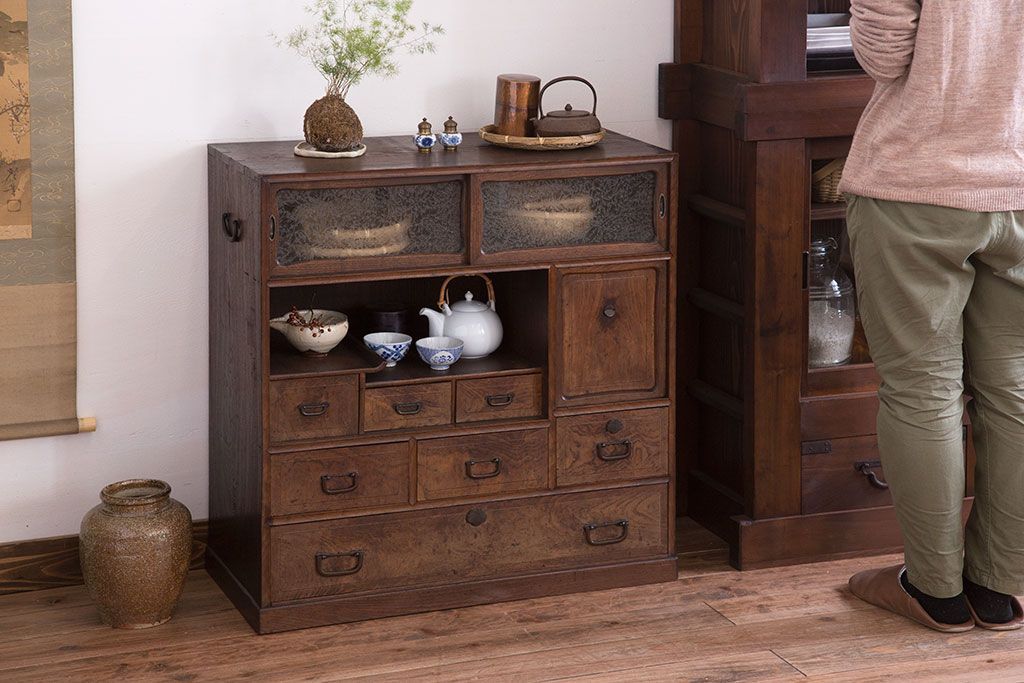 アンティーク家具 前面桑材!和製アンティークの上品な茶箪笥