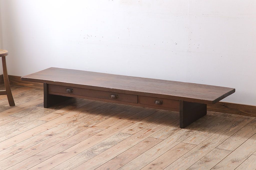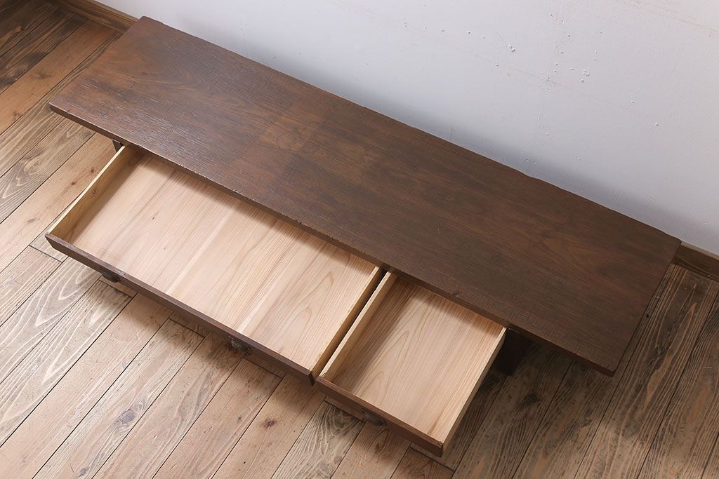 アンティーク家具 古民具・骨董 当時物の引出し付き!古い木製ローボード(裁ち板)