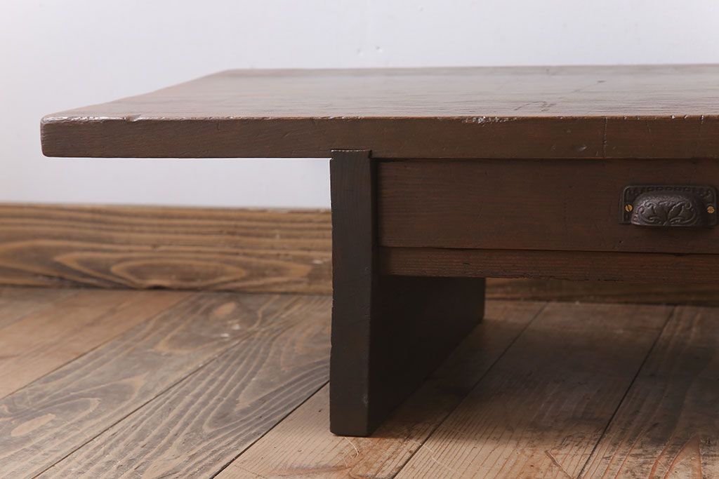 ラフジュ工房> テーブル> 座卓 > アンティーク家具 古民具・骨董 当時物の引出し付き!古い木製ローボード(裁ち板)