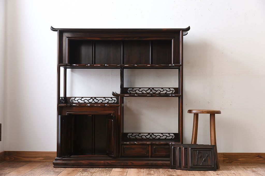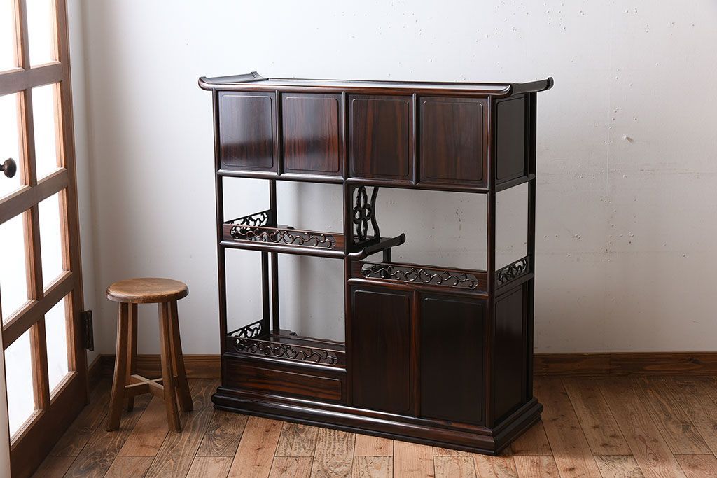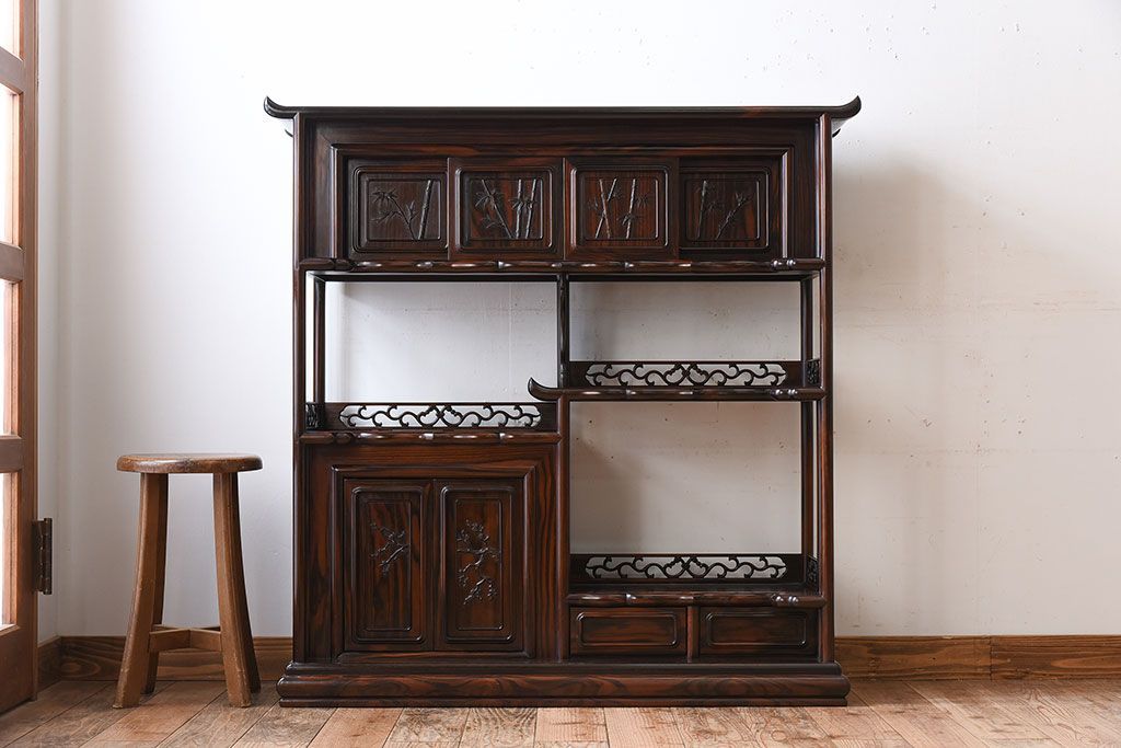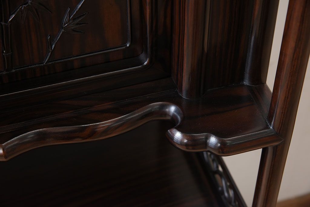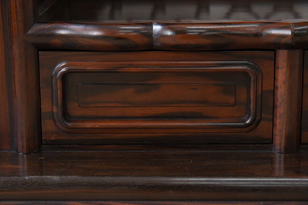 アンティーク家具 唐木・縞黒檀材!上品なアンティーク飾り棚(茶棚)
