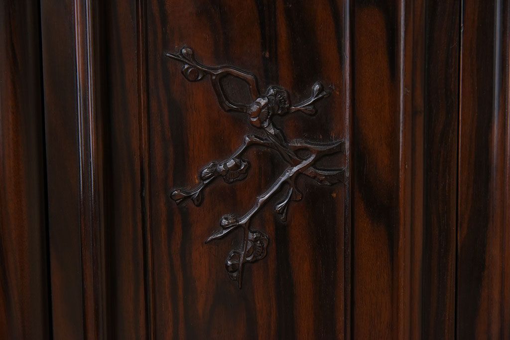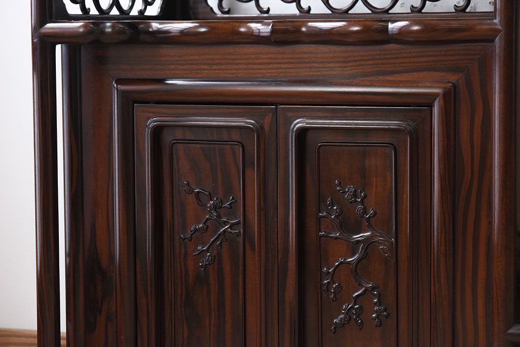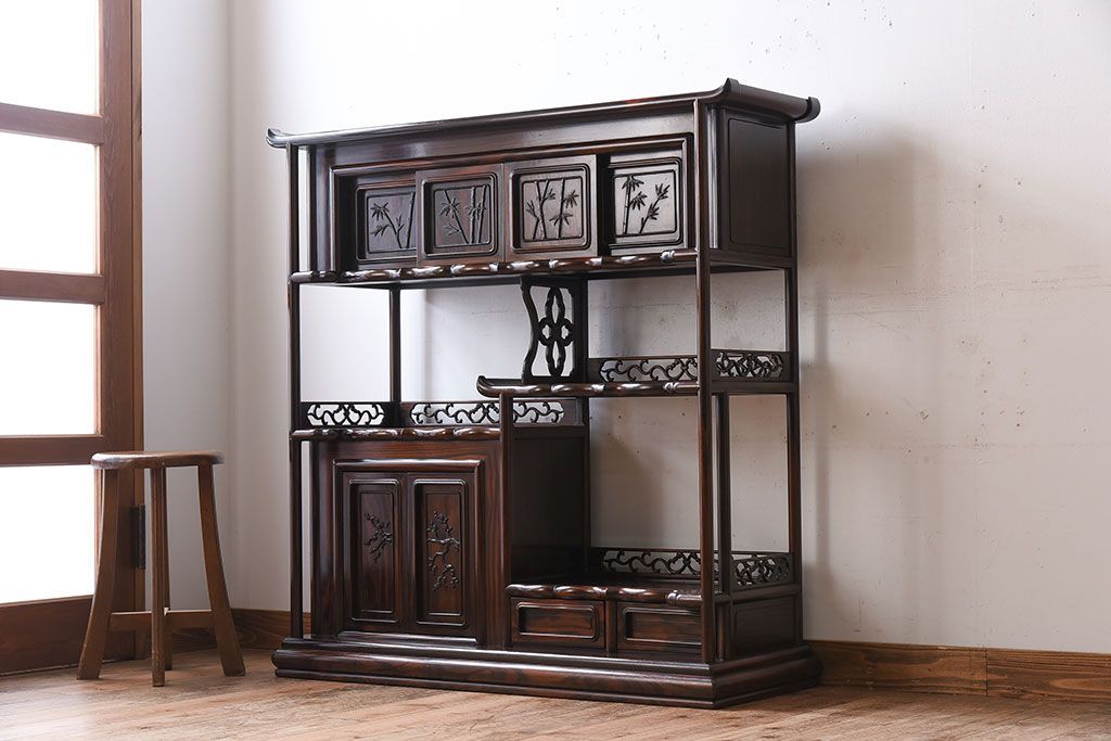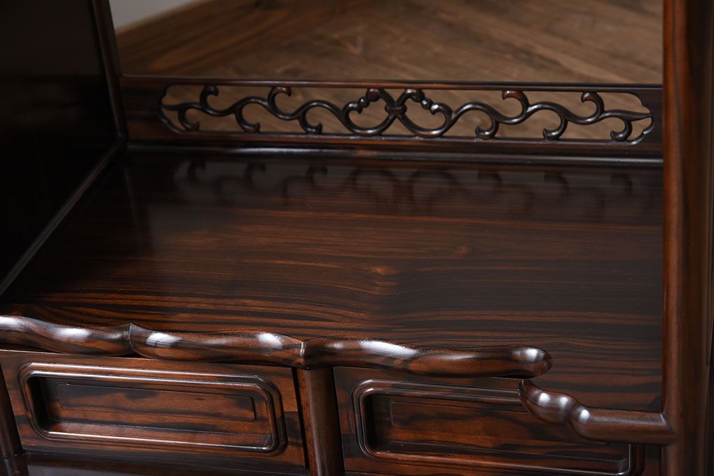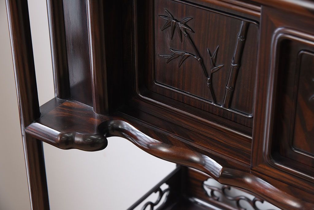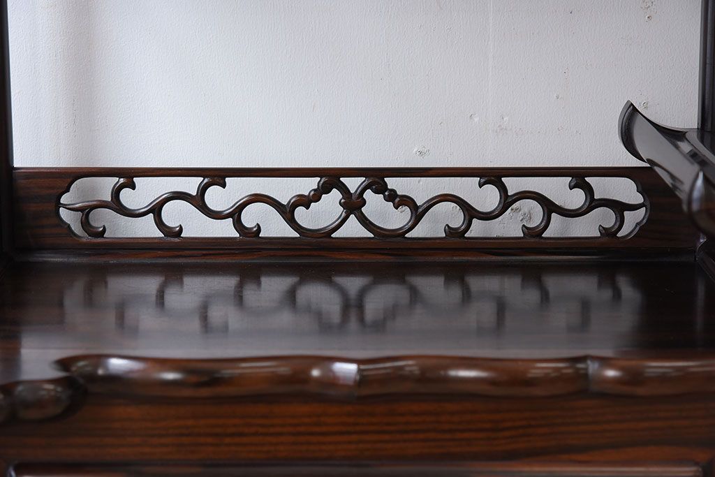 アンティーク家具 唐木・縞黒檀材!上品なアンティーク飾り棚(茶棚)