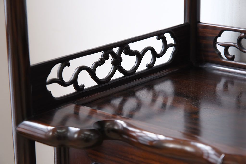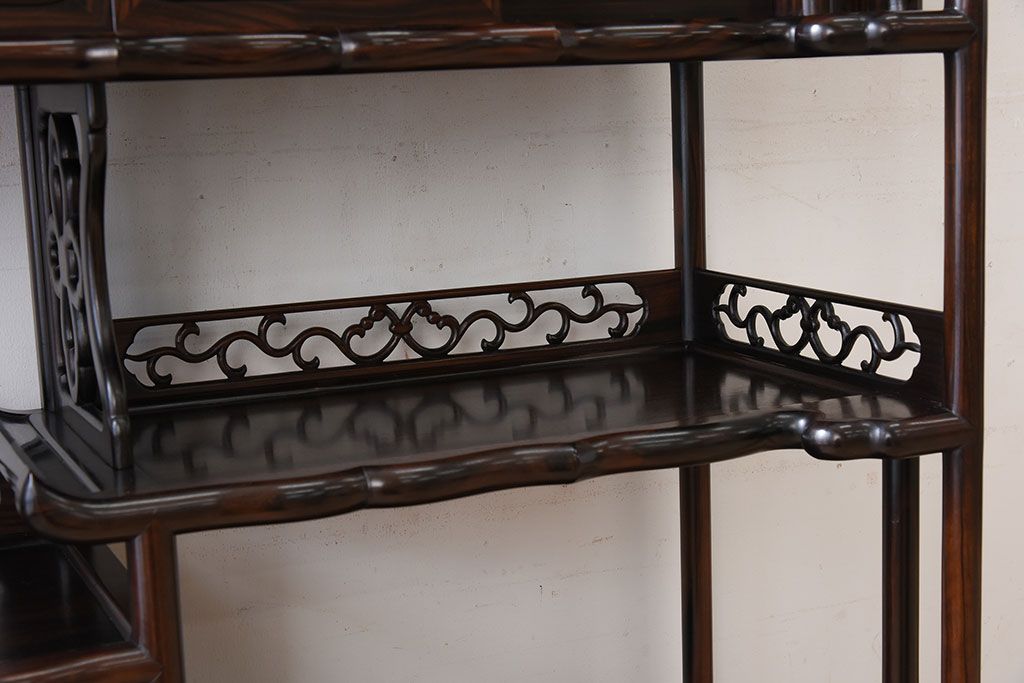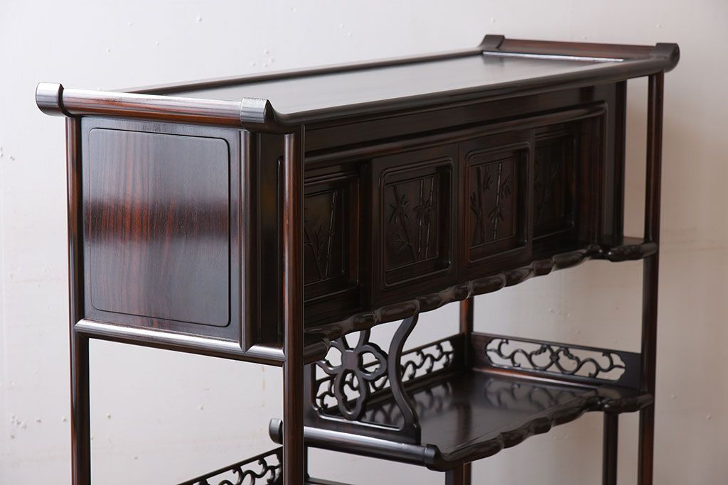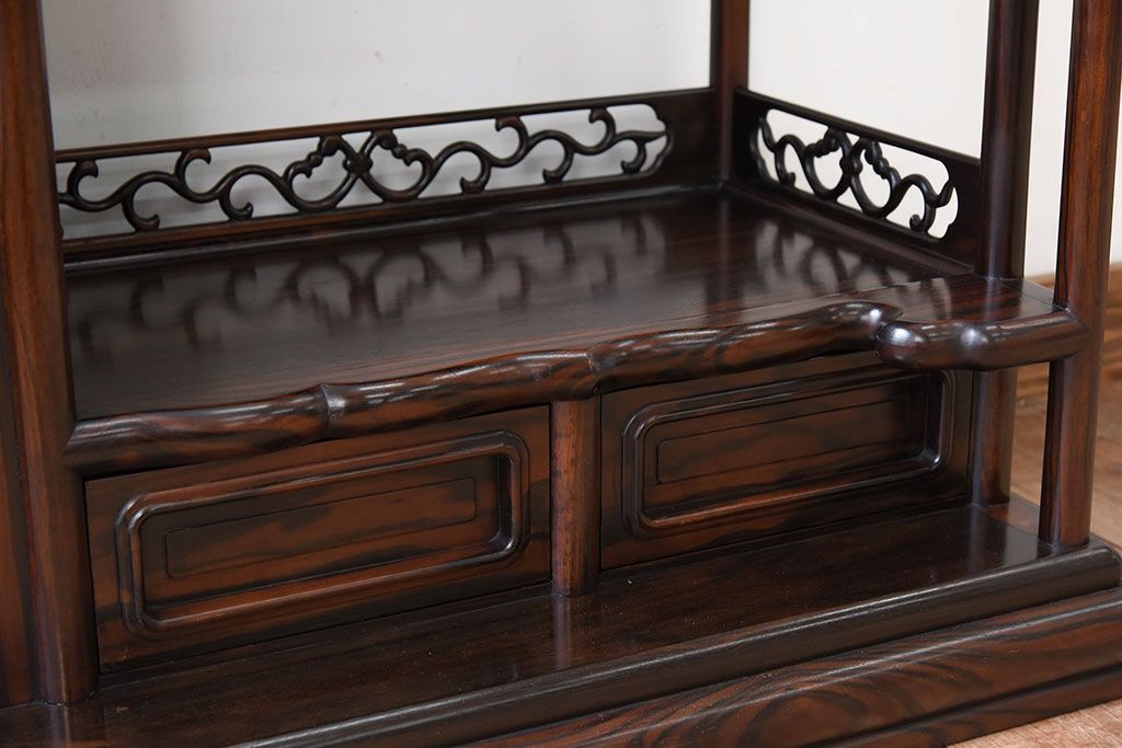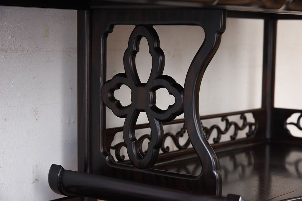 唐木・縞黒檀材!上品なアンティーク飾り棚(茶棚)です。
