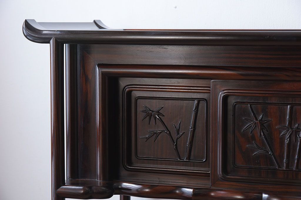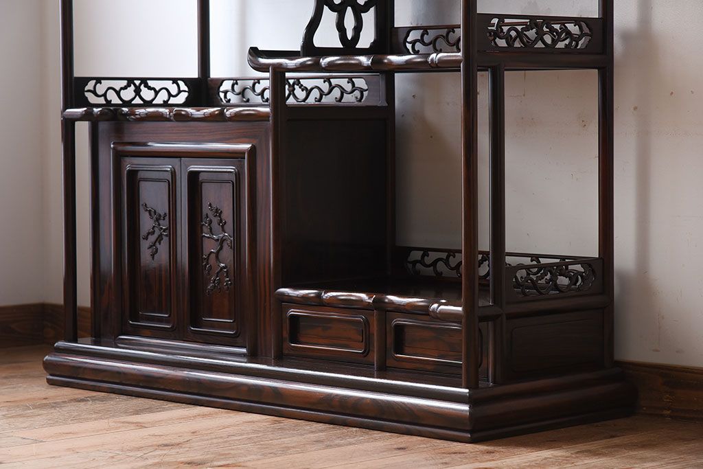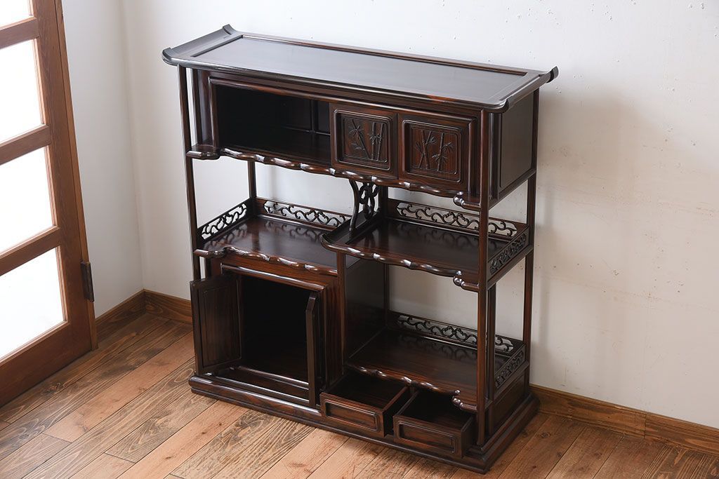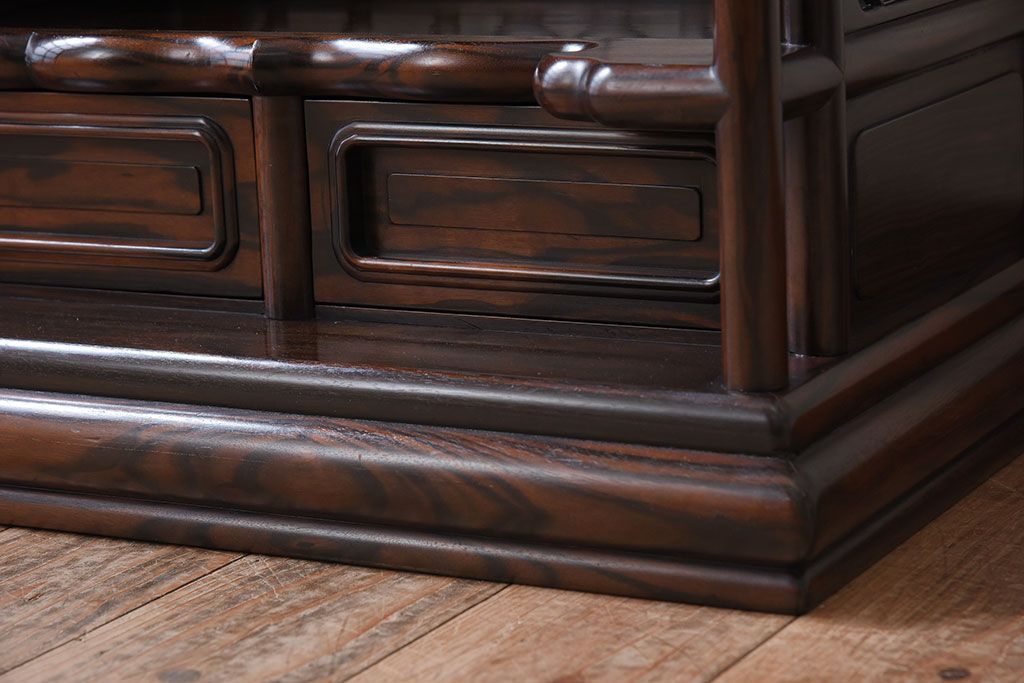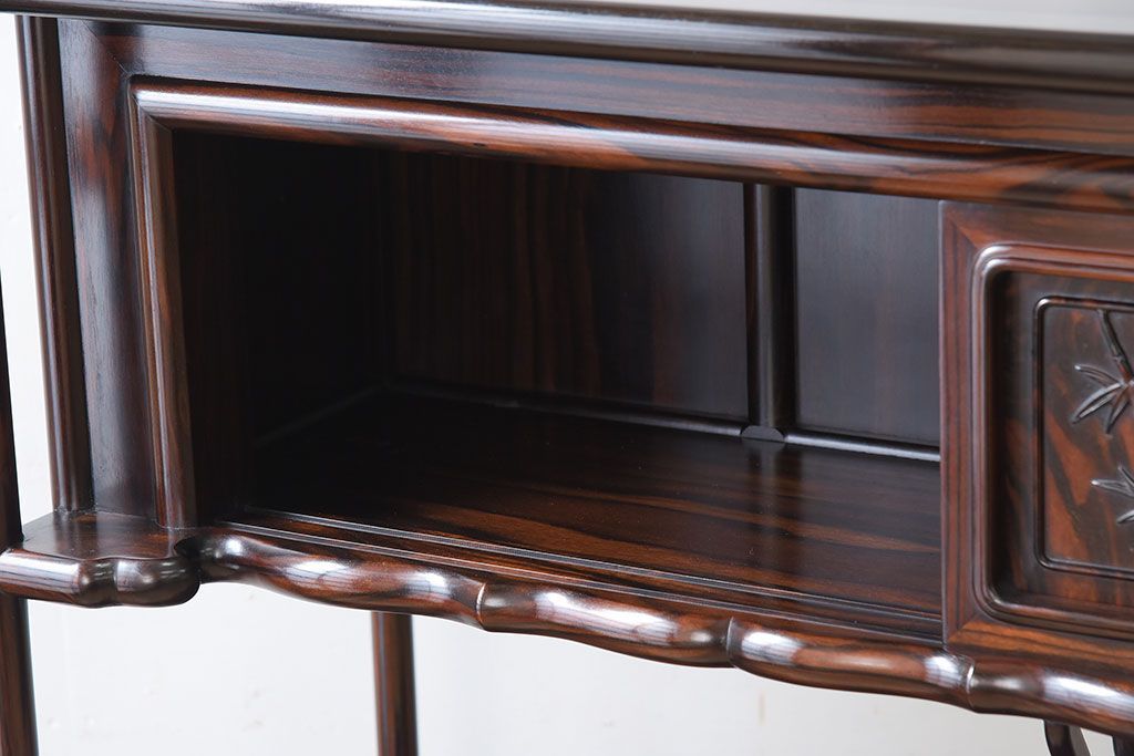 唐木・縞黒檀材!上品なアンティーク飾り棚(茶棚)です。