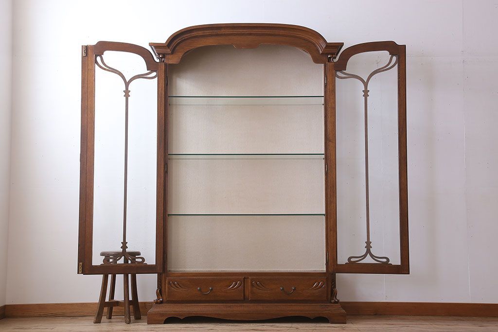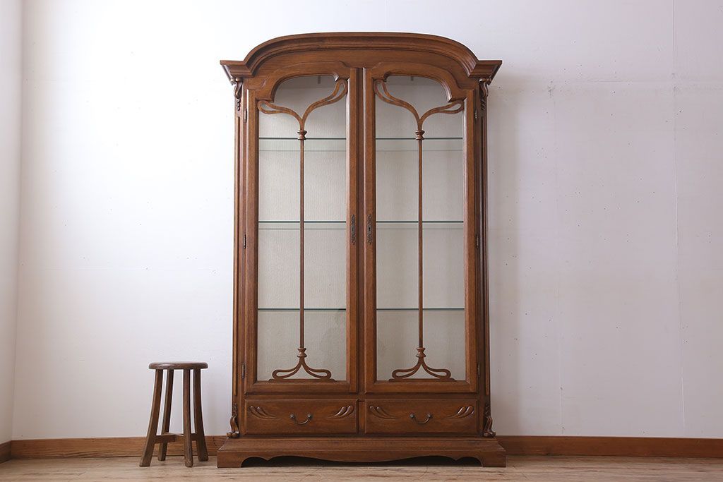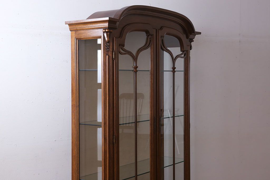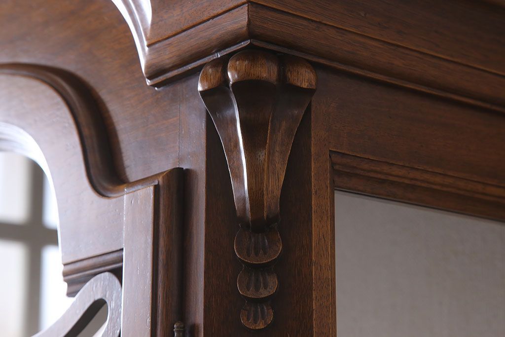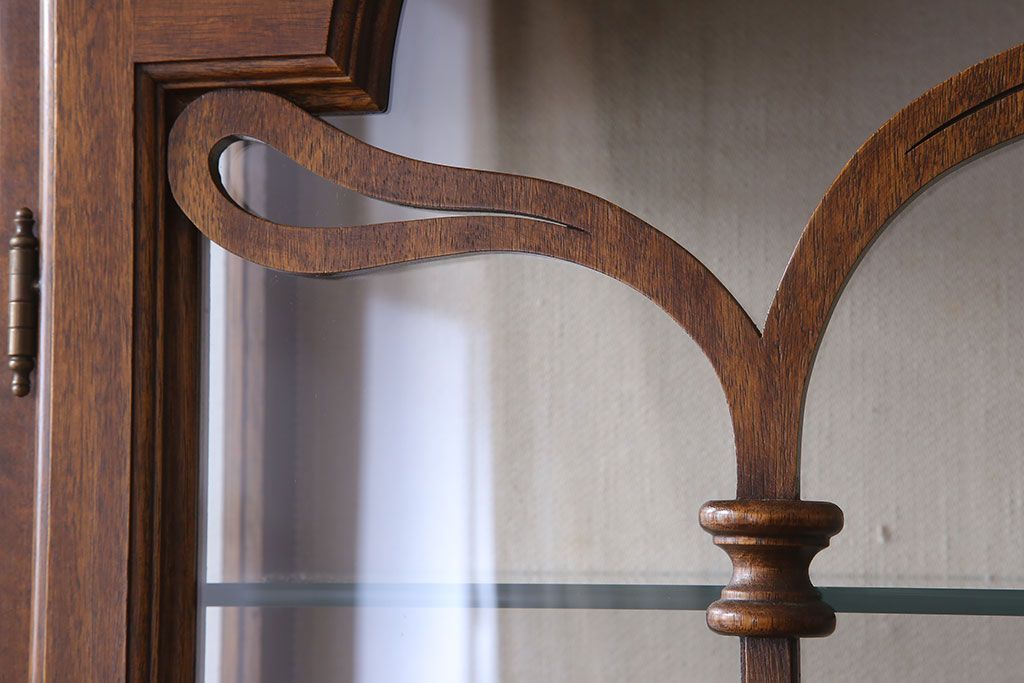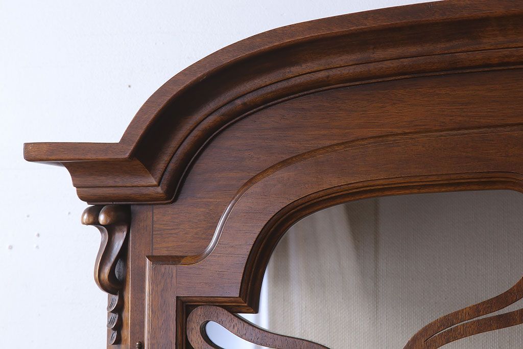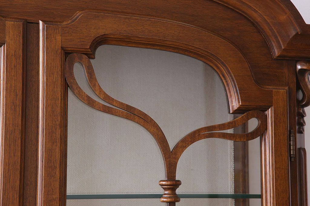 エレガントなデザインが美しいアンティーク飾り棚です。