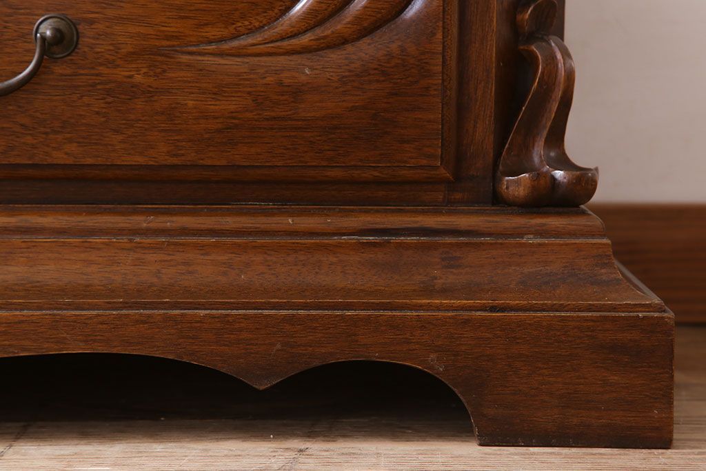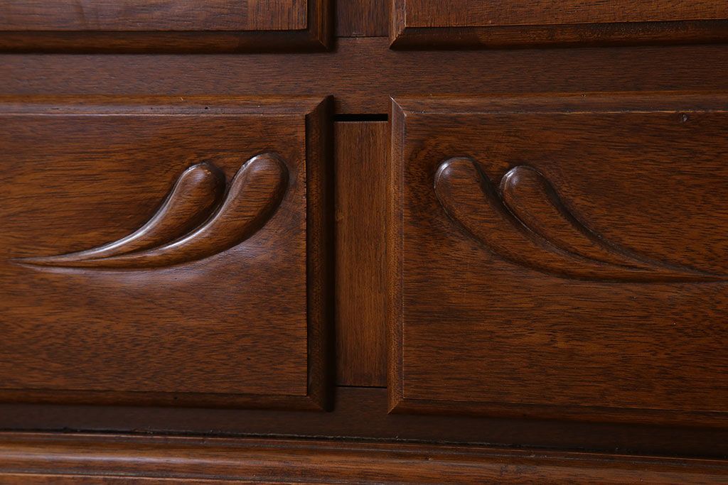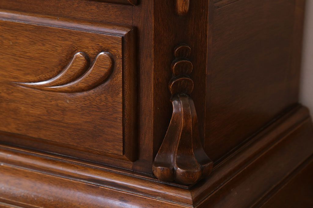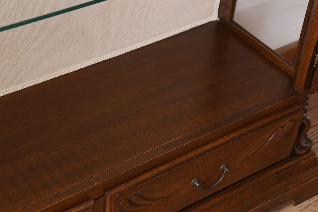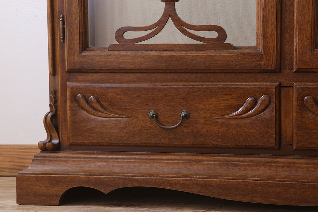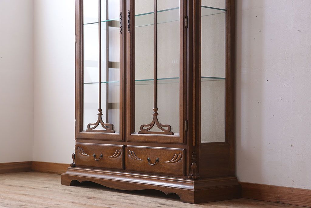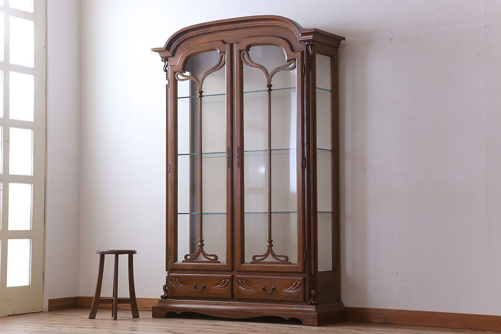 エレガントなデザインが美しいアンティーク飾り棚です。