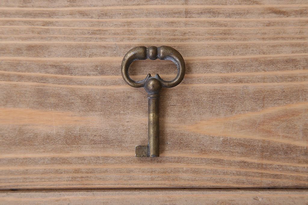 鍵は付属します。画像にありますように、袋に入れお付けします。スムーズに動くように調整していますが、あくまでも古いものや中古品ですので、長期の使用保証は出来かねます。ご購入後不具合が発生した場合は、当店でサポートさせていただきますので、お気軽にご相談くださいませ。