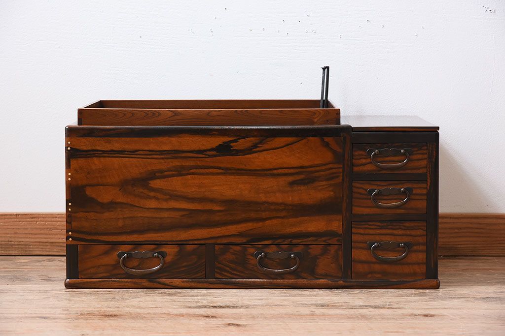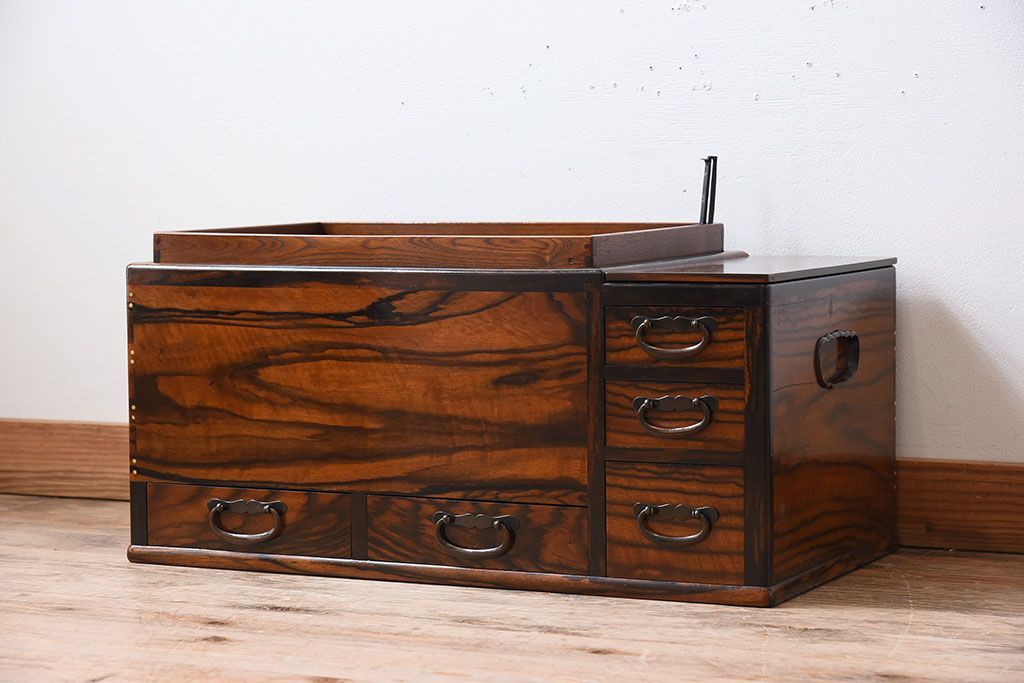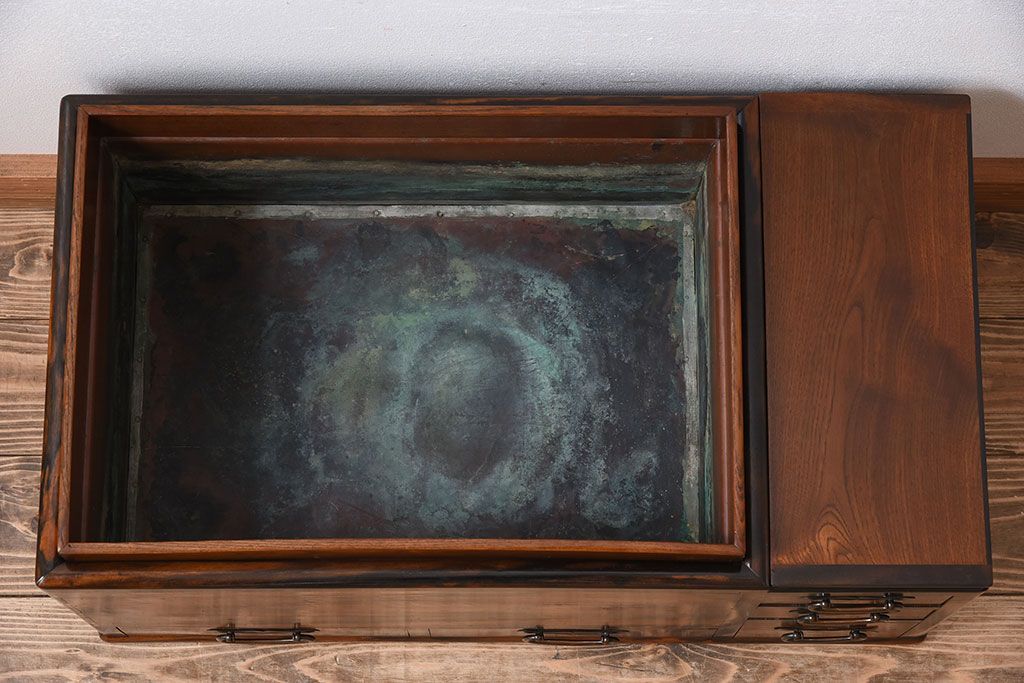 古民具・骨董 大正昭和期 灰ならし・火箸・五徳付き!アンティーク長火鉢です。