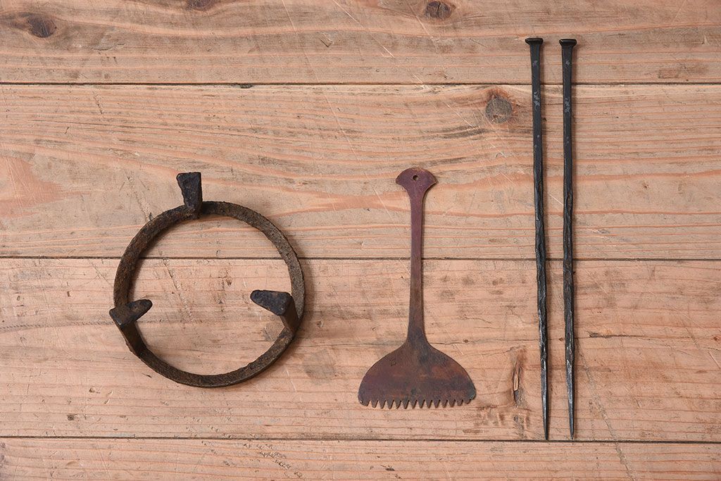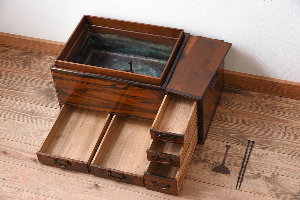 骨董・美術品 > アンティーク雑貨 古民具・骨董 大正昭和期 灰ならし・火箸・五徳付き!アンティーク長火鉢