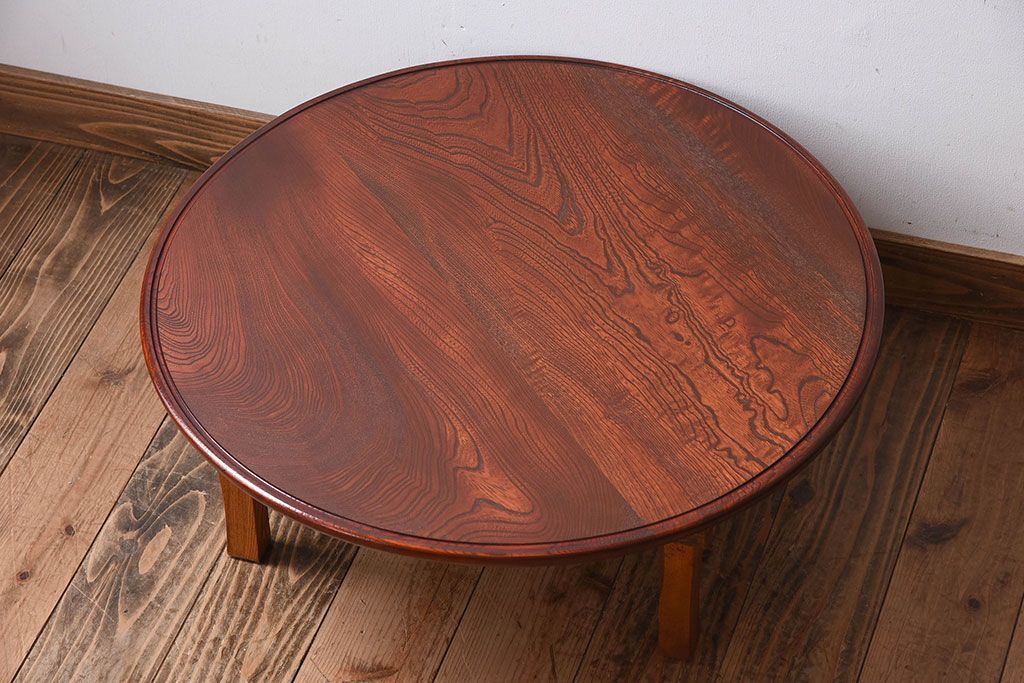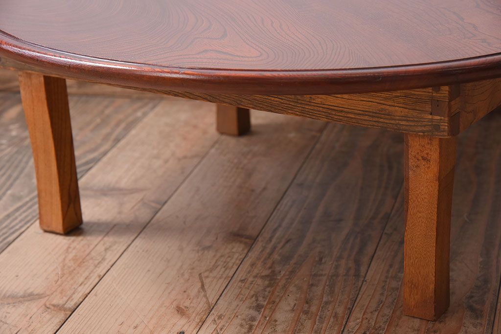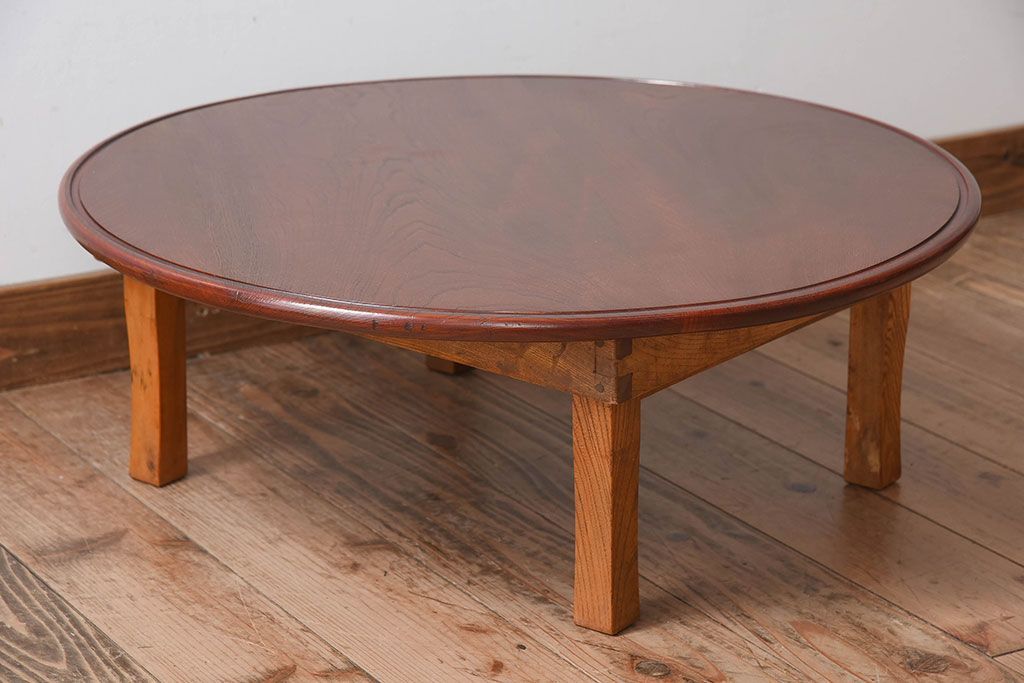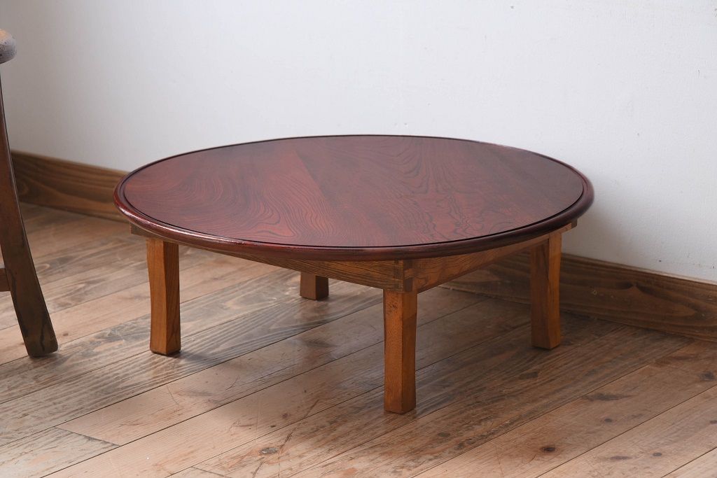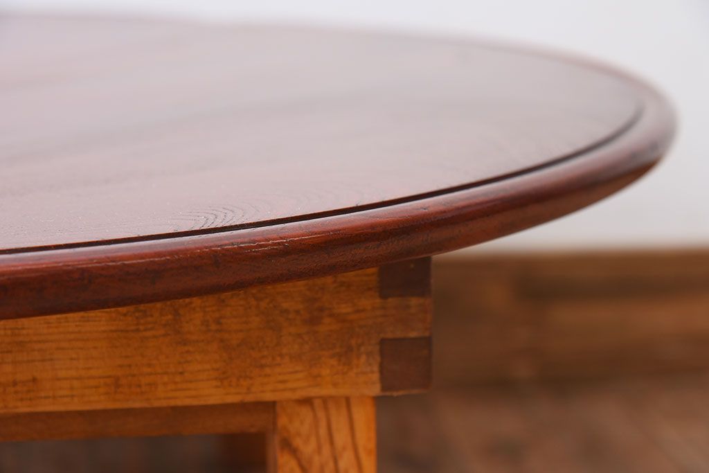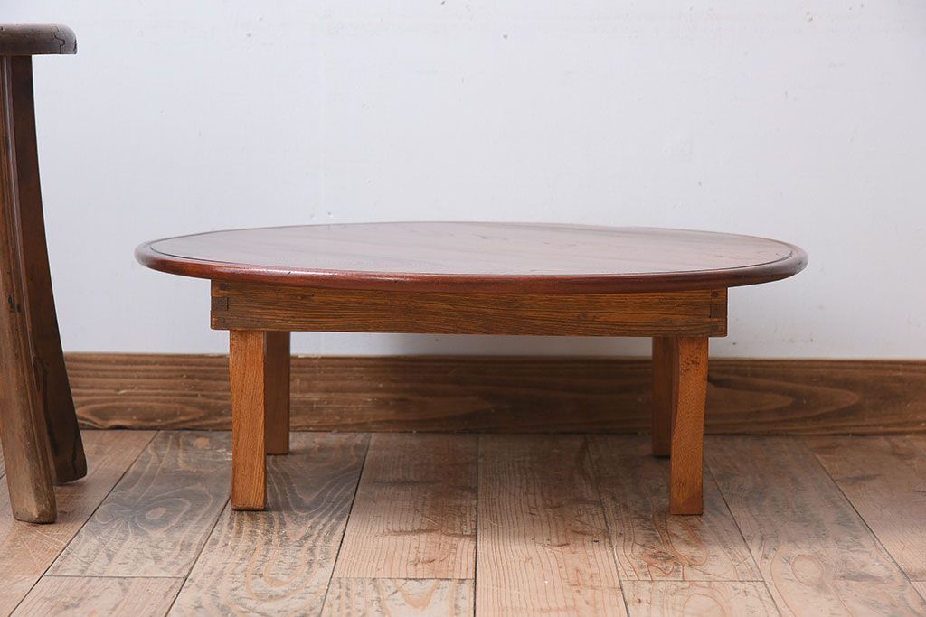 アンティーク家具 古い栓材製のシンプルなアンティーク丸ちゃぶ台(2)