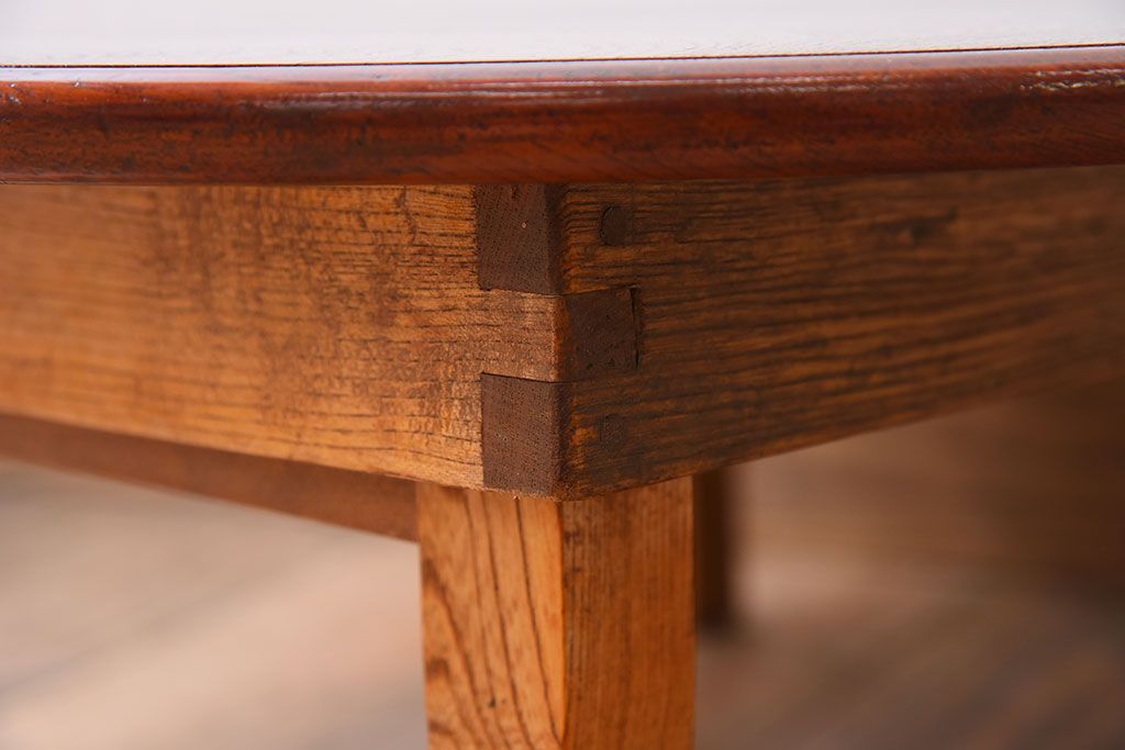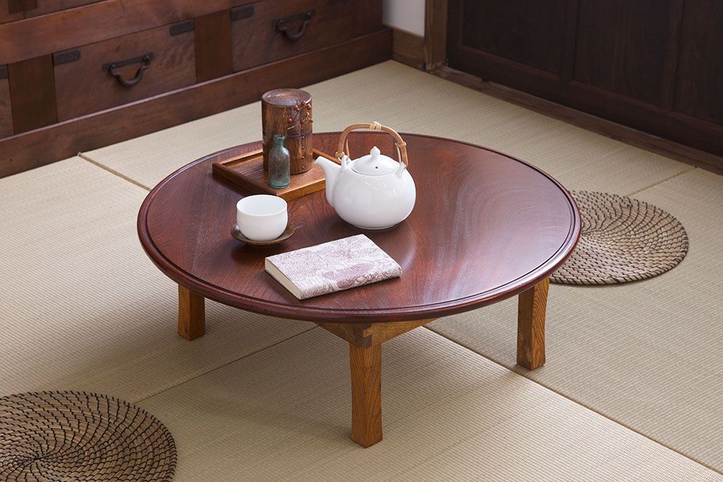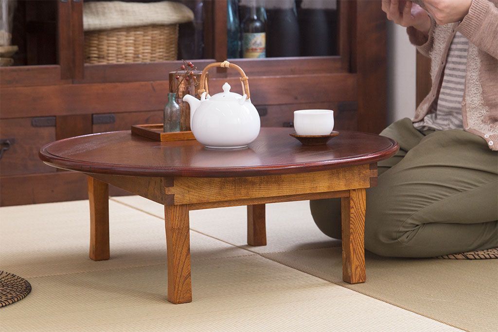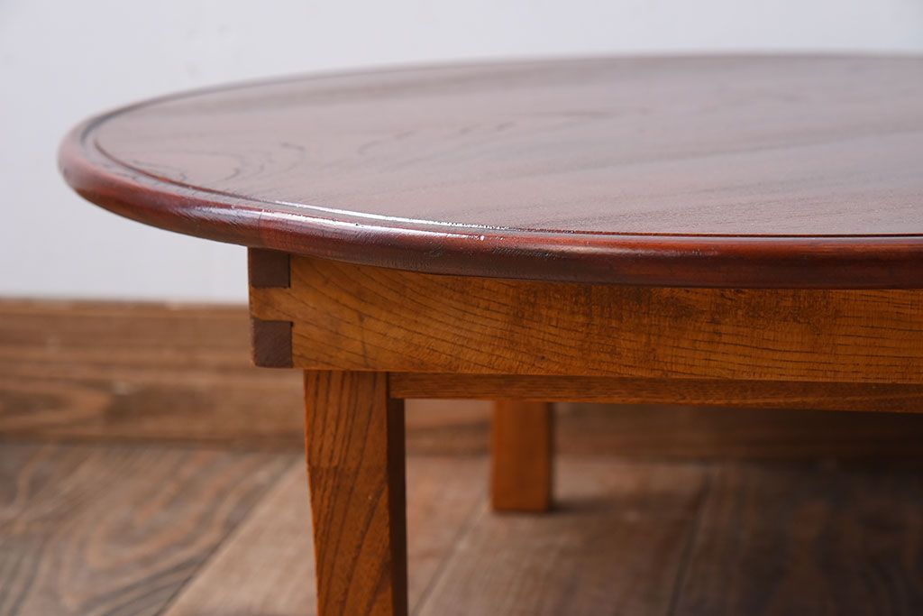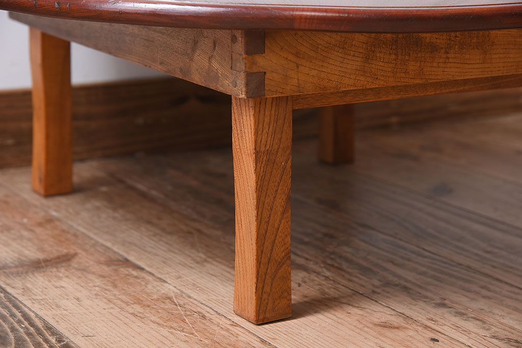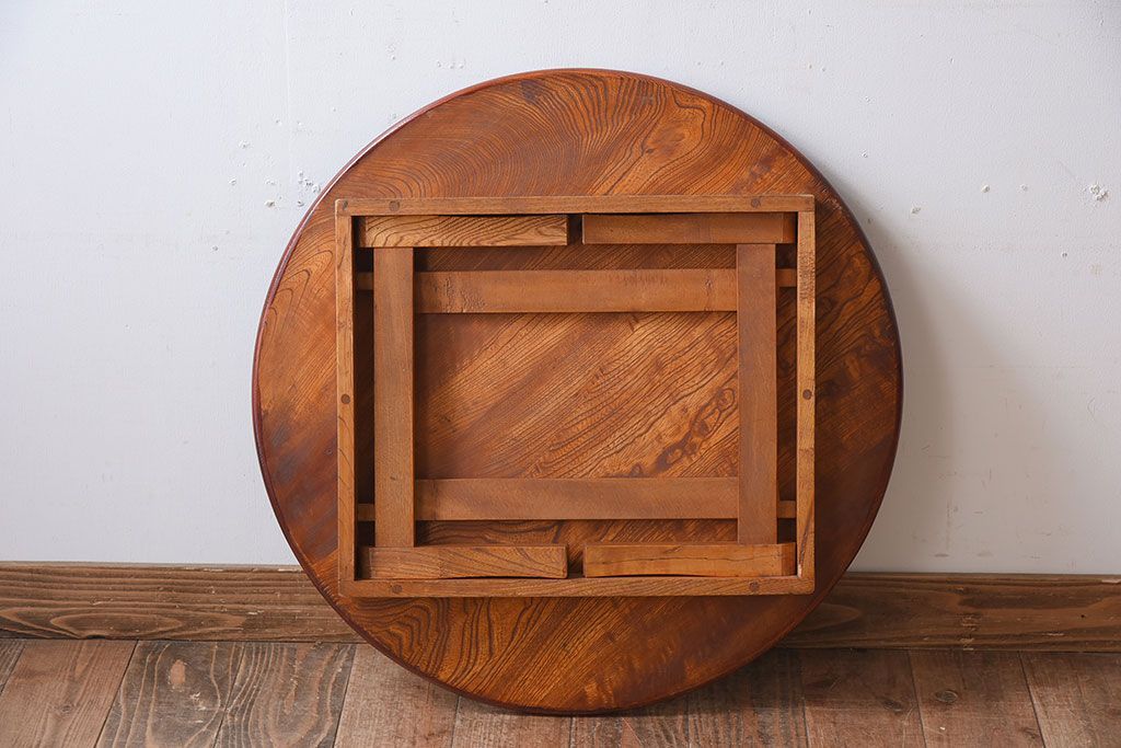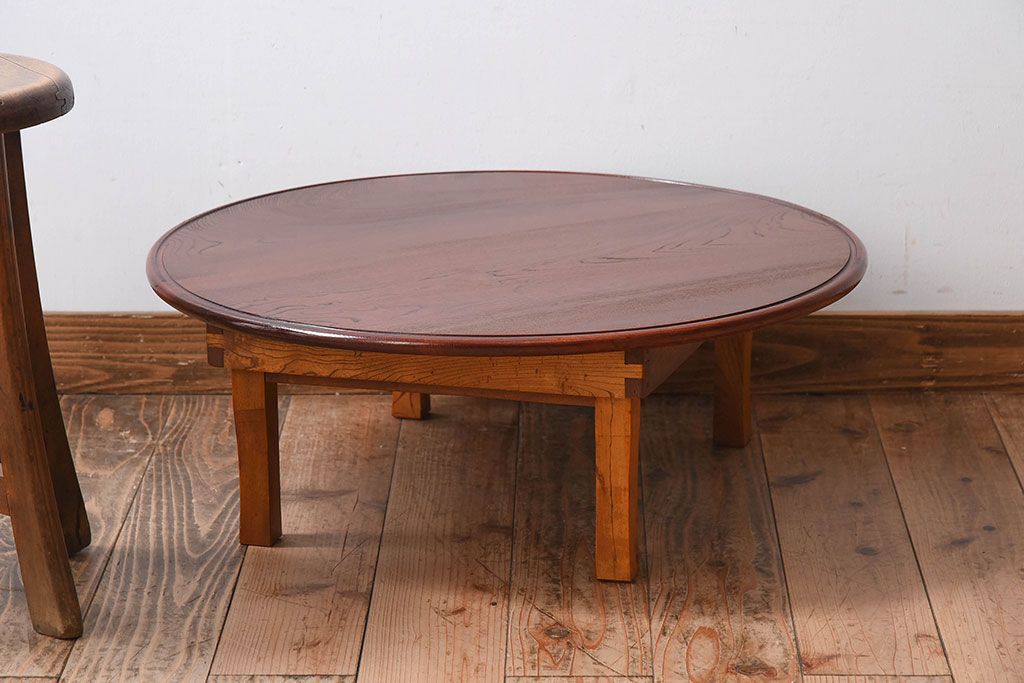 アンティーク家具 古い栓材製のシンプルなアンティーク丸ちゃぶ台(2)