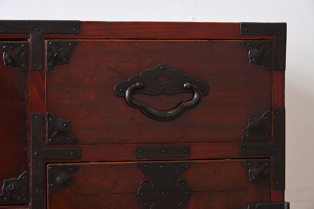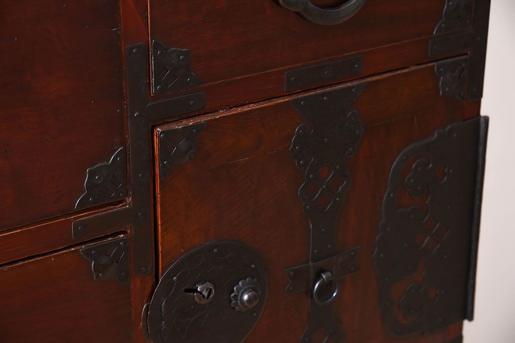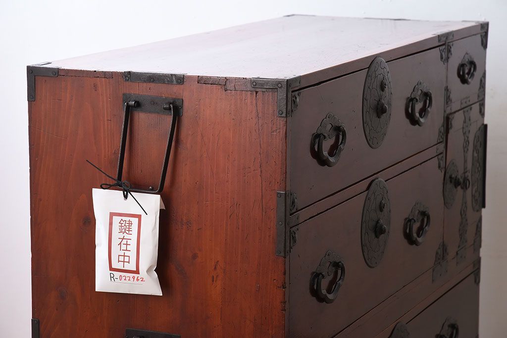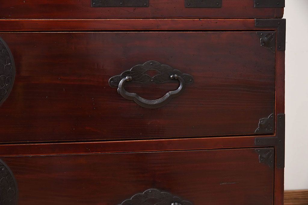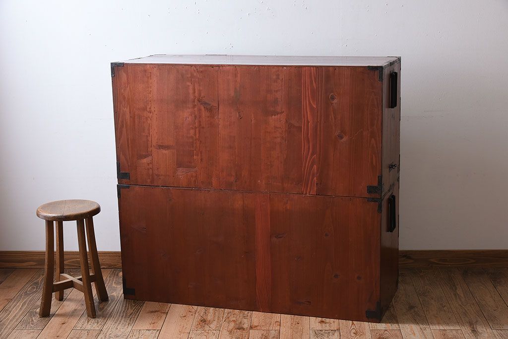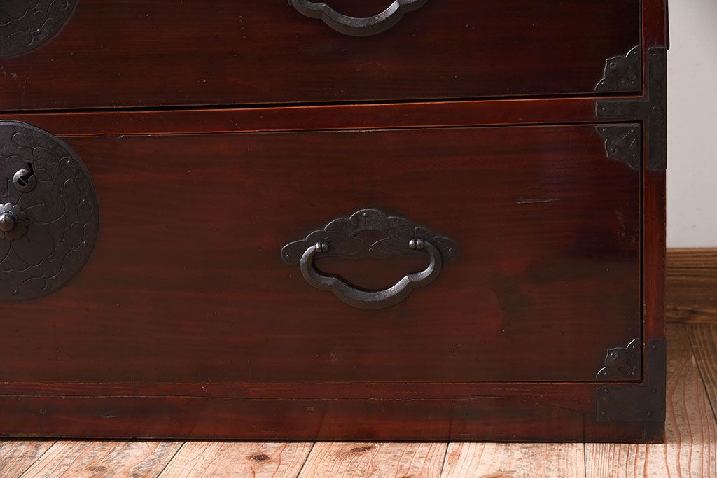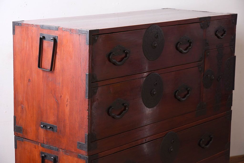 ラフジュ工房> 和箪笥> 衣装箪笥 > アンティーク家具 古民具・骨董 前面栗材の二段重ね米沢箪笥(衣装箪笥)(2)