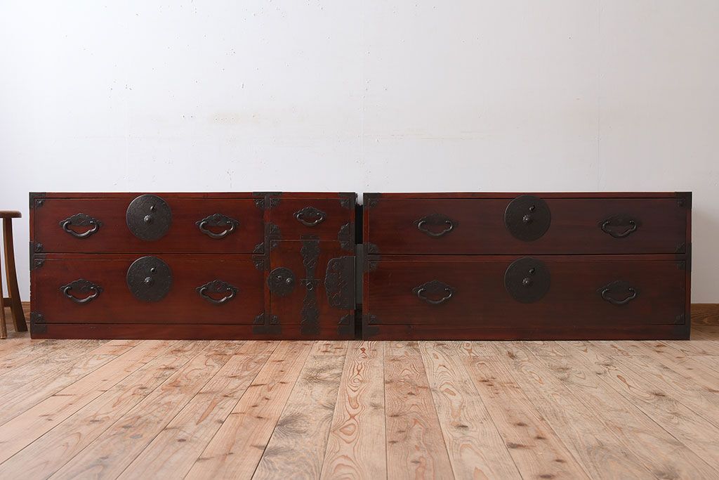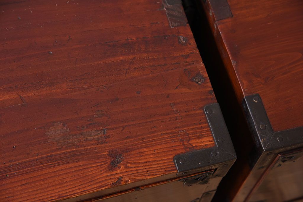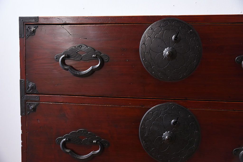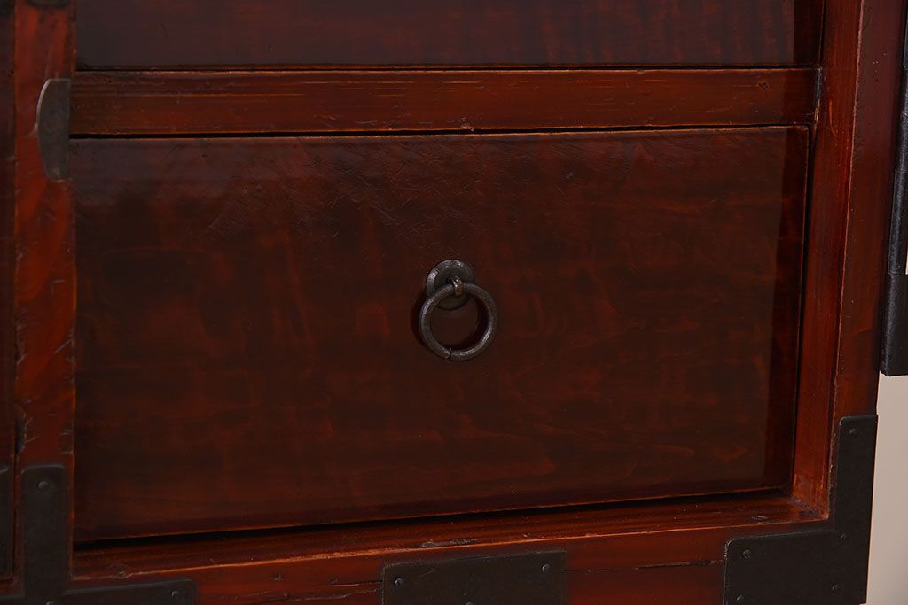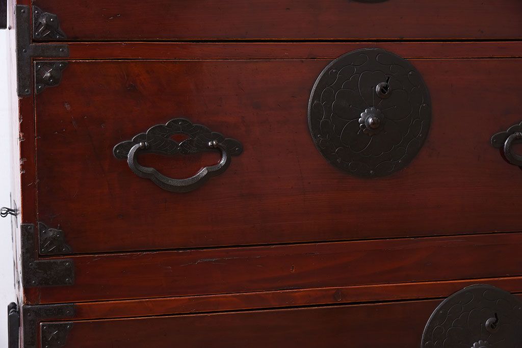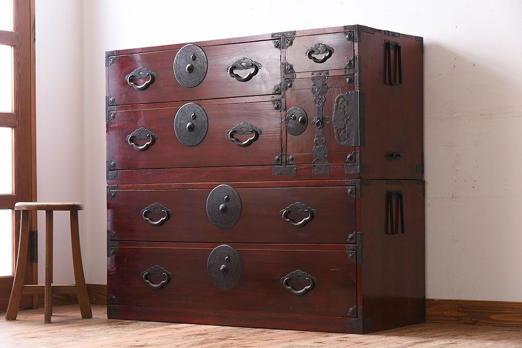 ラフジュ工房> 和箪笥> 衣装箪笥 > アンティーク家具 古民具・骨董 前面栗材の二段重ね米沢箪笥(衣装箪笥)(2)