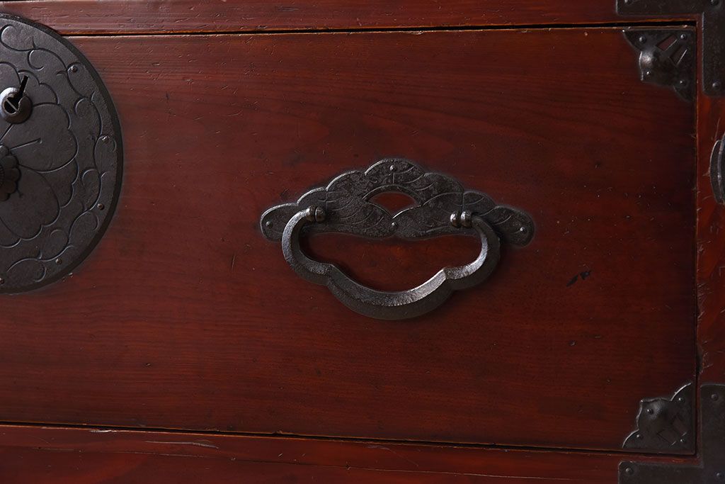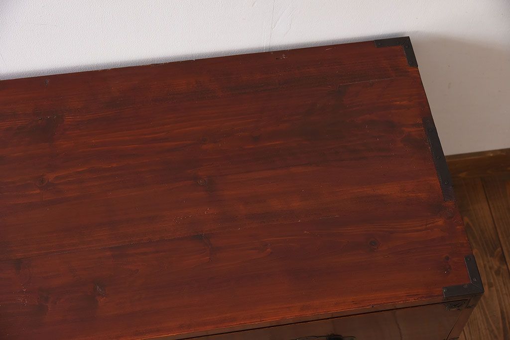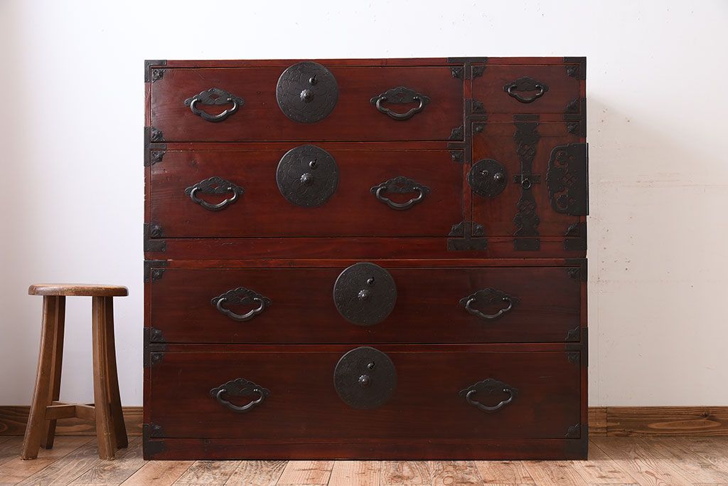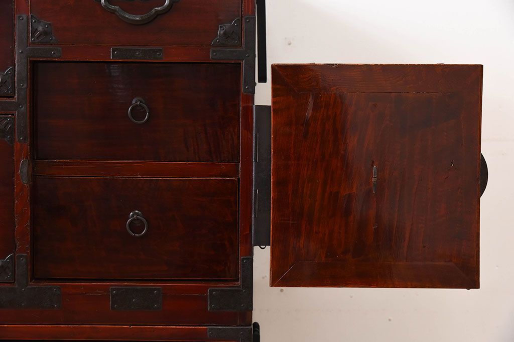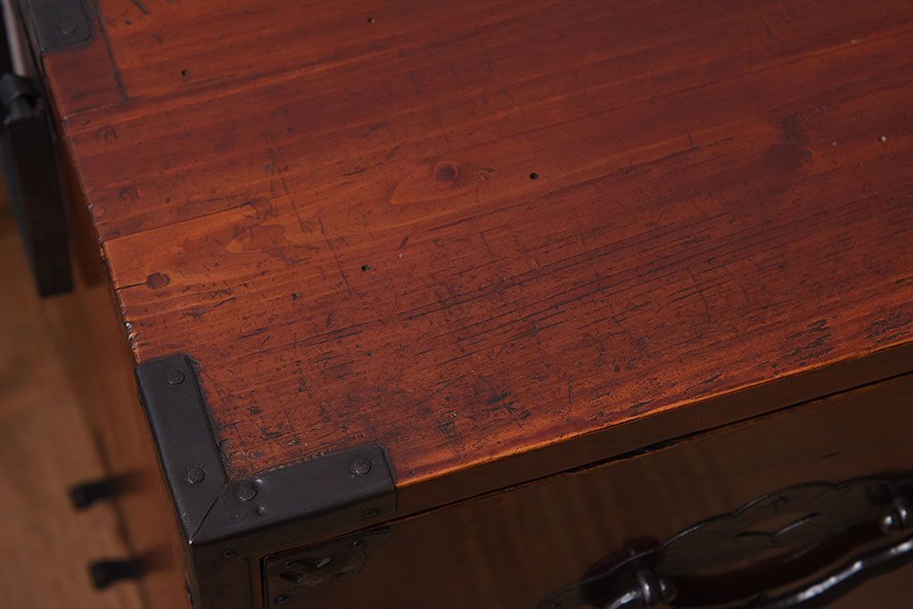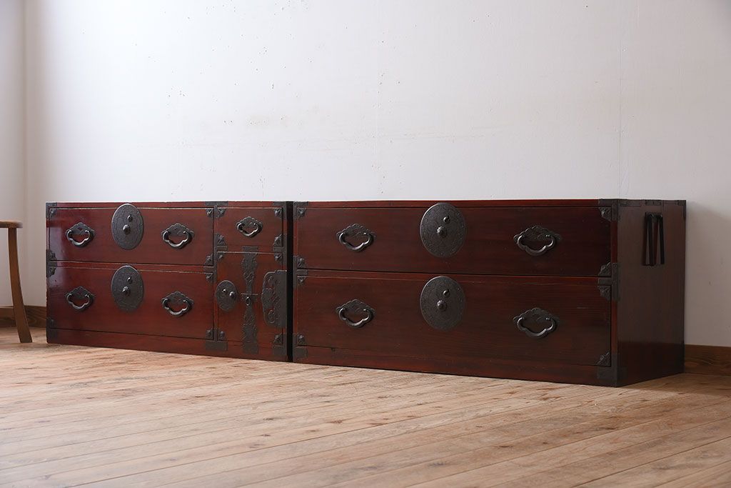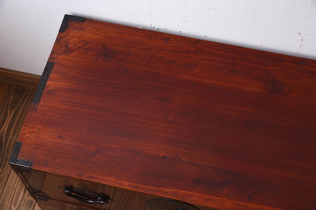 ラフジュ工房> 和箪笥> 衣装箪笥 > アンティーク家具 古民具・骨董 前面栗材の二段重ね米沢箪笥(衣装箪笥)(2)