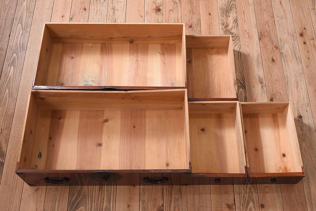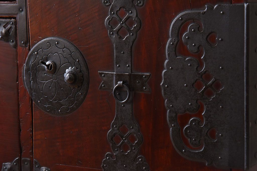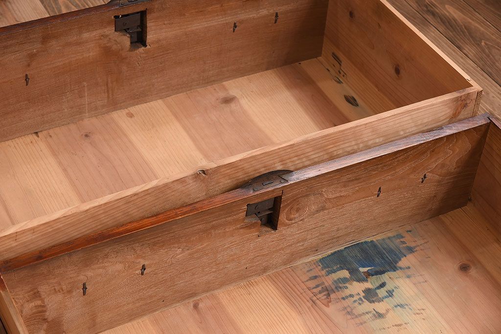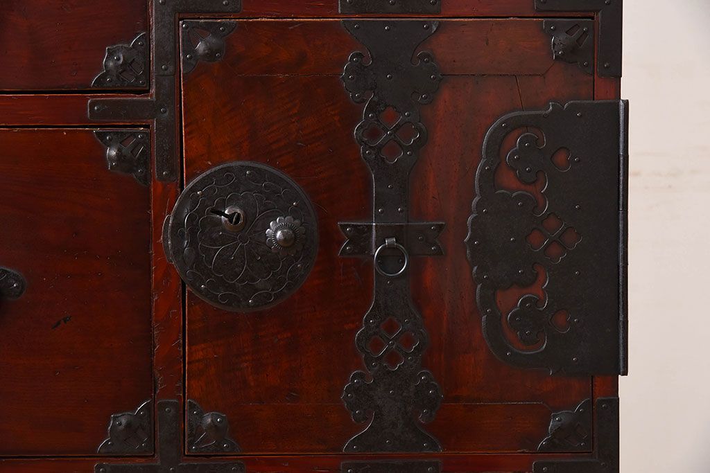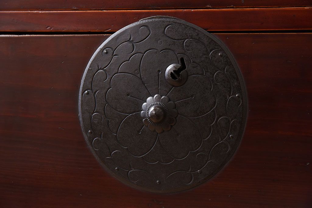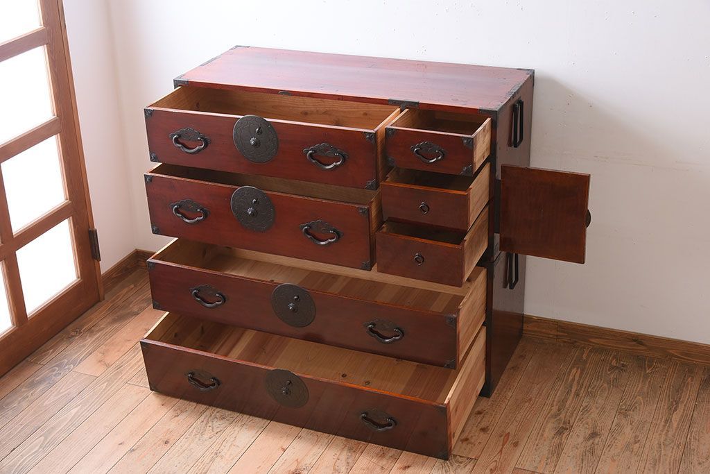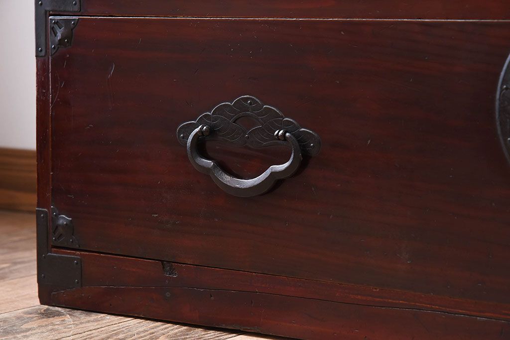 ラフジュ工房> 和箪笥> 衣装箪笥 > アンティーク家具 古民具・骨董 前面栗材の二段重ね米沢箪笥(衣装箪笥)(2)