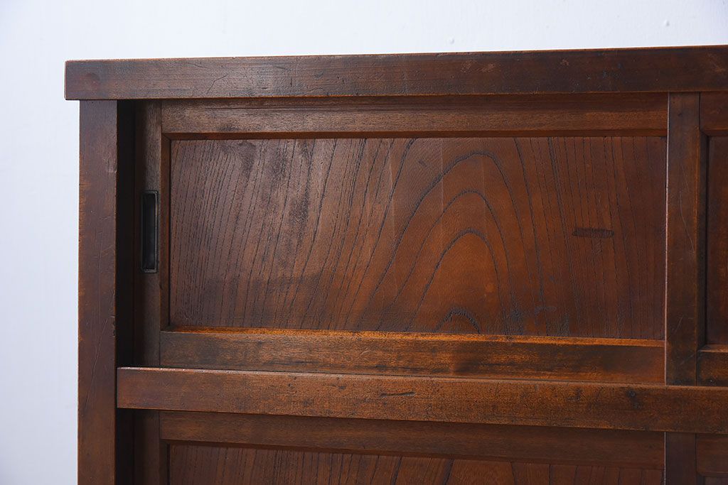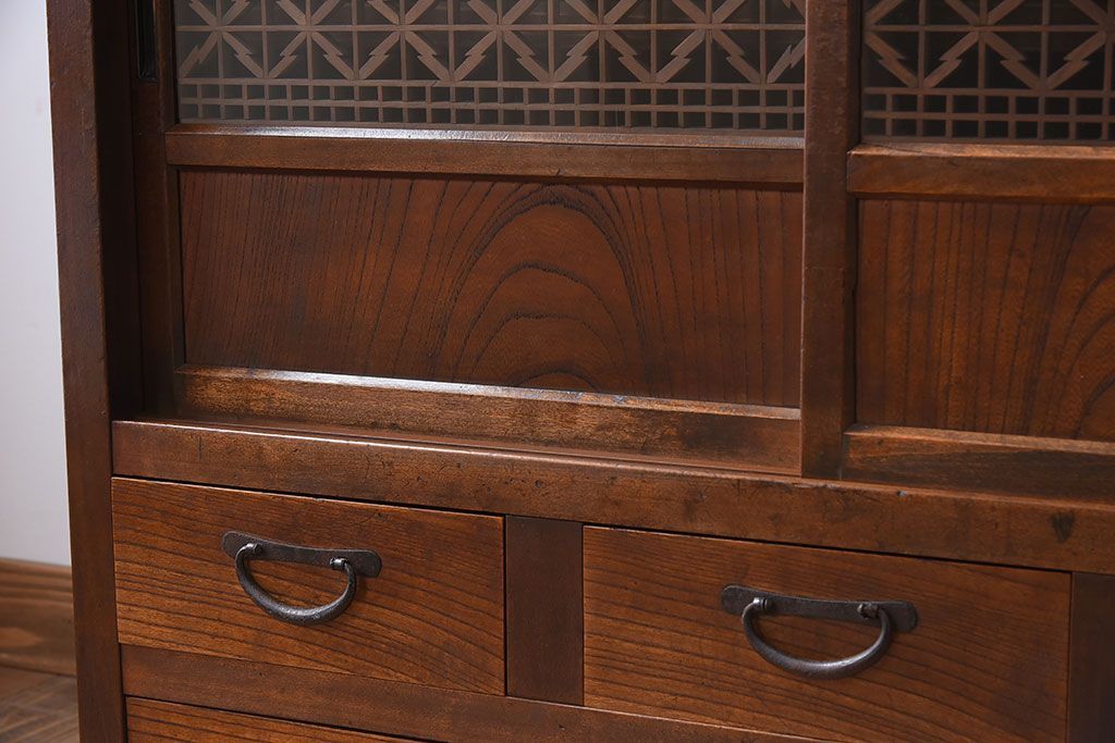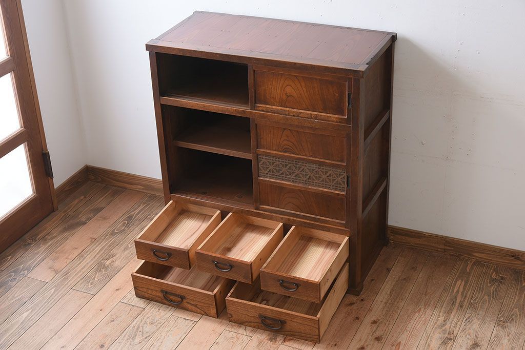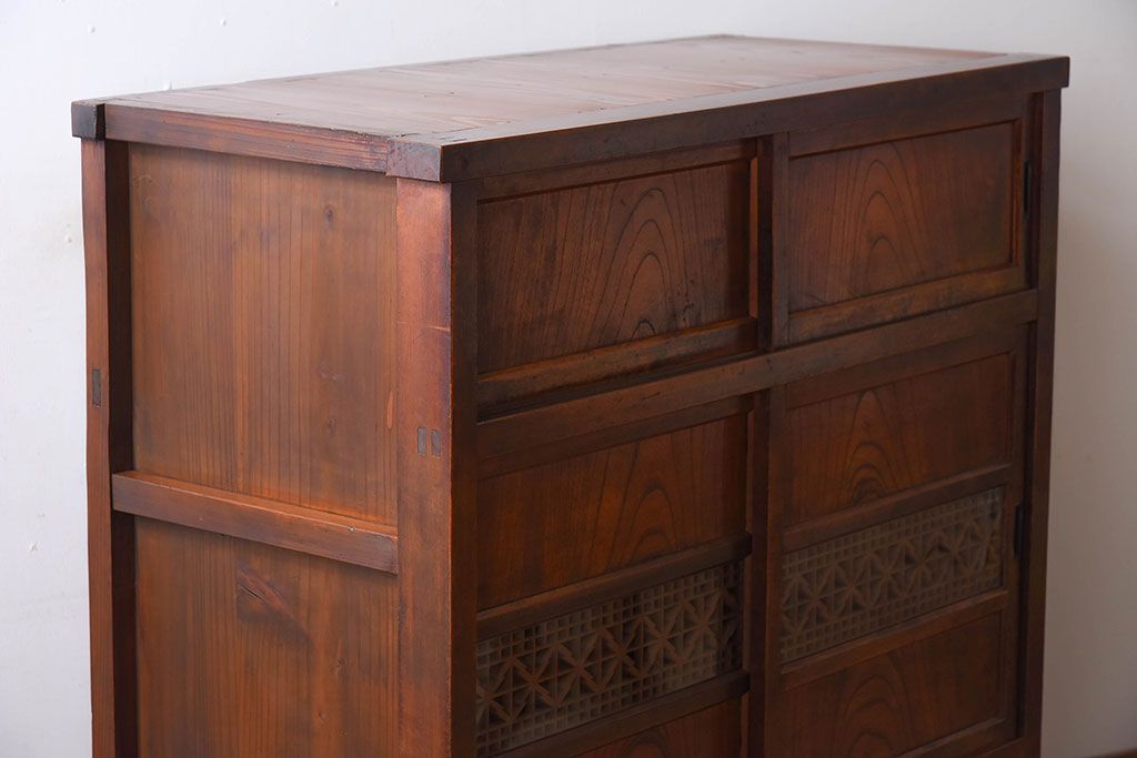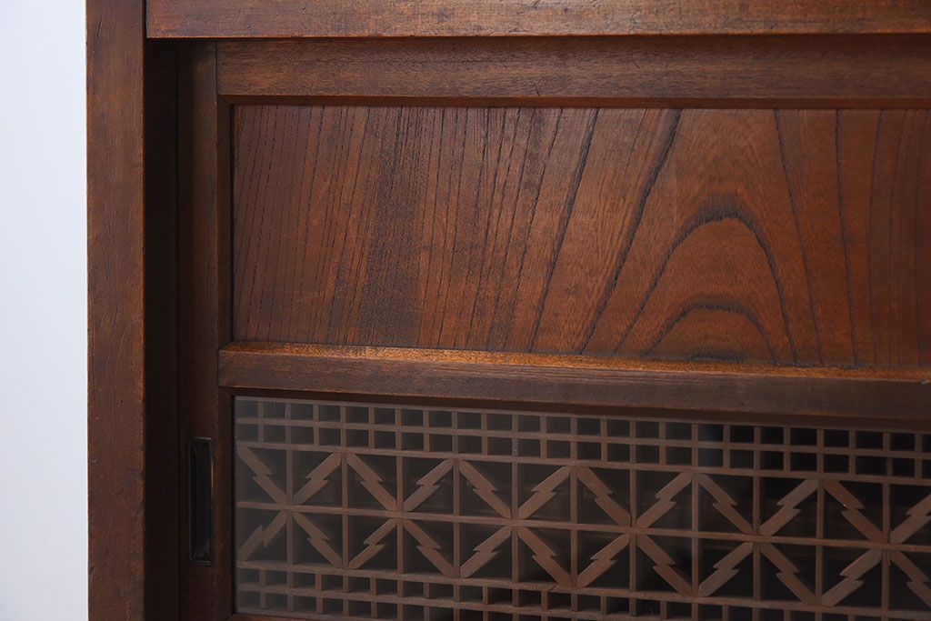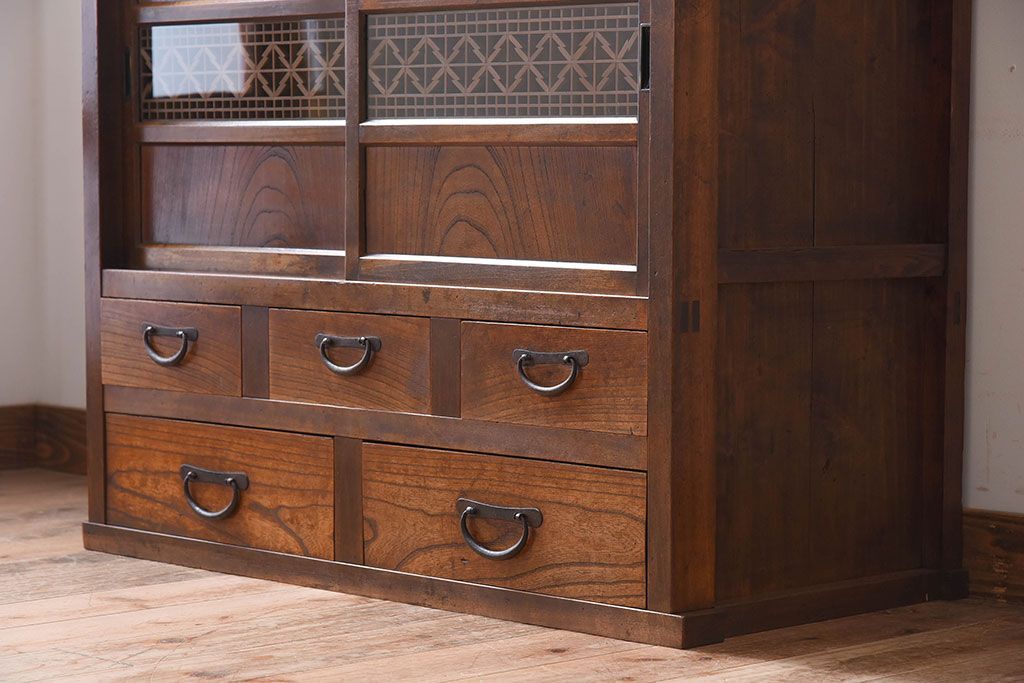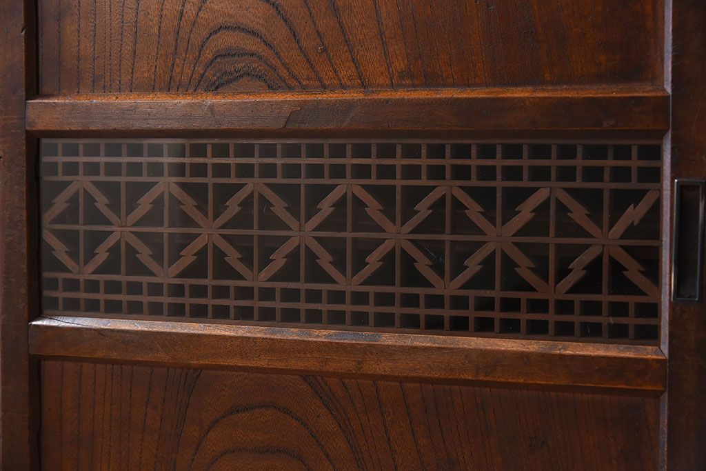 アンティーク家具 組子入り引き戸がおしゃれな和製アンティークの茶箪笥(収納棚)