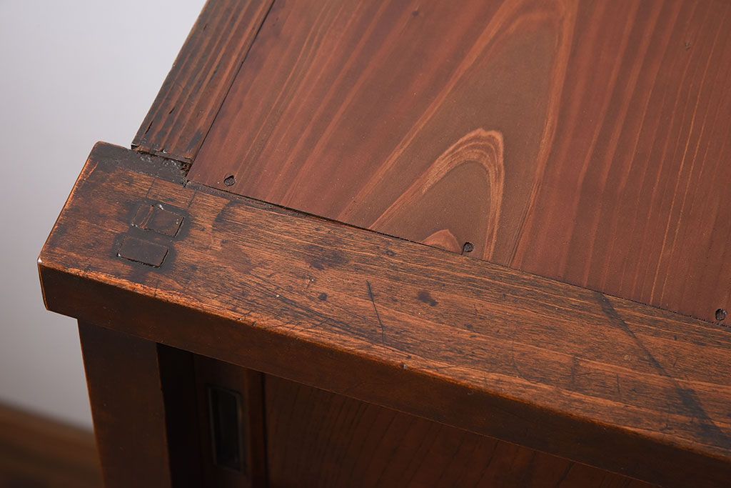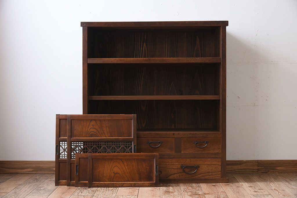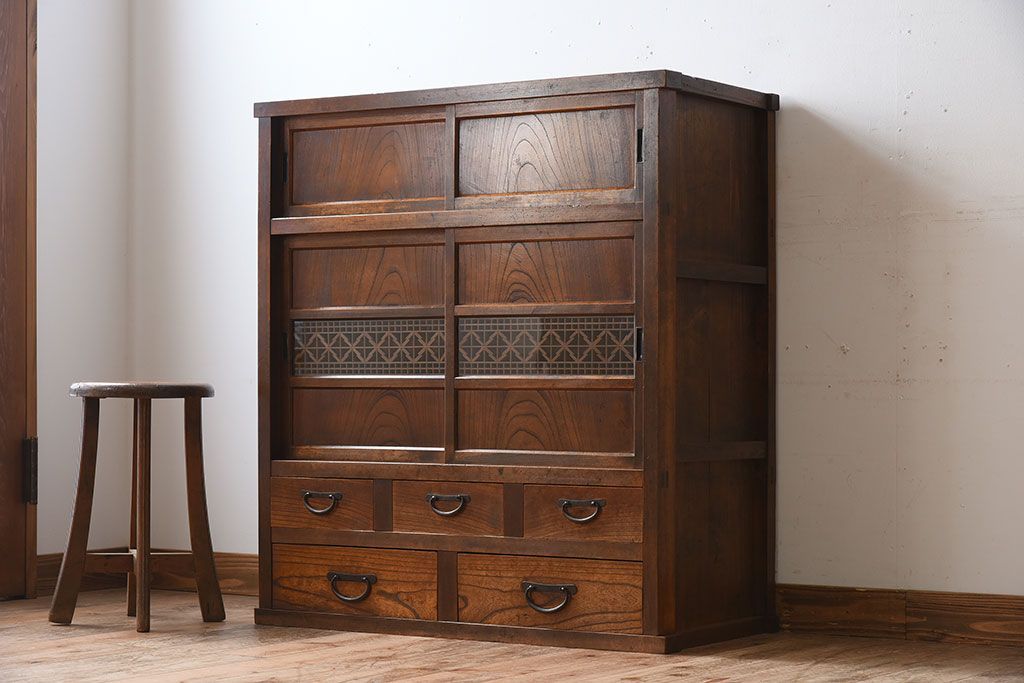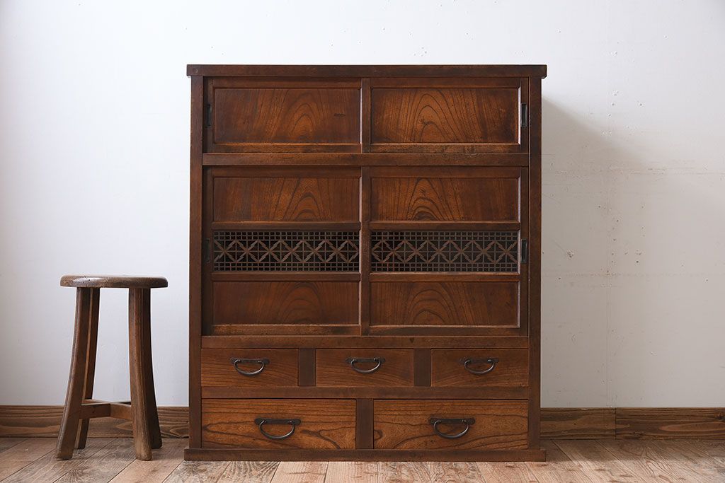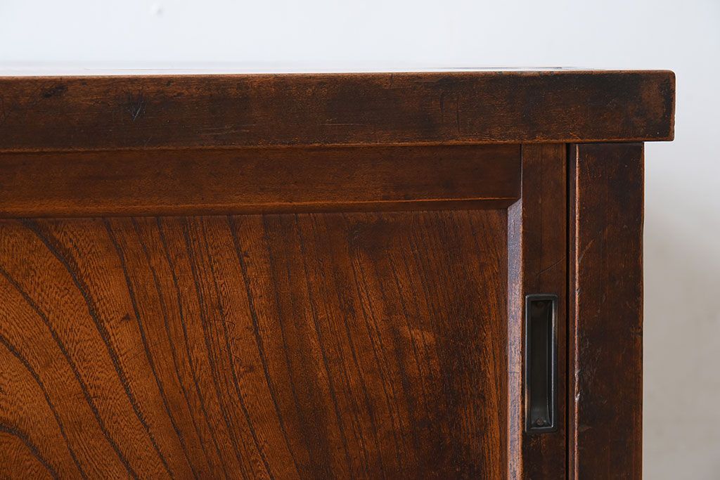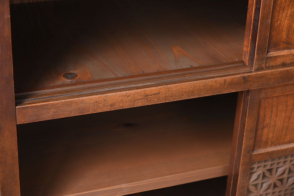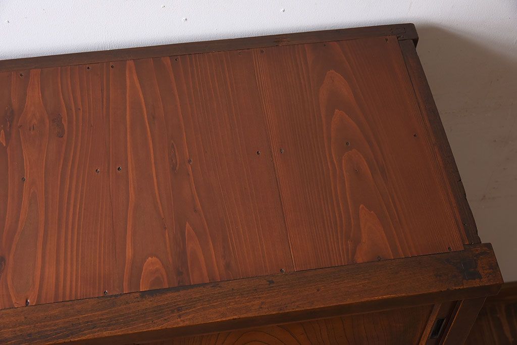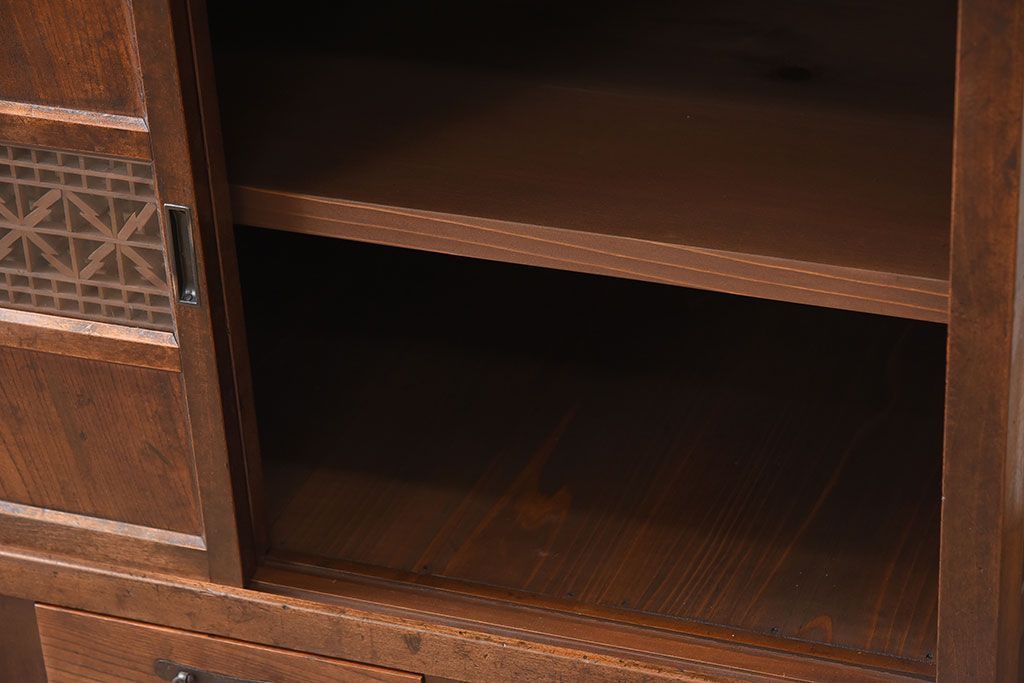 アンティーク家具 組子入り引き戸がおしゃれな和製アンティークの茶箪笥(収納棚)