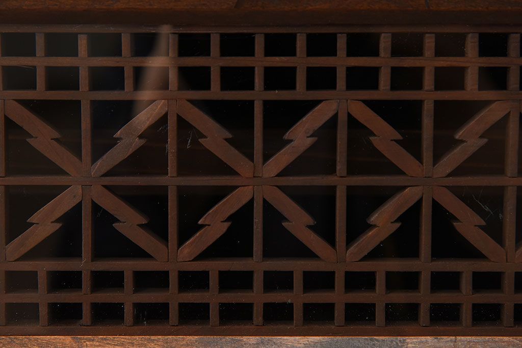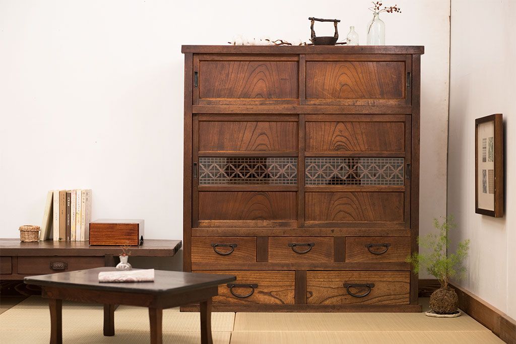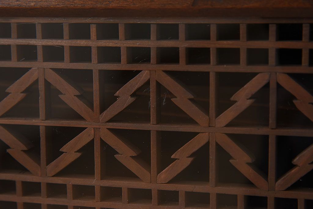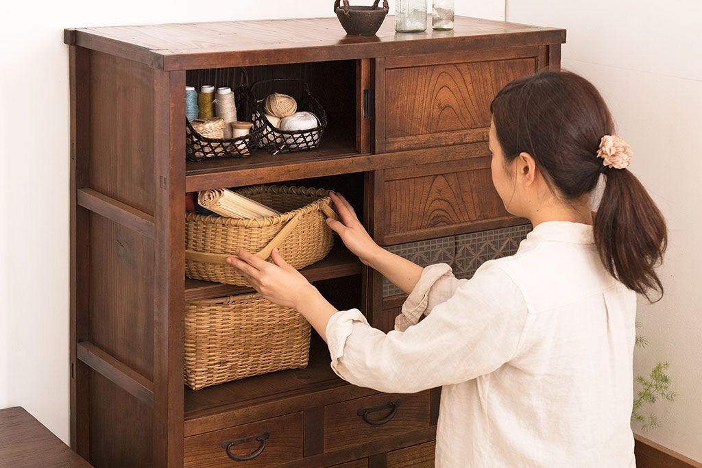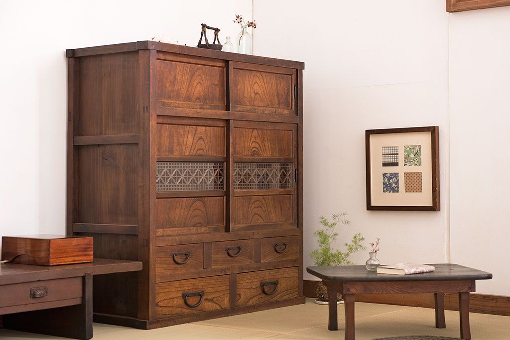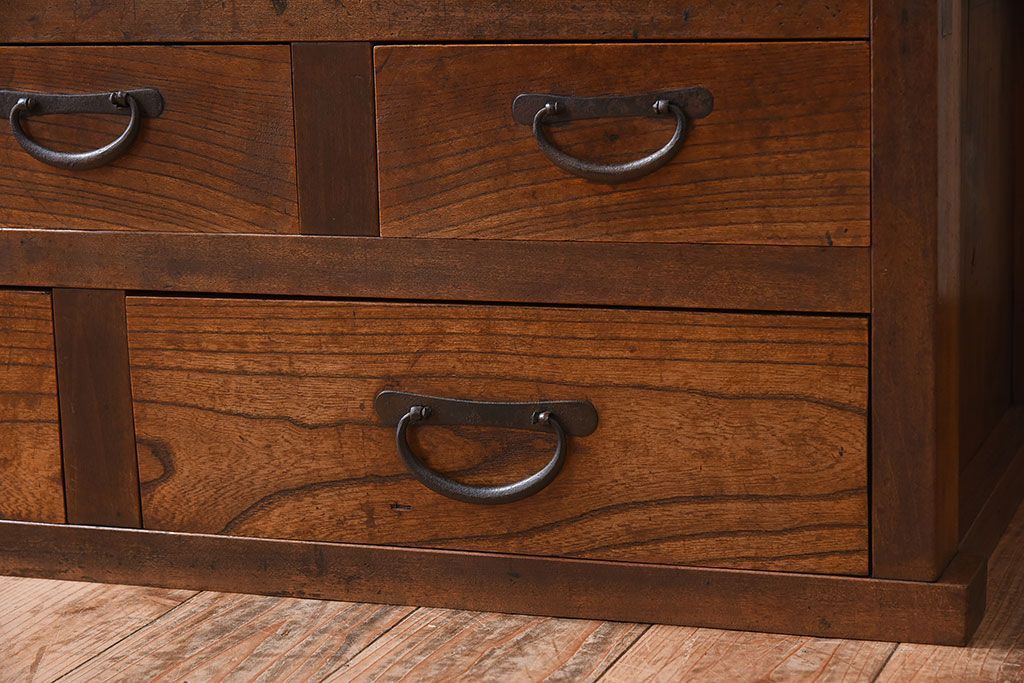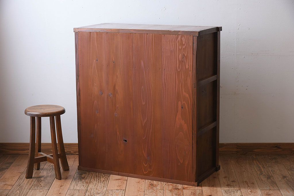 アンティーク家具 組子入り引き戸がおしゃれな和製アンティークの茶箪笥(収納棚)