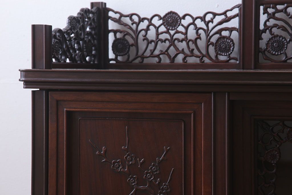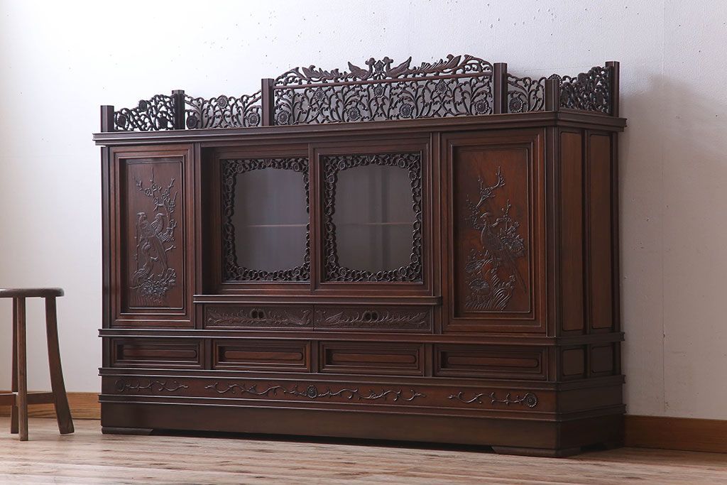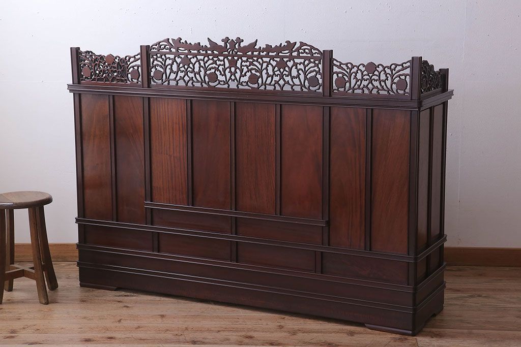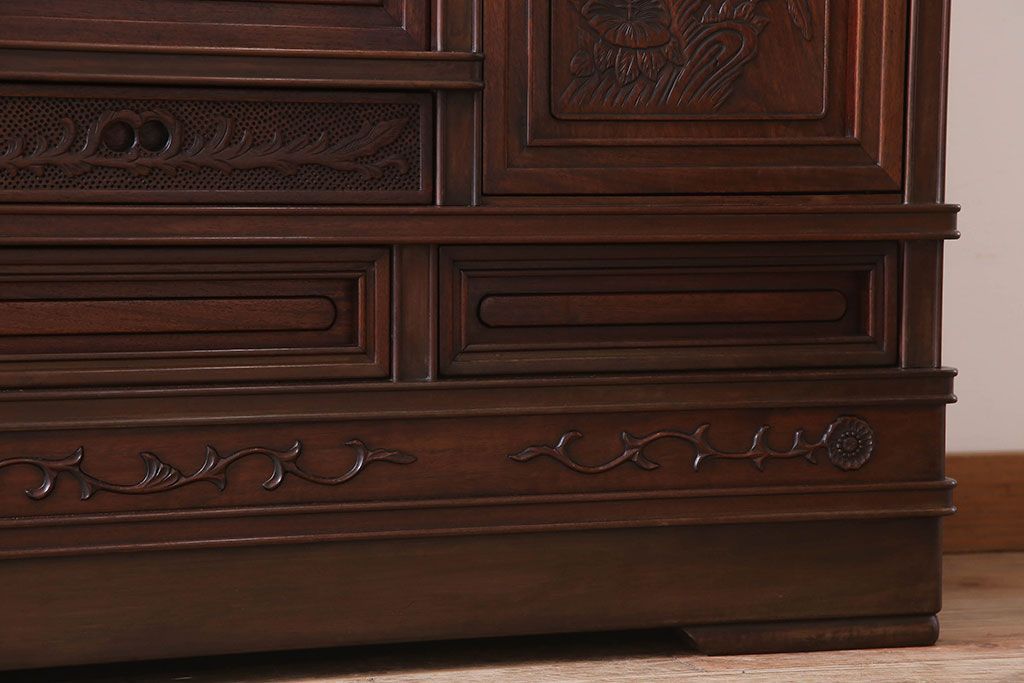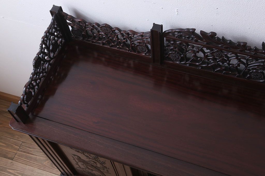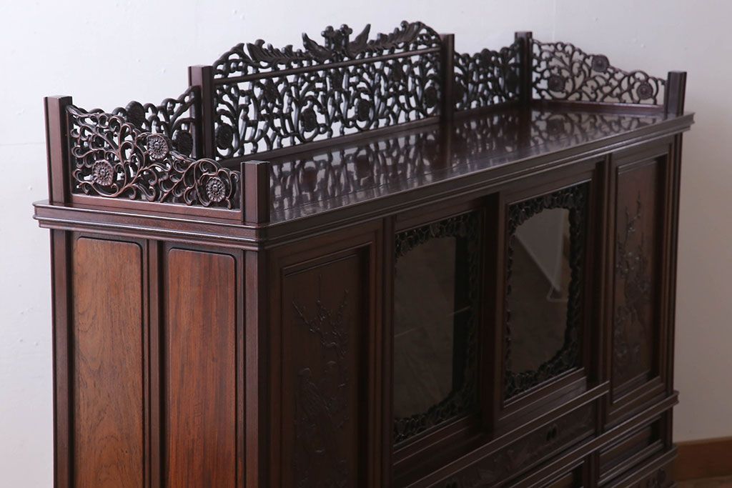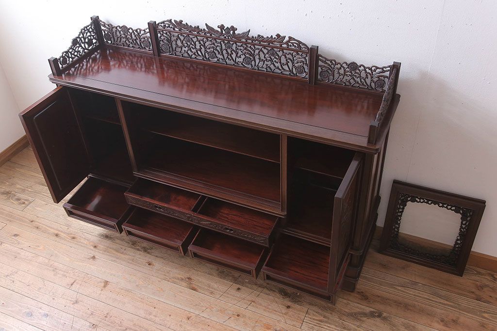 中古 民芸家具 唐木製 高級品!彫刻が素晴らしいサイドボード(キャビネット)(定価約220万円)