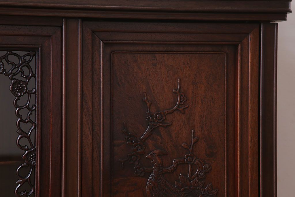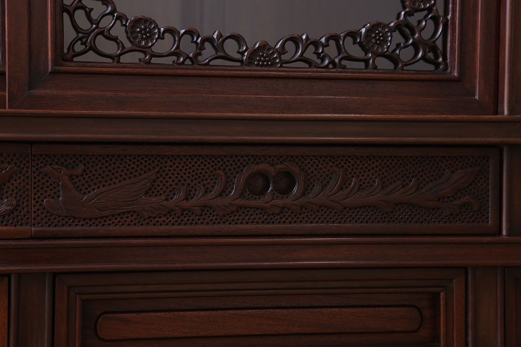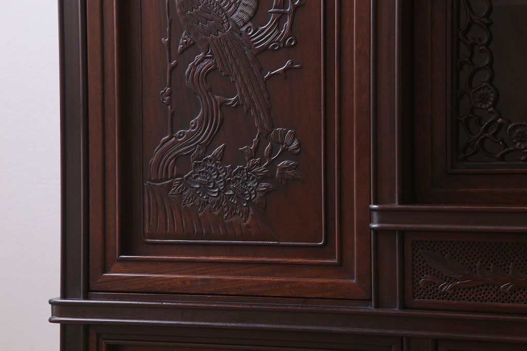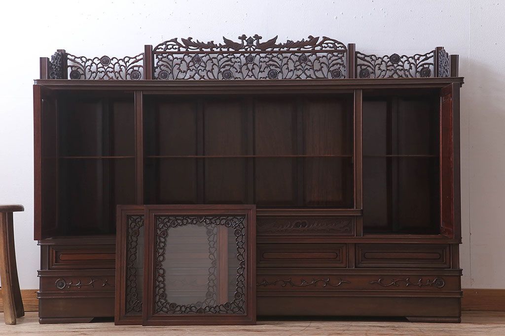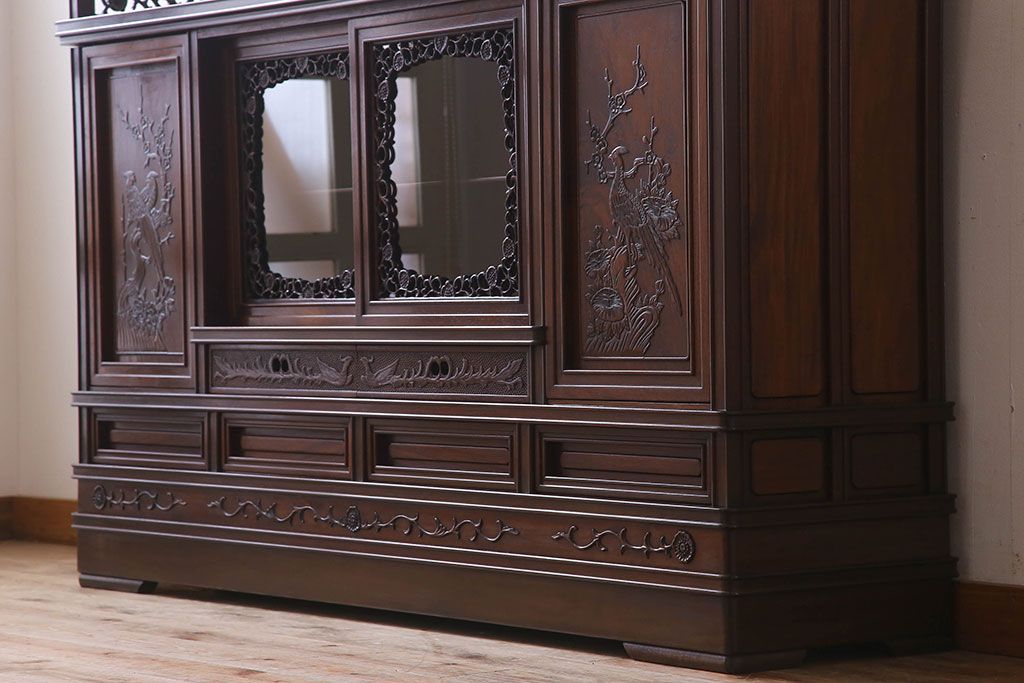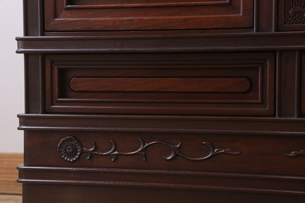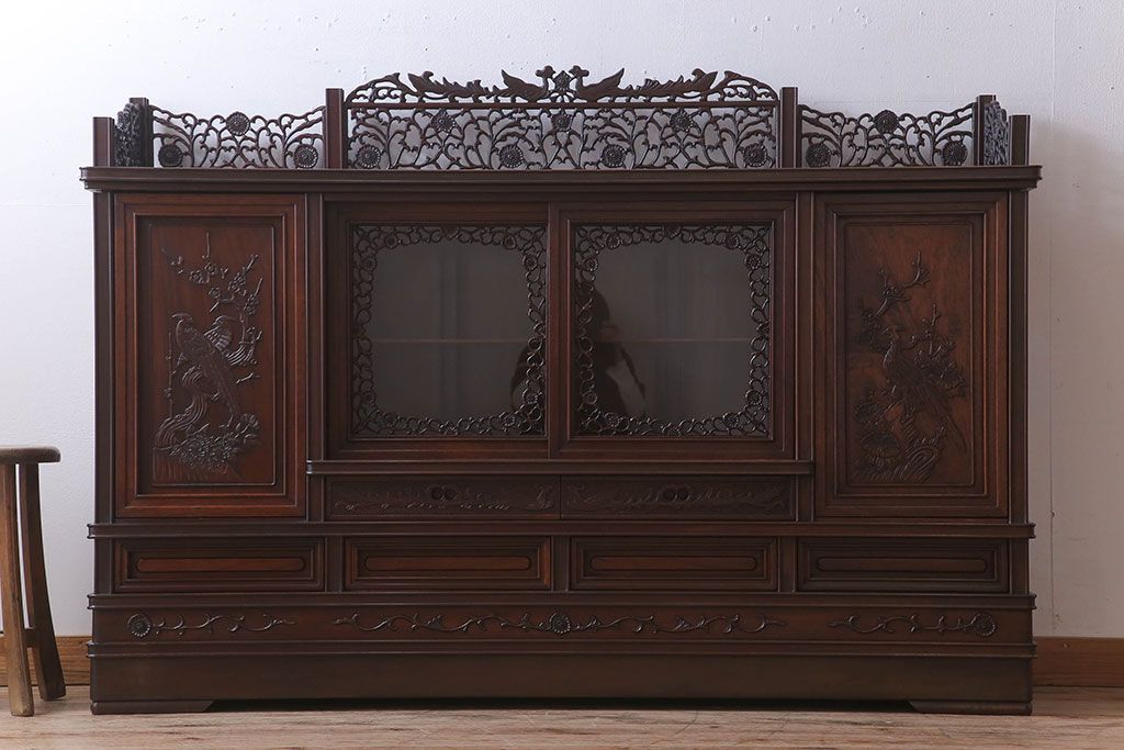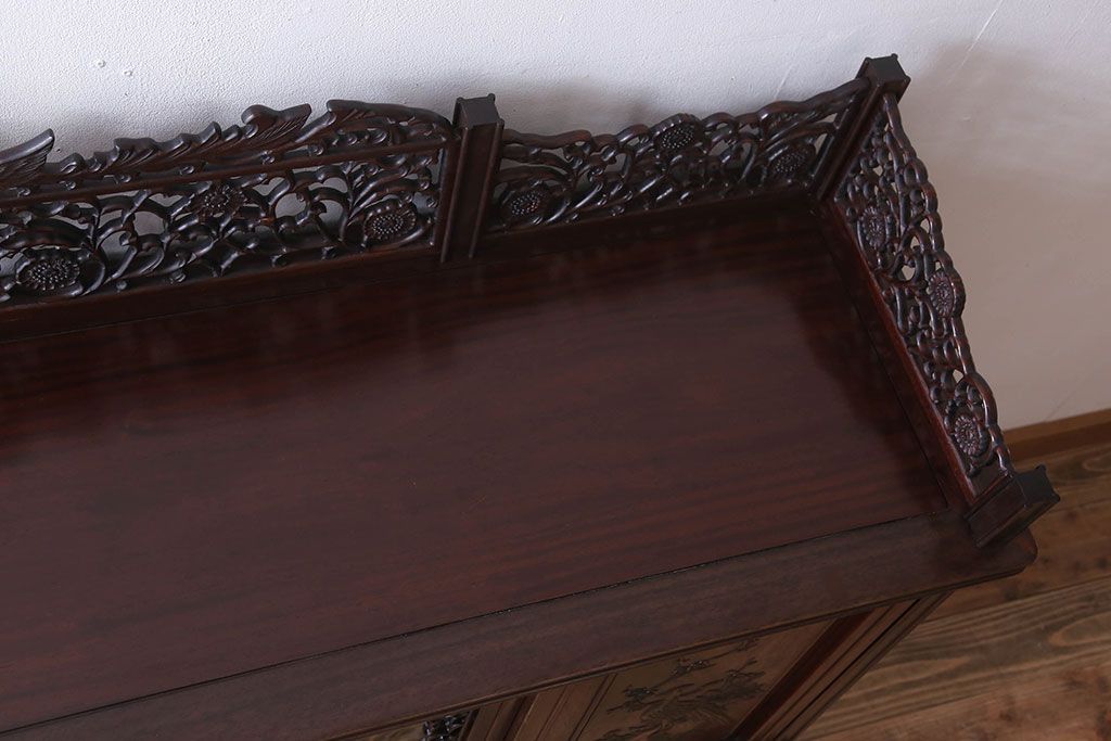 中古 民芸家具 唐木製 高級品!彫刻が素晴らしいサイドボード(キャビネット)(定価約220万円)