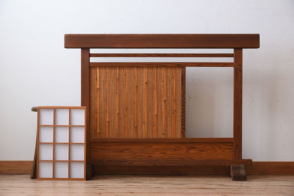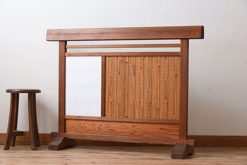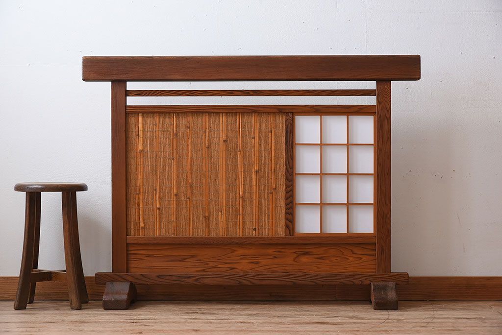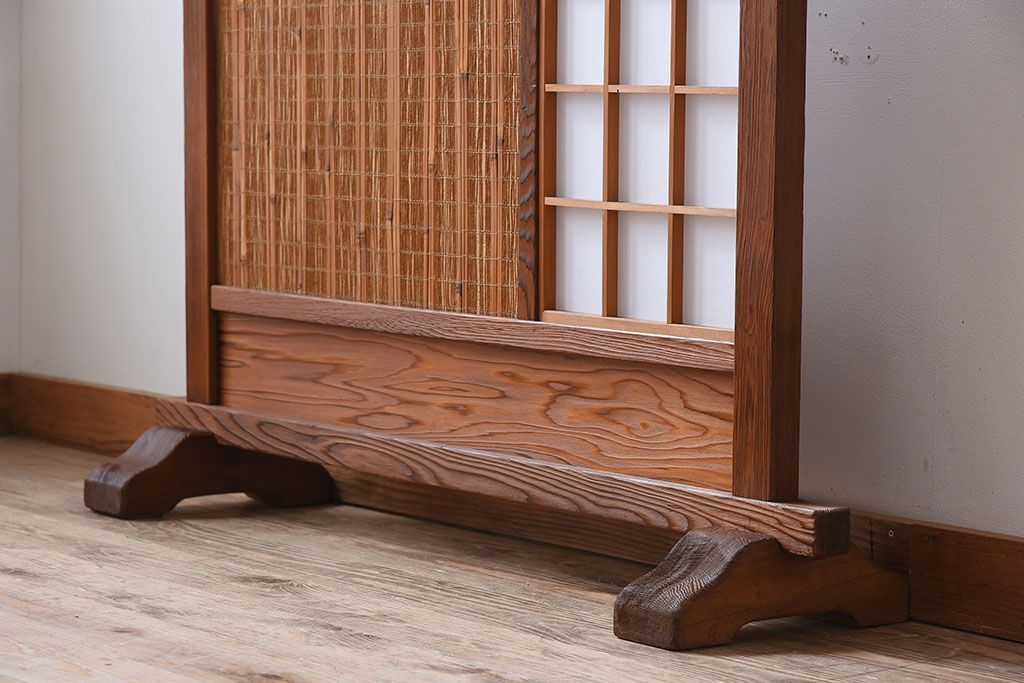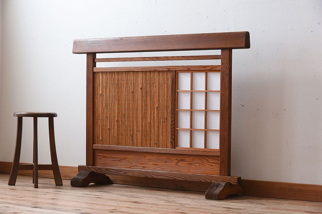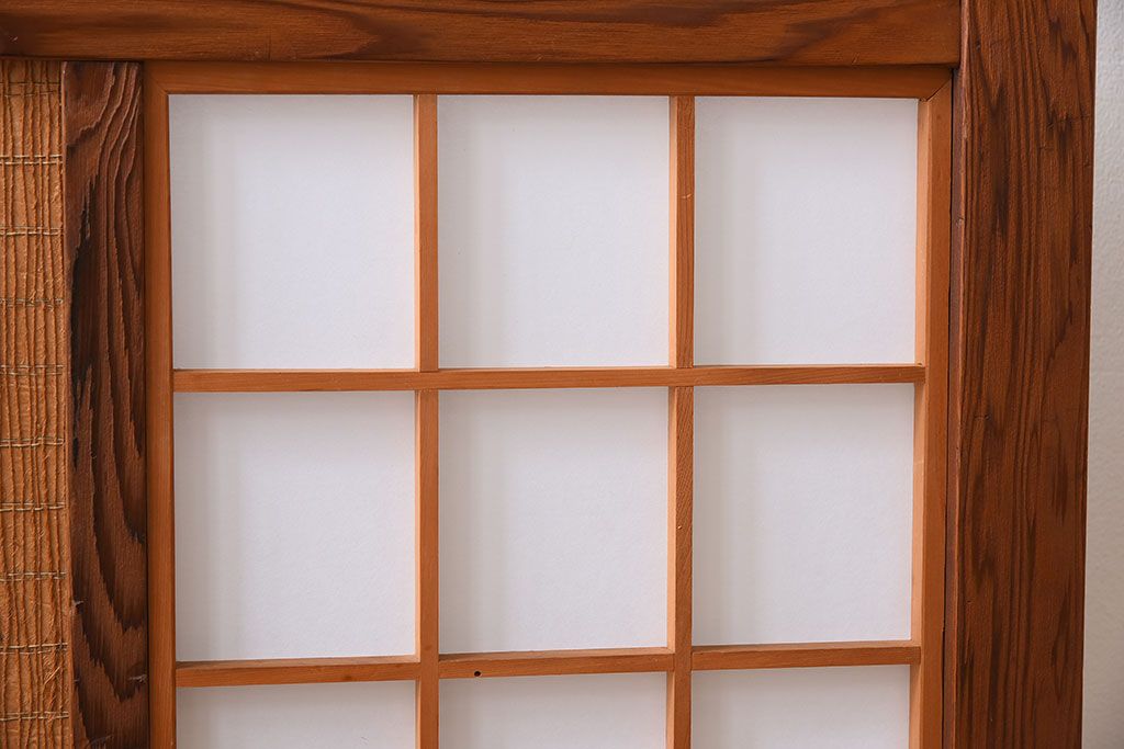 高級杉材製!和製アンティークの障子入り衝立(パーテーション)