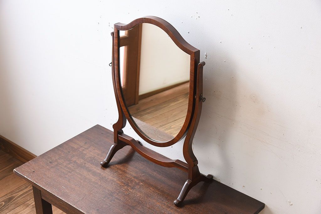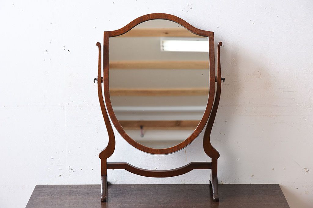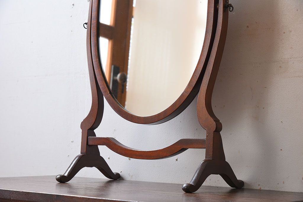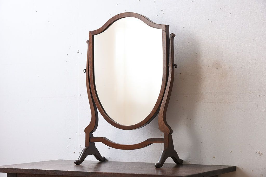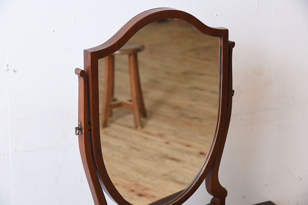 アンティーク雑貨 イギリスアンティーク ウォールナット材のスタンドミラー(鏡)