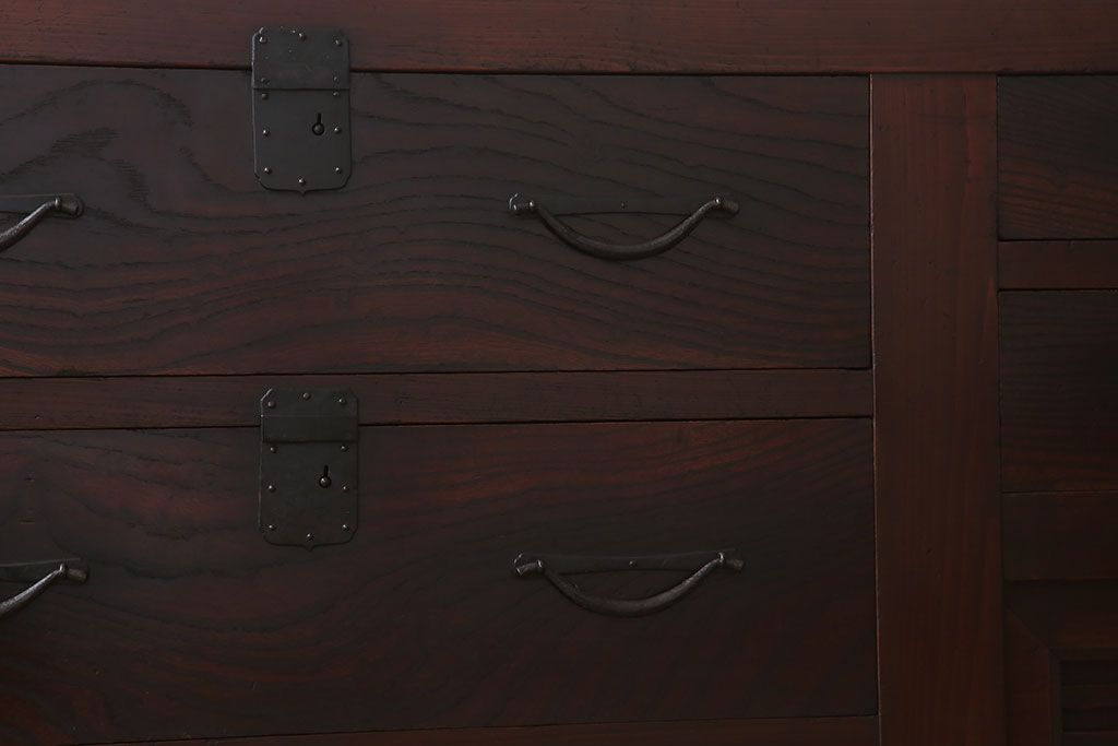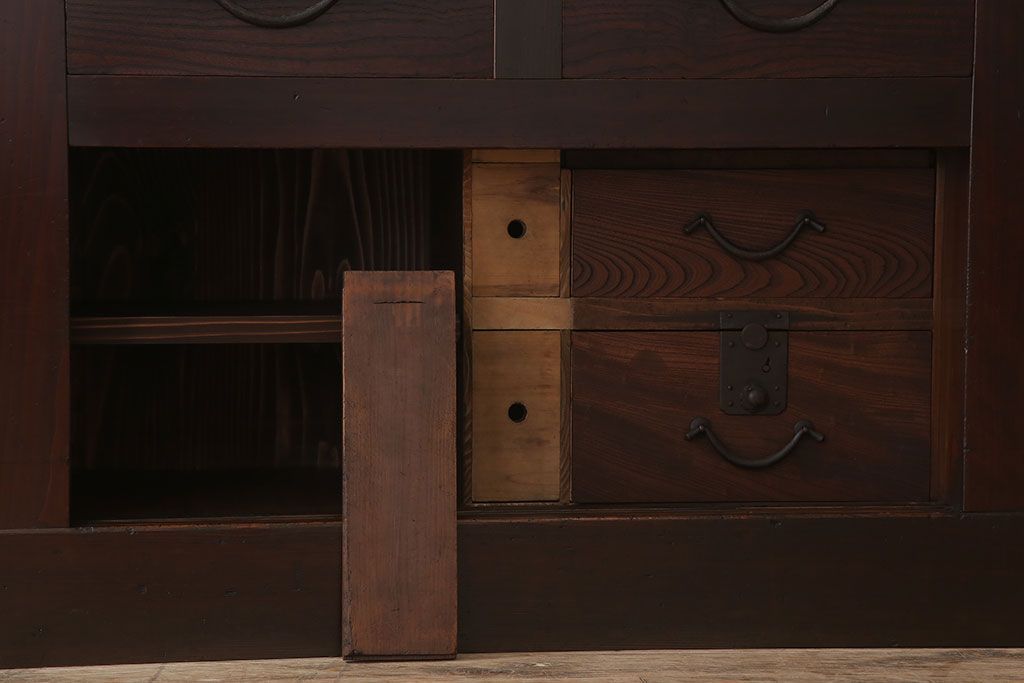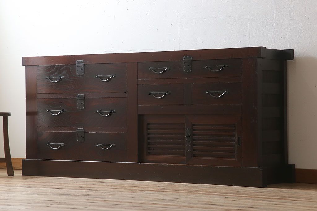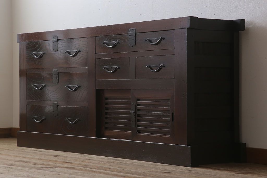 アンティーク家具 六尺 古民具・骨董 漆が美しい明治期の収納箪笥サイドボード(水屋箪笥)