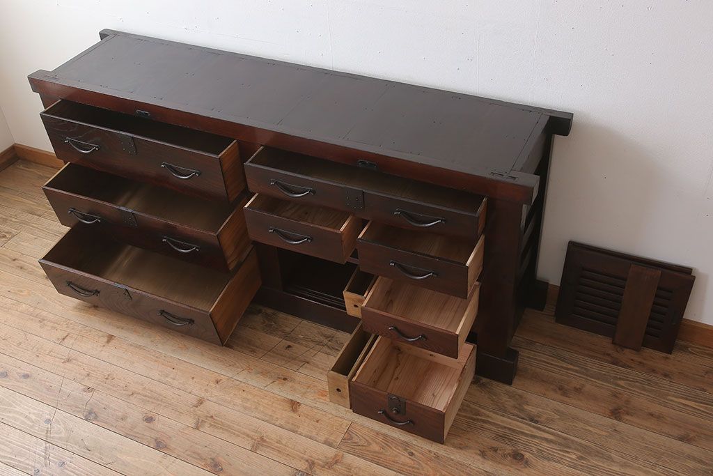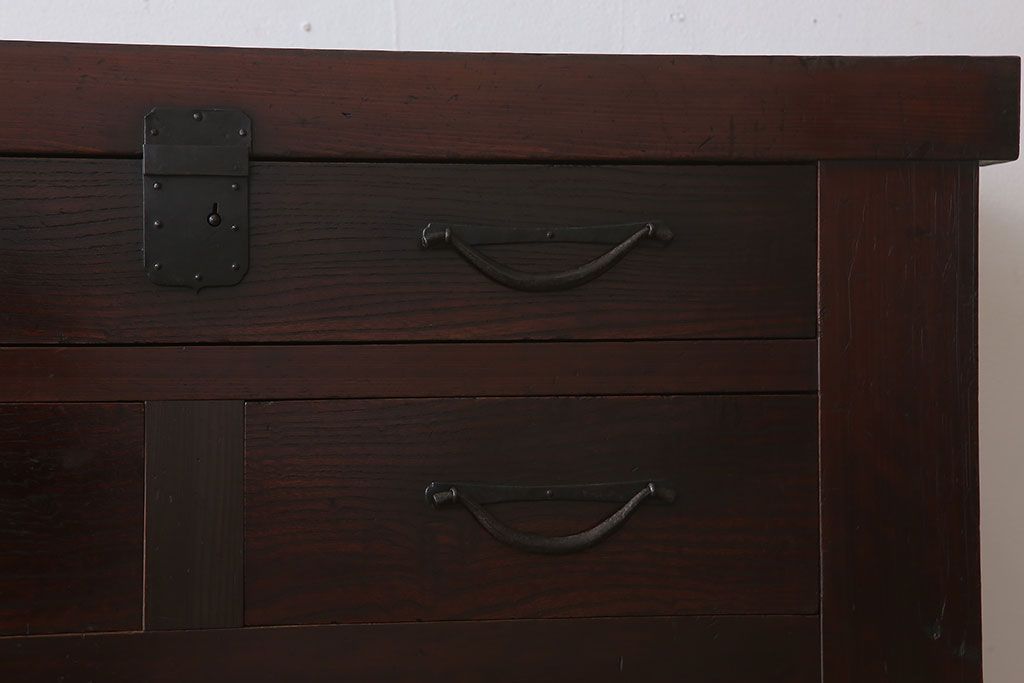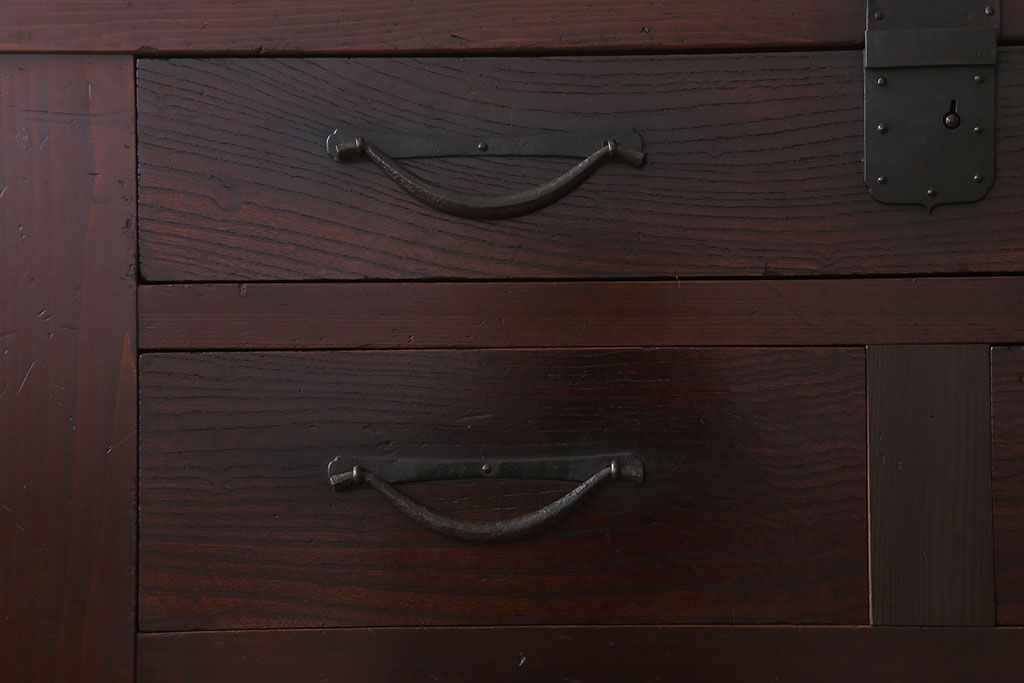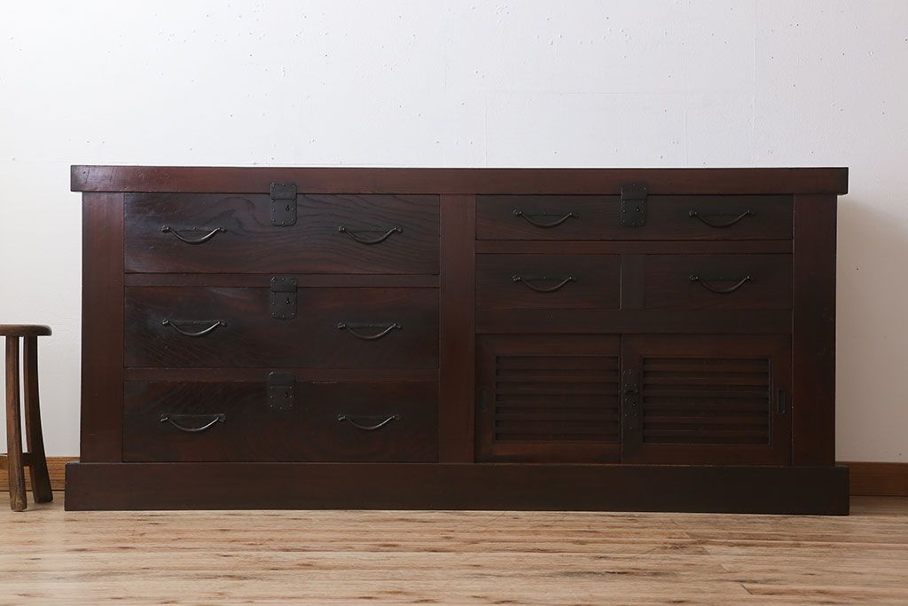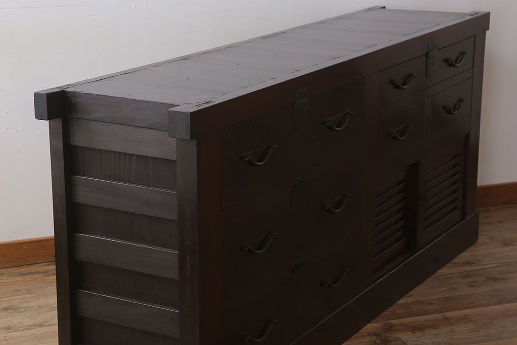 アンティーク家具 六尺 古民具・骨董 漆が美しい明治期の収納箪笥サイドボード(水屋箪笥)