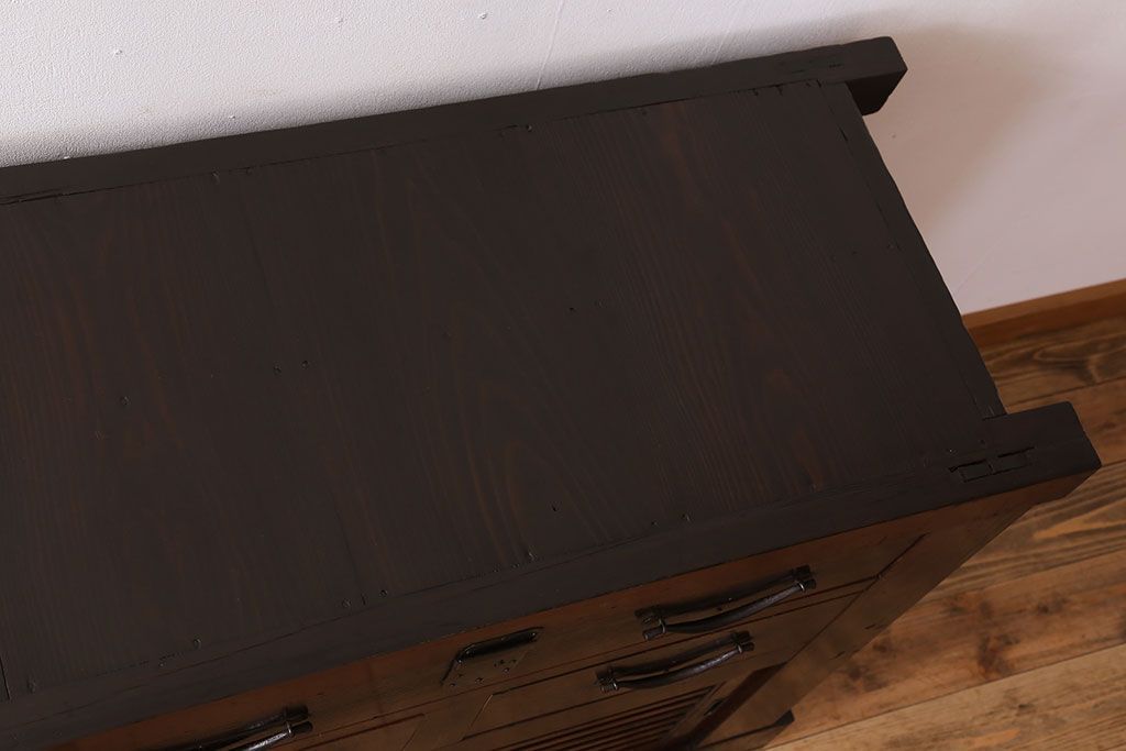 六尺 古民具・骨董 漆が美しい明治期の収納箪笥サイドボード(水屋箪笥)です。