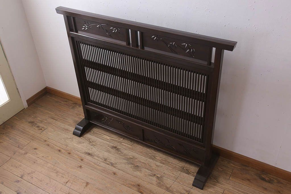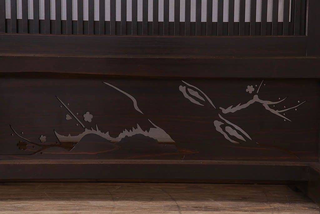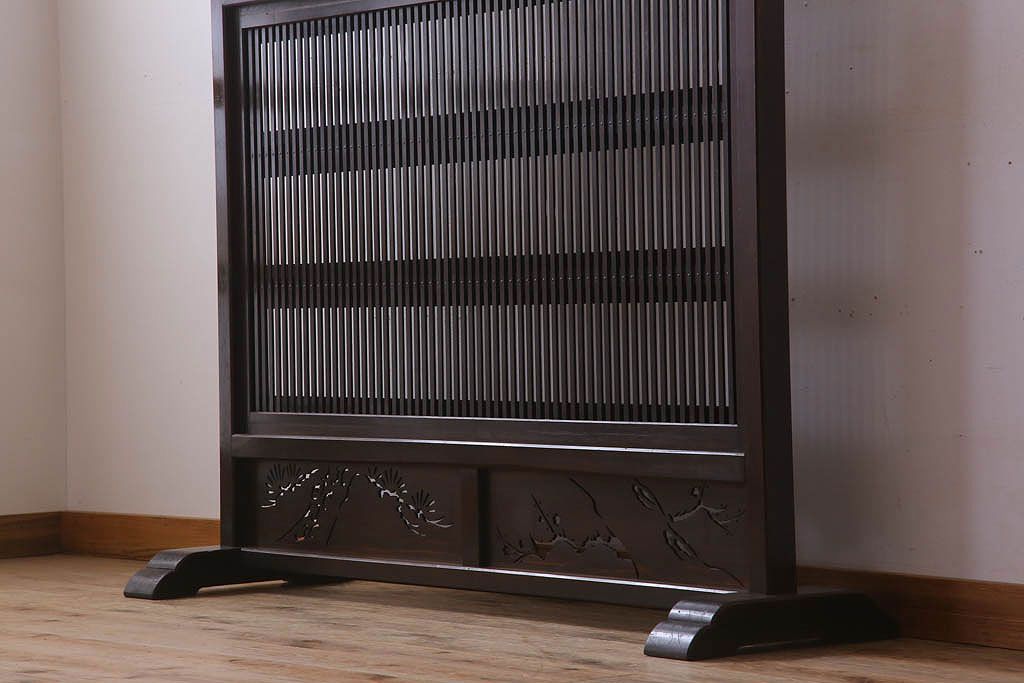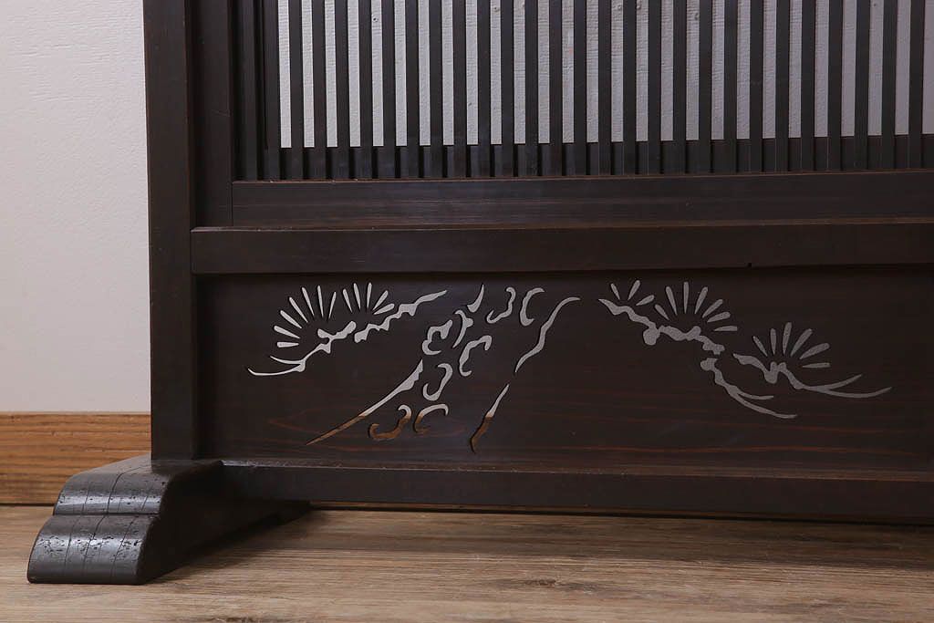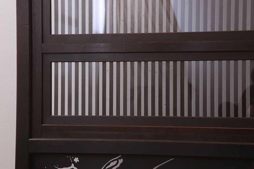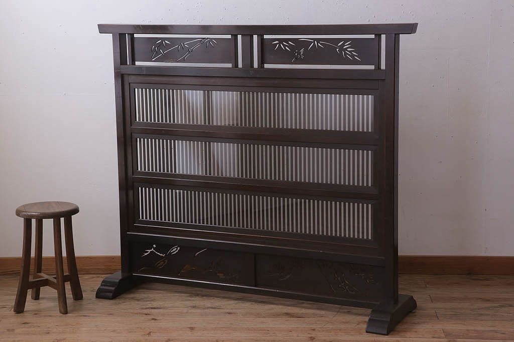 透かし彫り入り!和製アンティークの裏ガラス入り衝立(パーテーション)