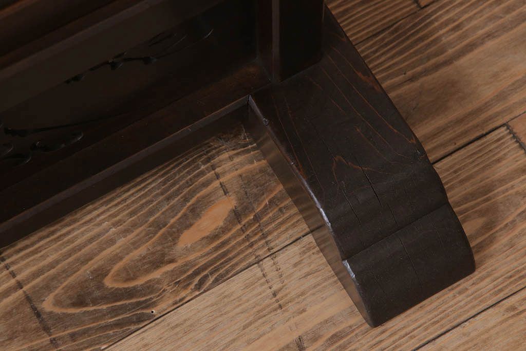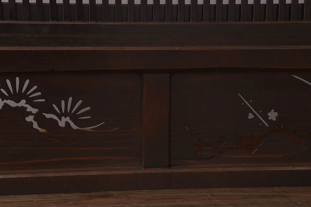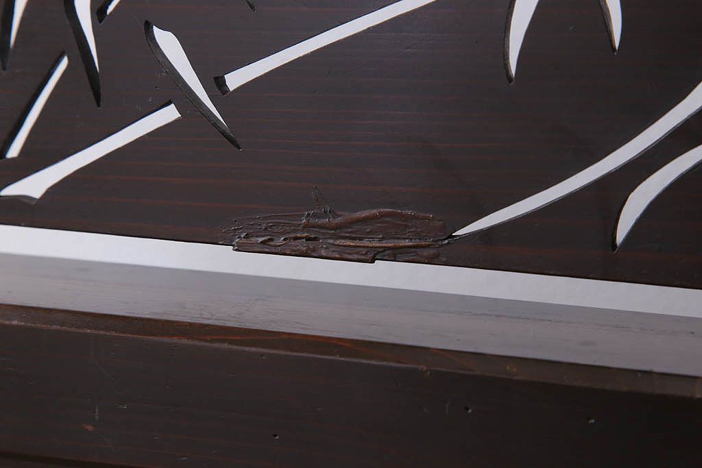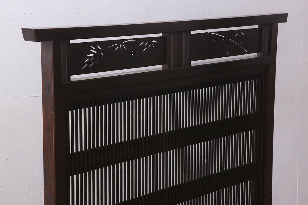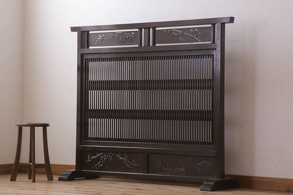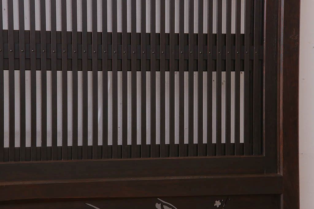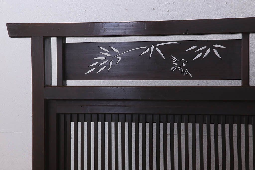 透かし彫り入り!和製アンティークの裏ガラス入り衝立(パーテーション)