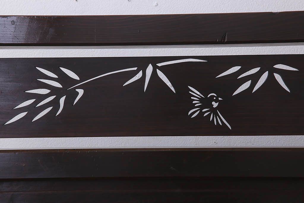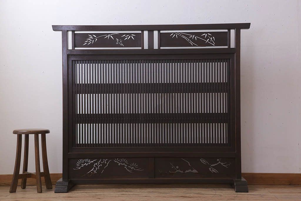 透かし彫り入り!和製アンティークの裏ガラス入り衝立(パーテーション)です。