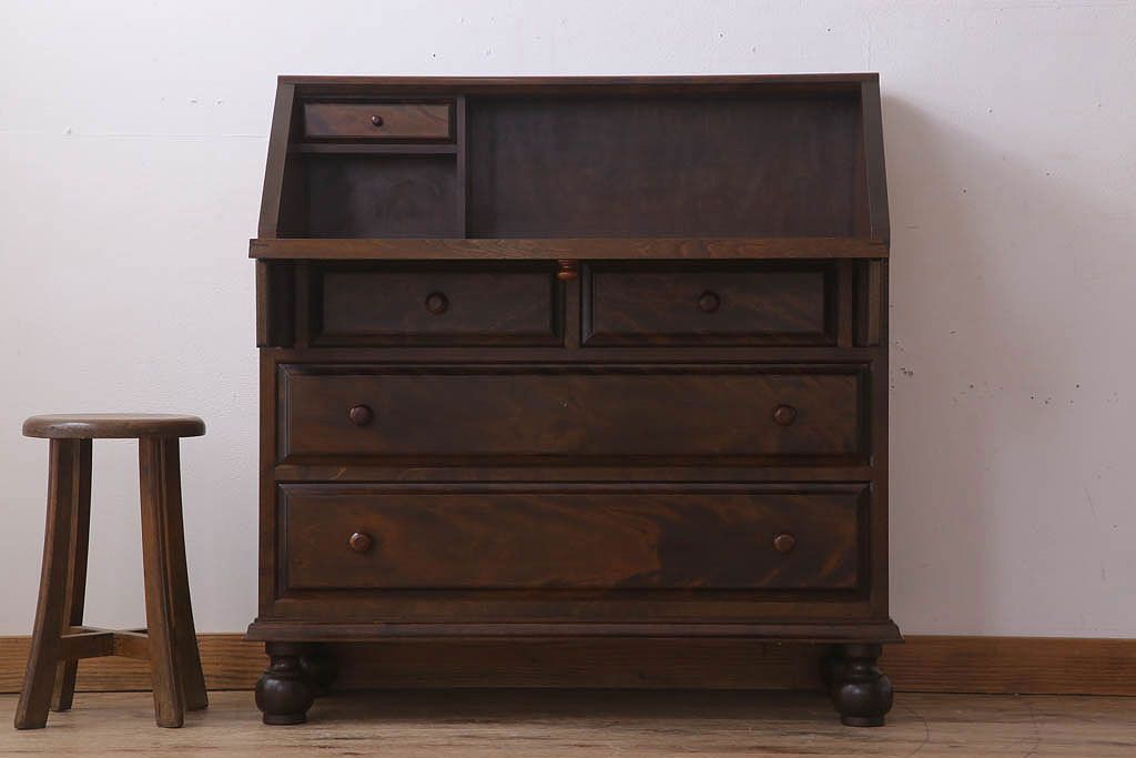 中古美品 松本民芸家具 H型ボールフットビューロー(定価約31万円)