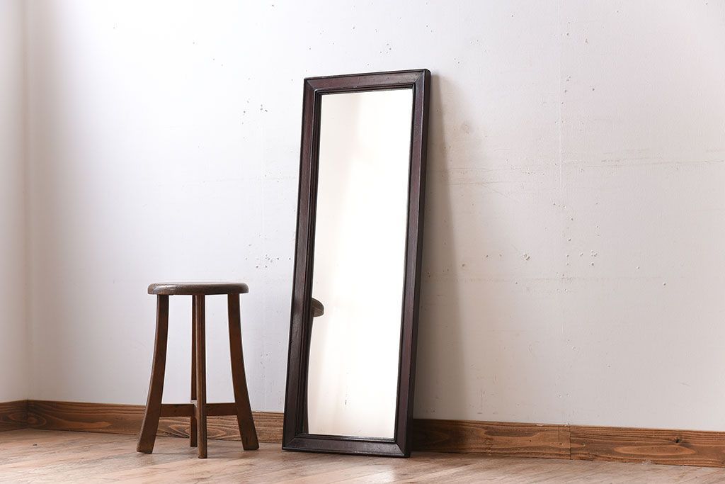 鏡> 姿見 > アンティーク雑貨 檜材製 古い木のレトロなアンティーク姿見(ミラー・鏡)